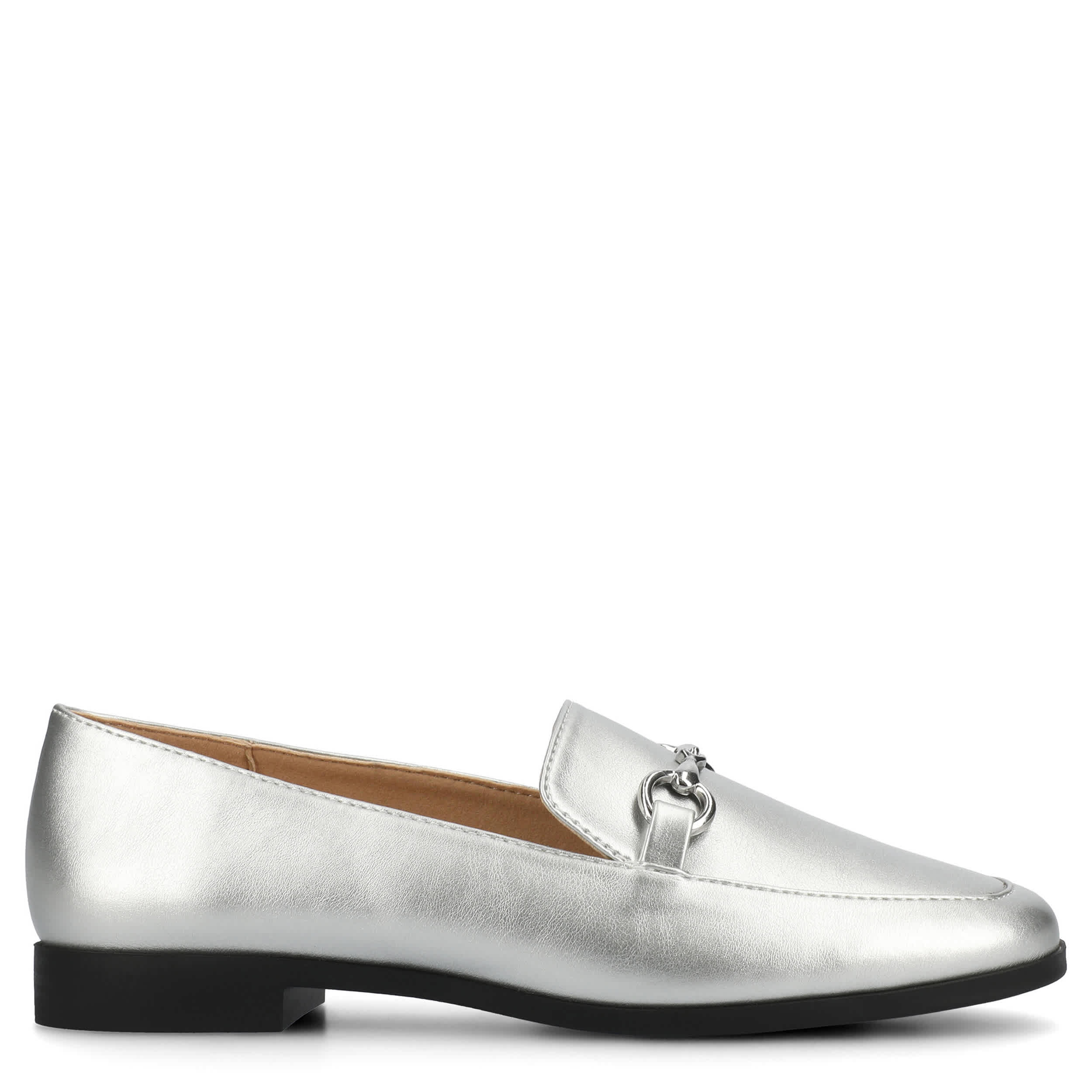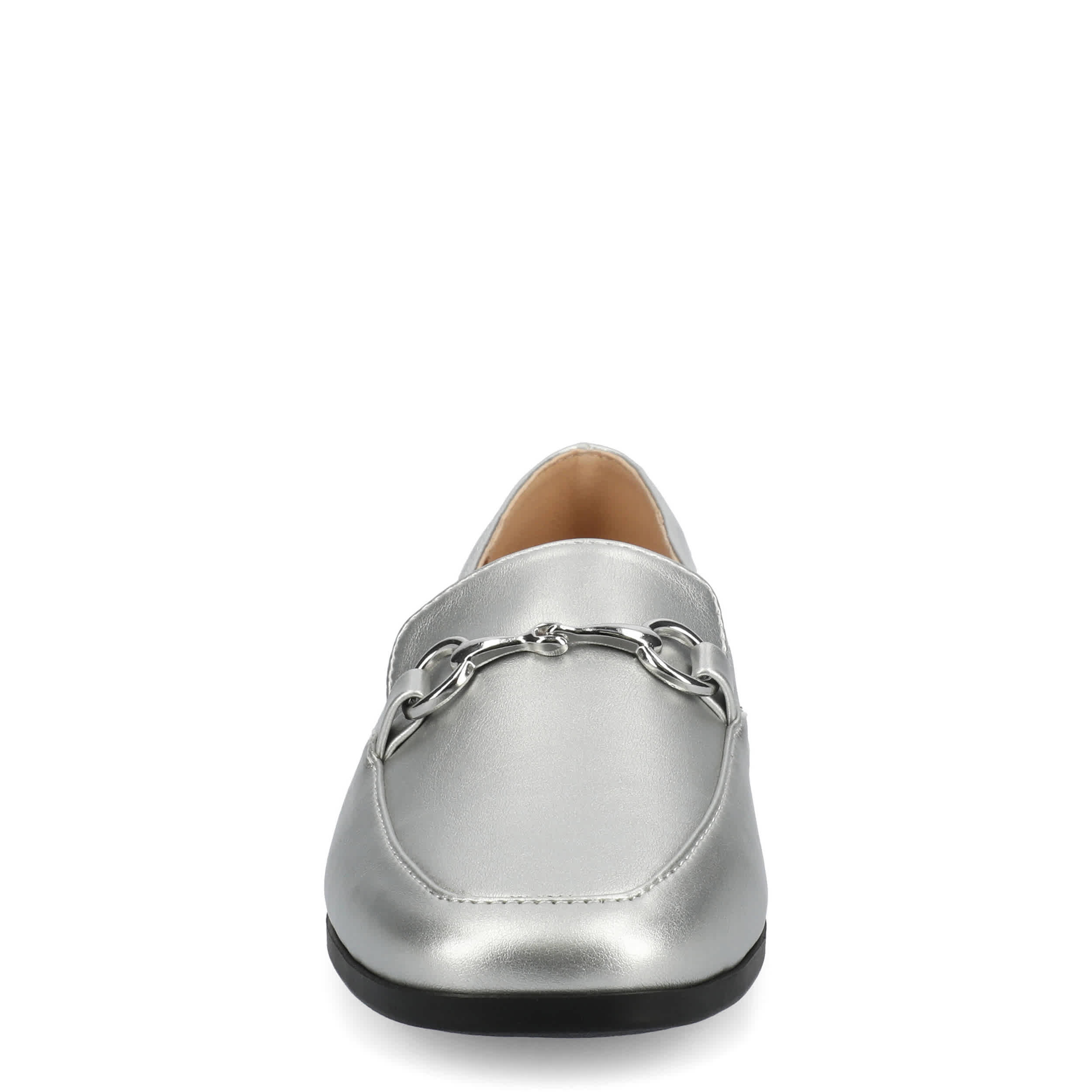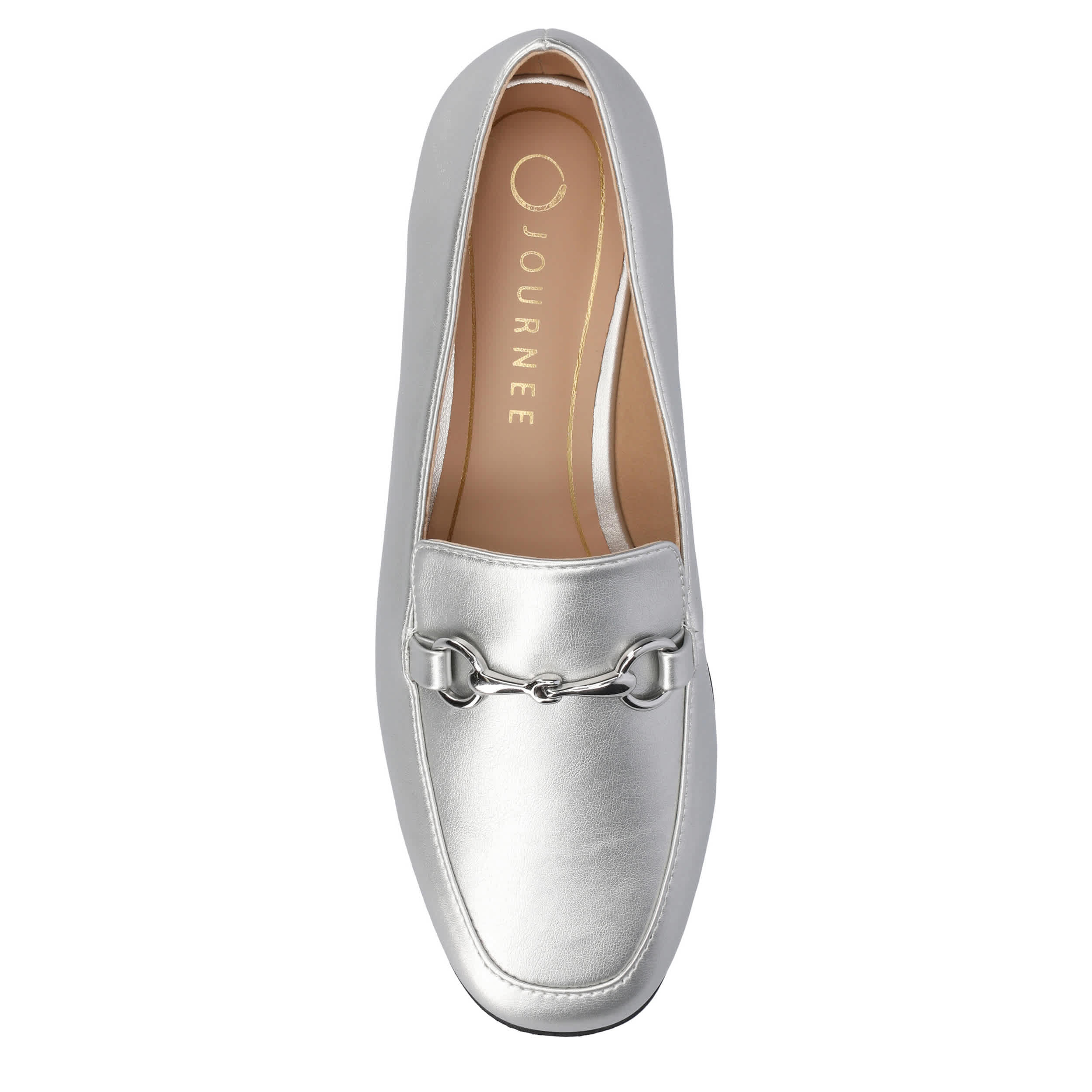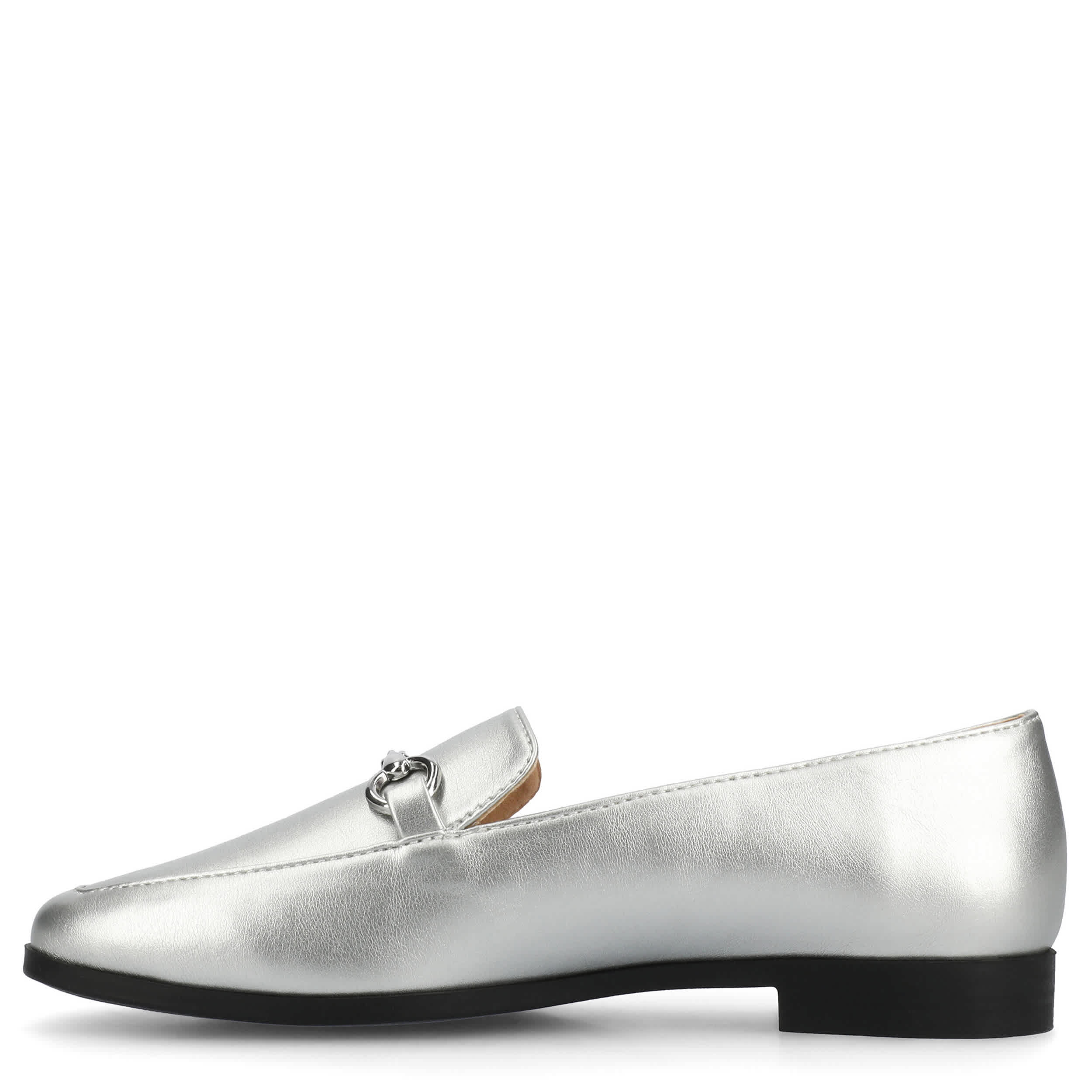 Chic style that effortlessly lets you handle your business, the Lacie loafer from Journee Collection. With a metallic faux leather upper complemented by a metal horsebit for a sleek look, this slip-on is versatile. The footbed and synthetic outsole ensure supported steps for all-day wear.