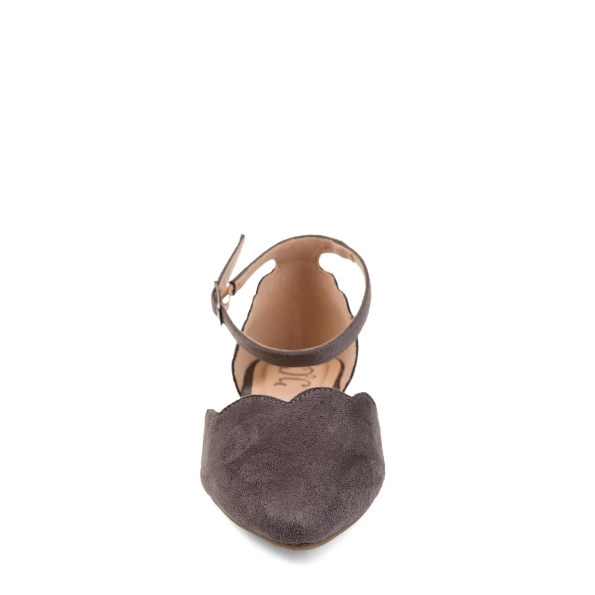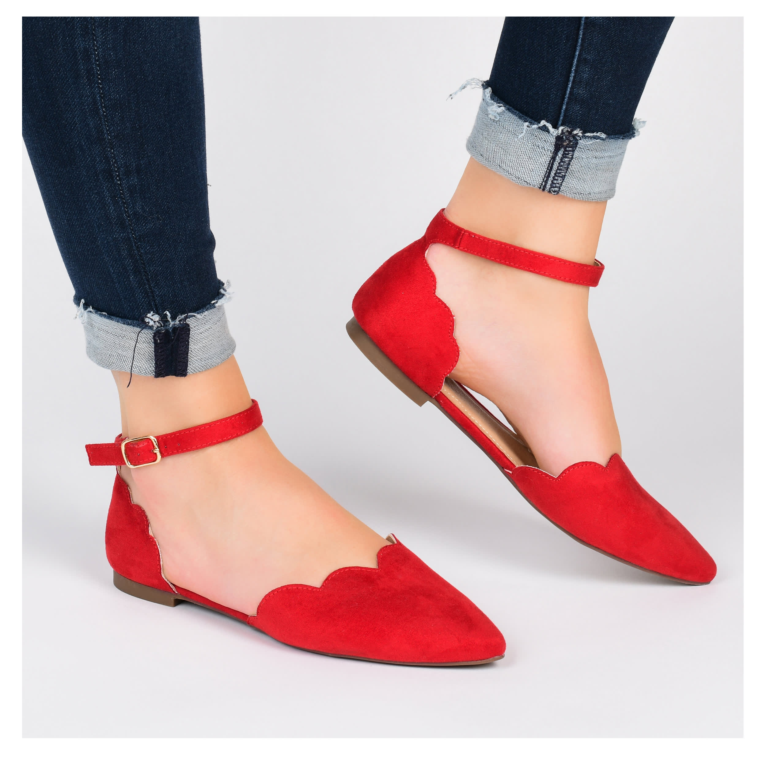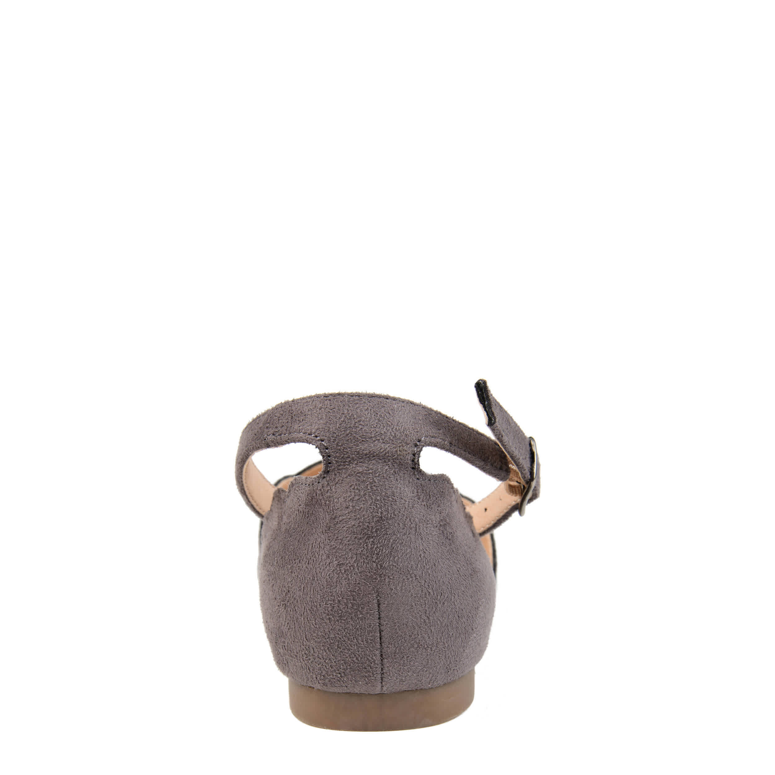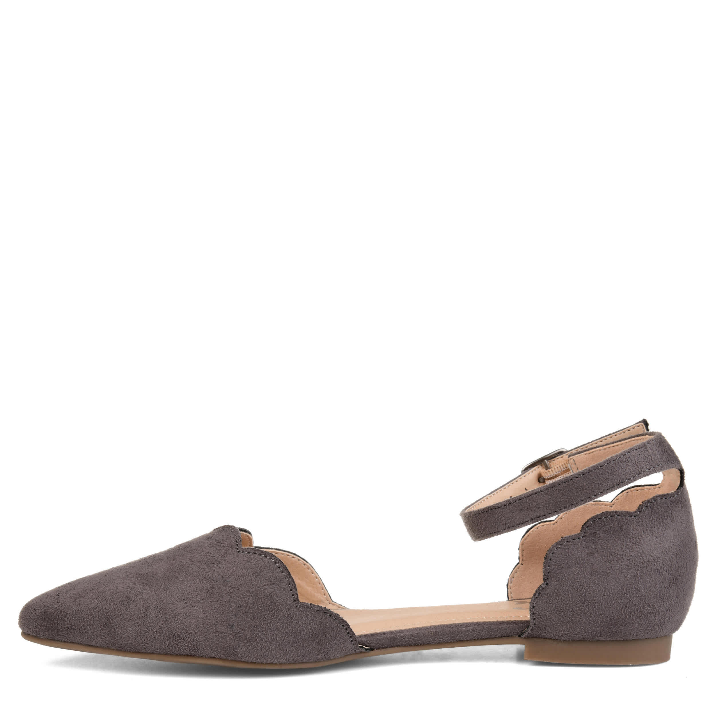 Vintage elegance gets updated in the Lana women's flat from the Journee Collection. With a microsuede upper and d'Orsay design for extra style, these buckle ankle strap flats also have a pointed toe and scalloped trim for a feminine touch. The padded footbed cushions your steps while the½" block offers subtle lift.