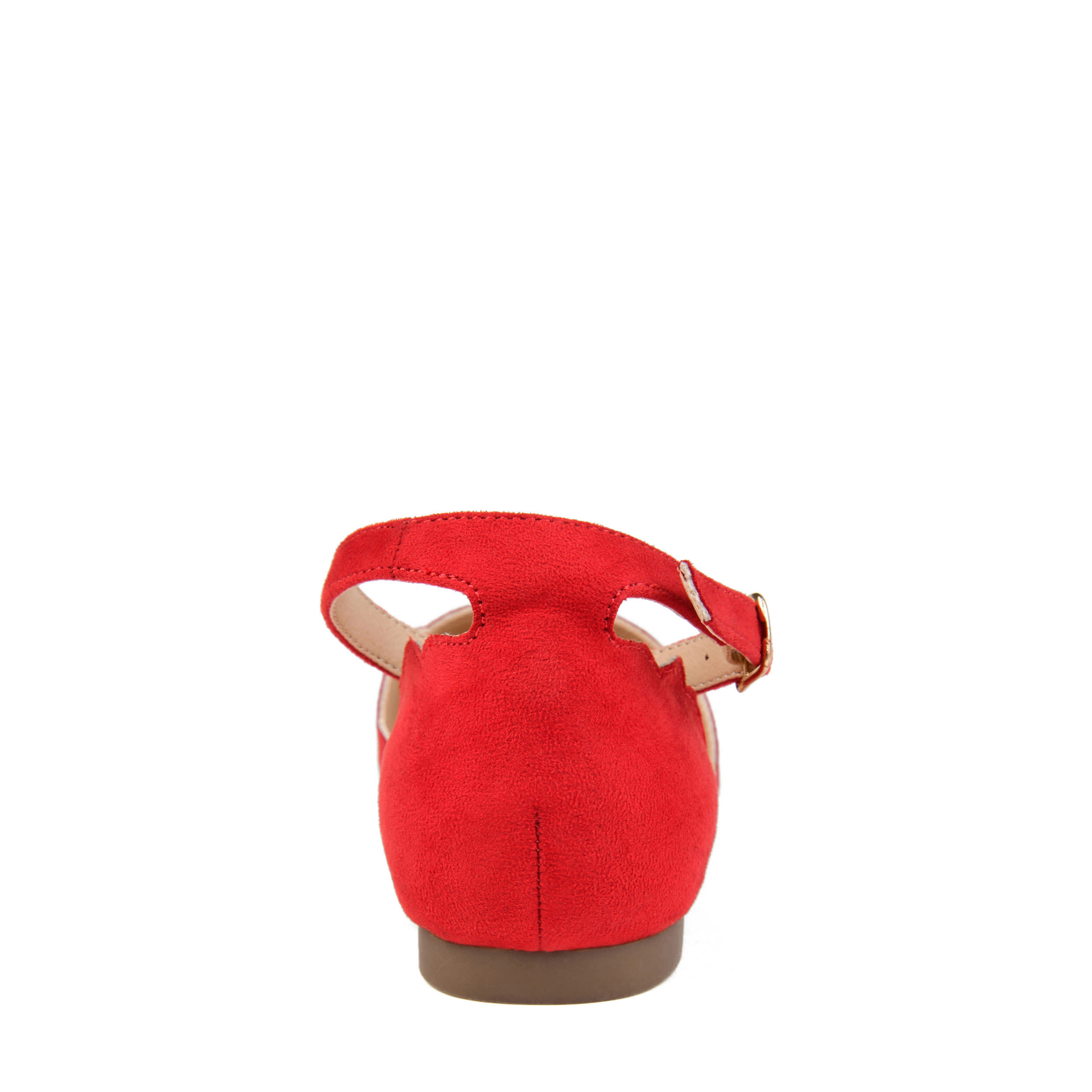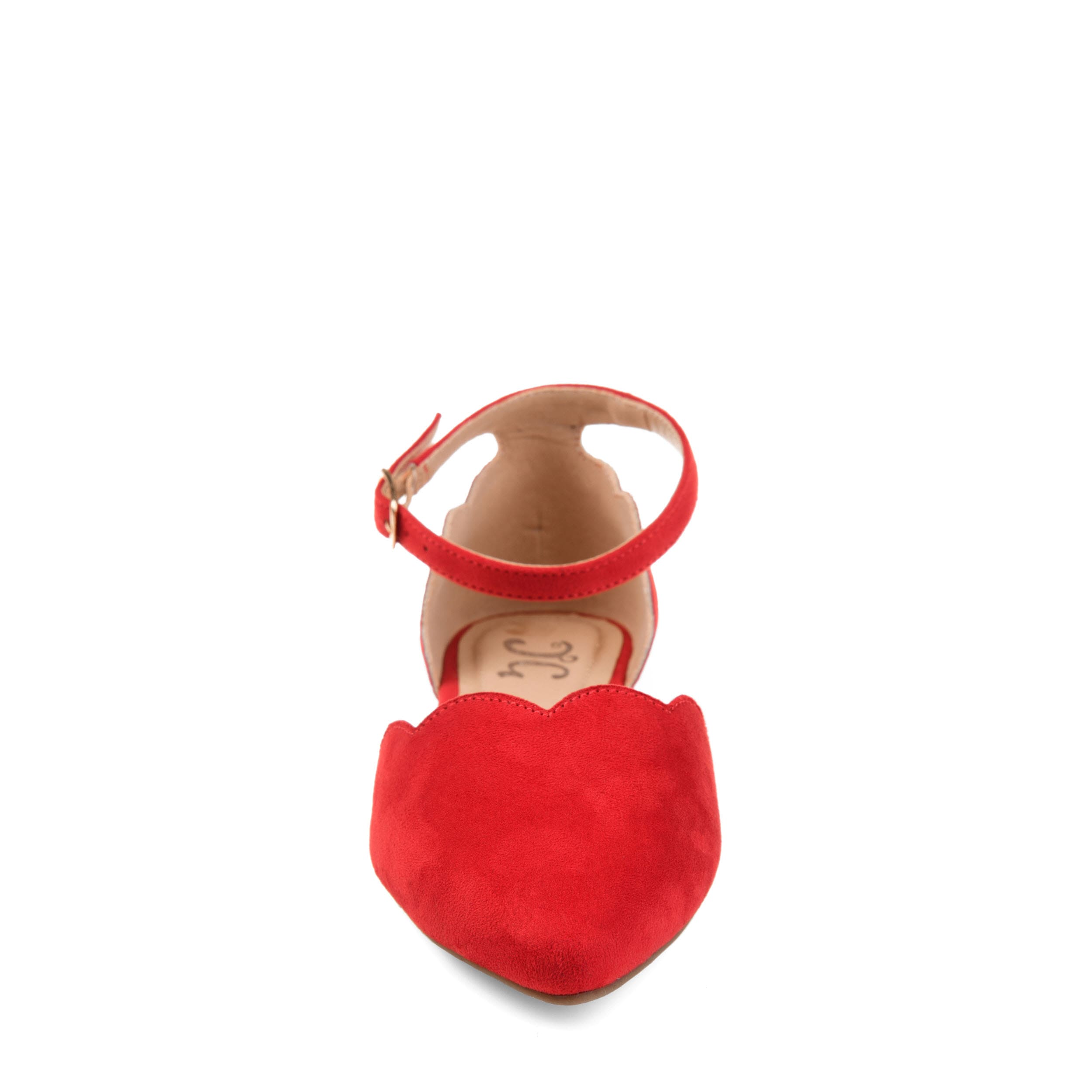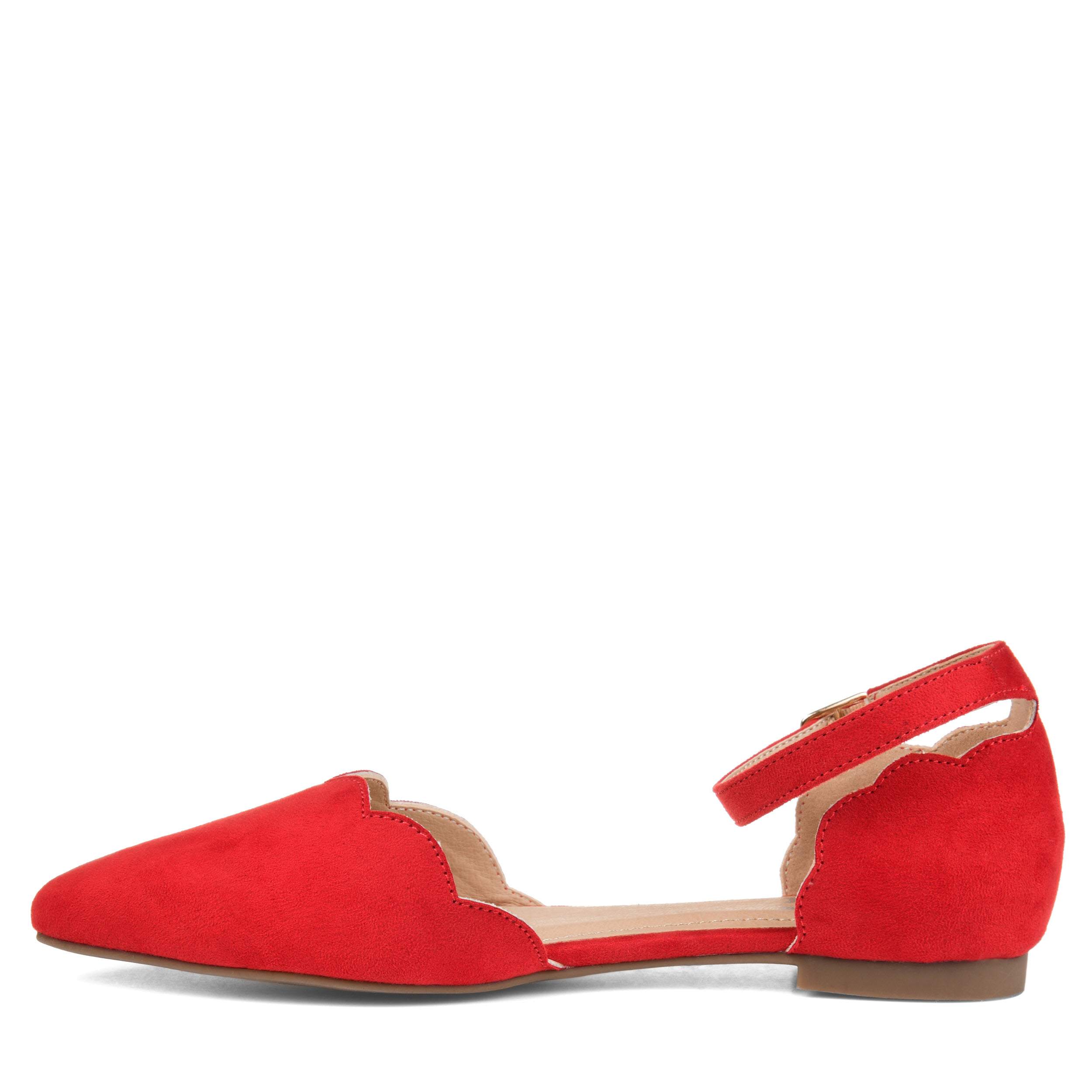 Vintage elegance gets updated in the Lana women's flat from the Journee Collection. With a microsuede upper and d'Orsay design for extra style, these buckle ankle strap flats also have a pointed toe and scalloped trim for a feminine touch. The padded footbed cushions your steps while the½" block offers subtle lift.