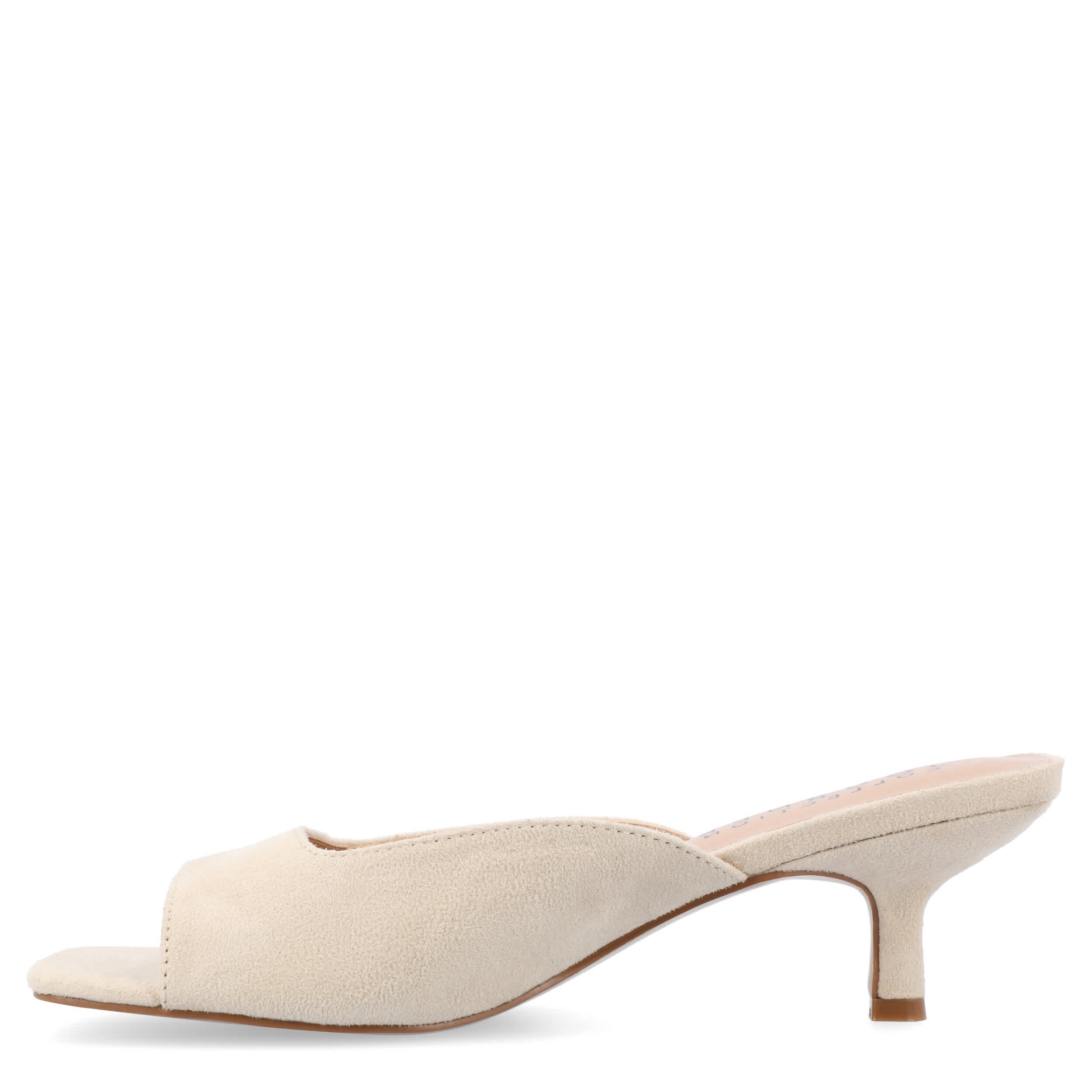Charm your way through the evening in the Larna Wide women's pump from Journee Collection. With a faux suede upper featuring a flattering open toe, this retro-styled shoe would fit right in at cocktail hour. The footbed cushions your foot, while the kitten heel offers just enough lift.