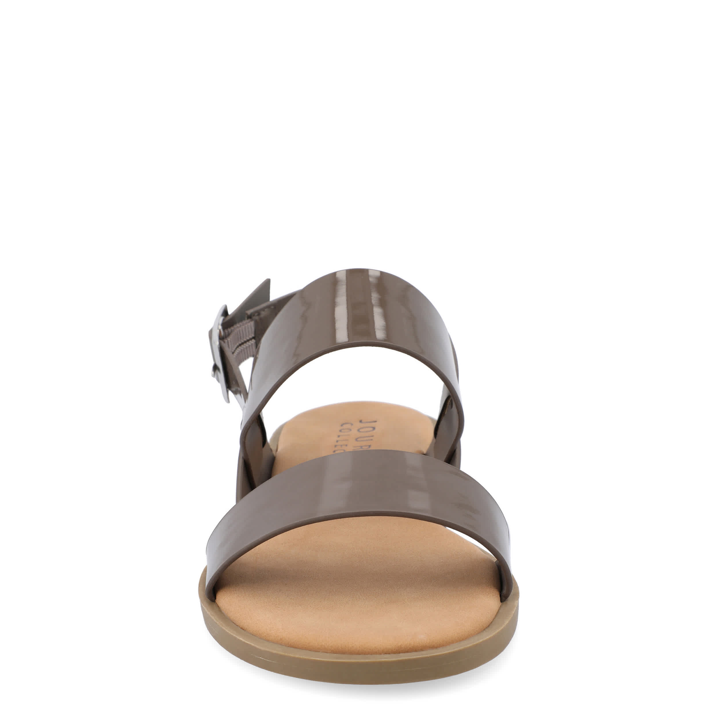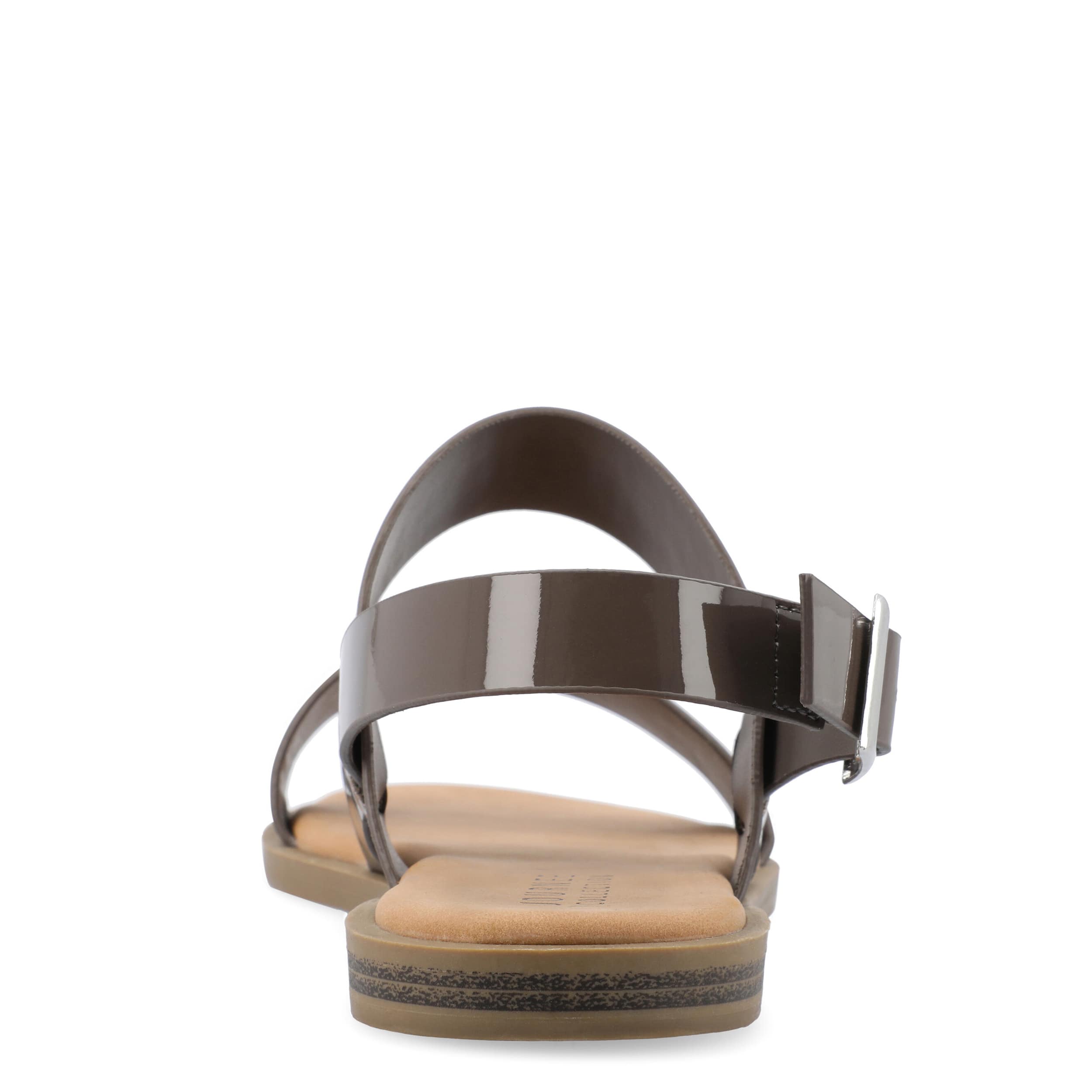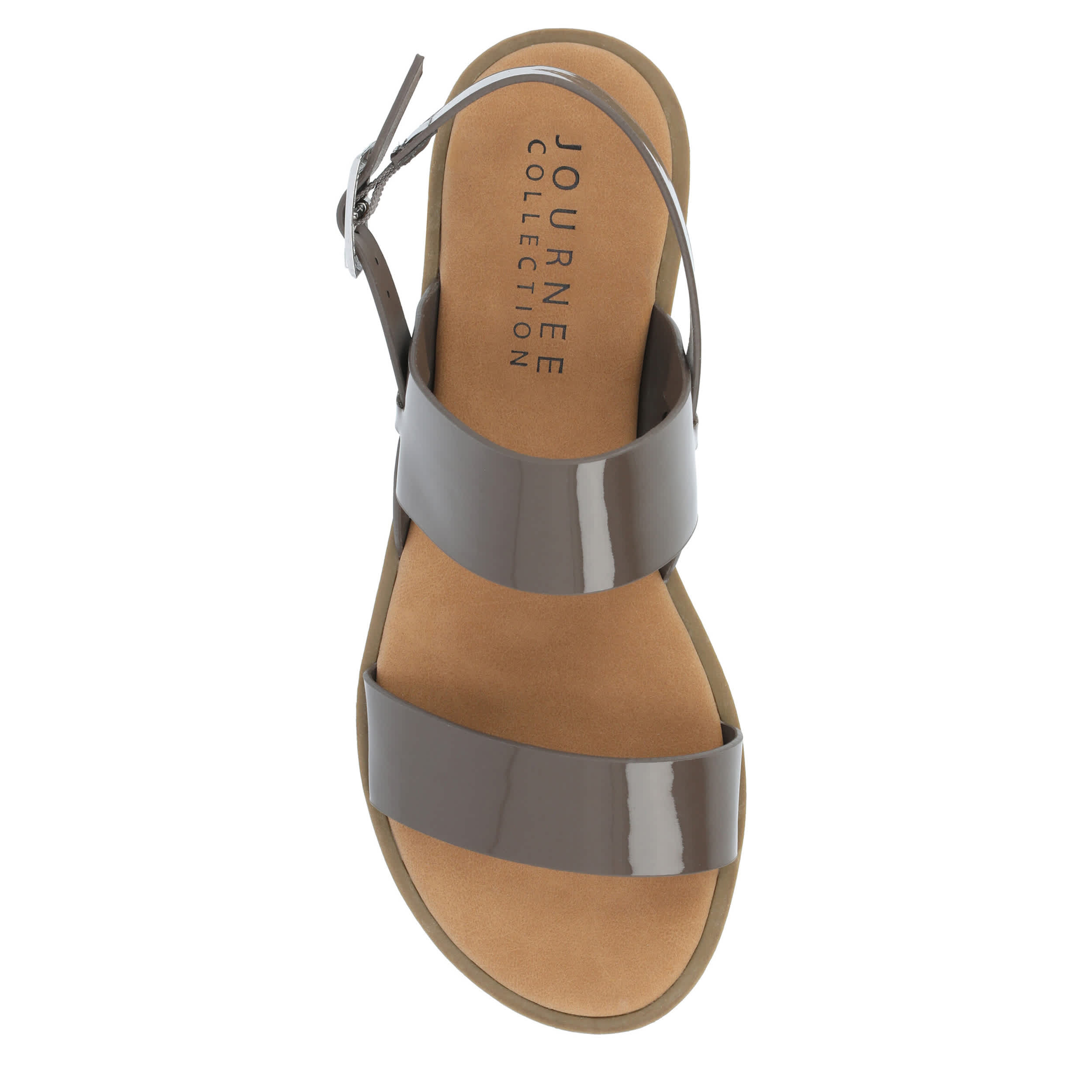 Achieve the minimalist aesthetic this summer in the Journee Collection Lavine sandal. With a patent leather upper featuring thick straps for support, these slingback sandals are laid-back and fit your casual vibe. The footbed cushions every step while the sole adds some flexibility.