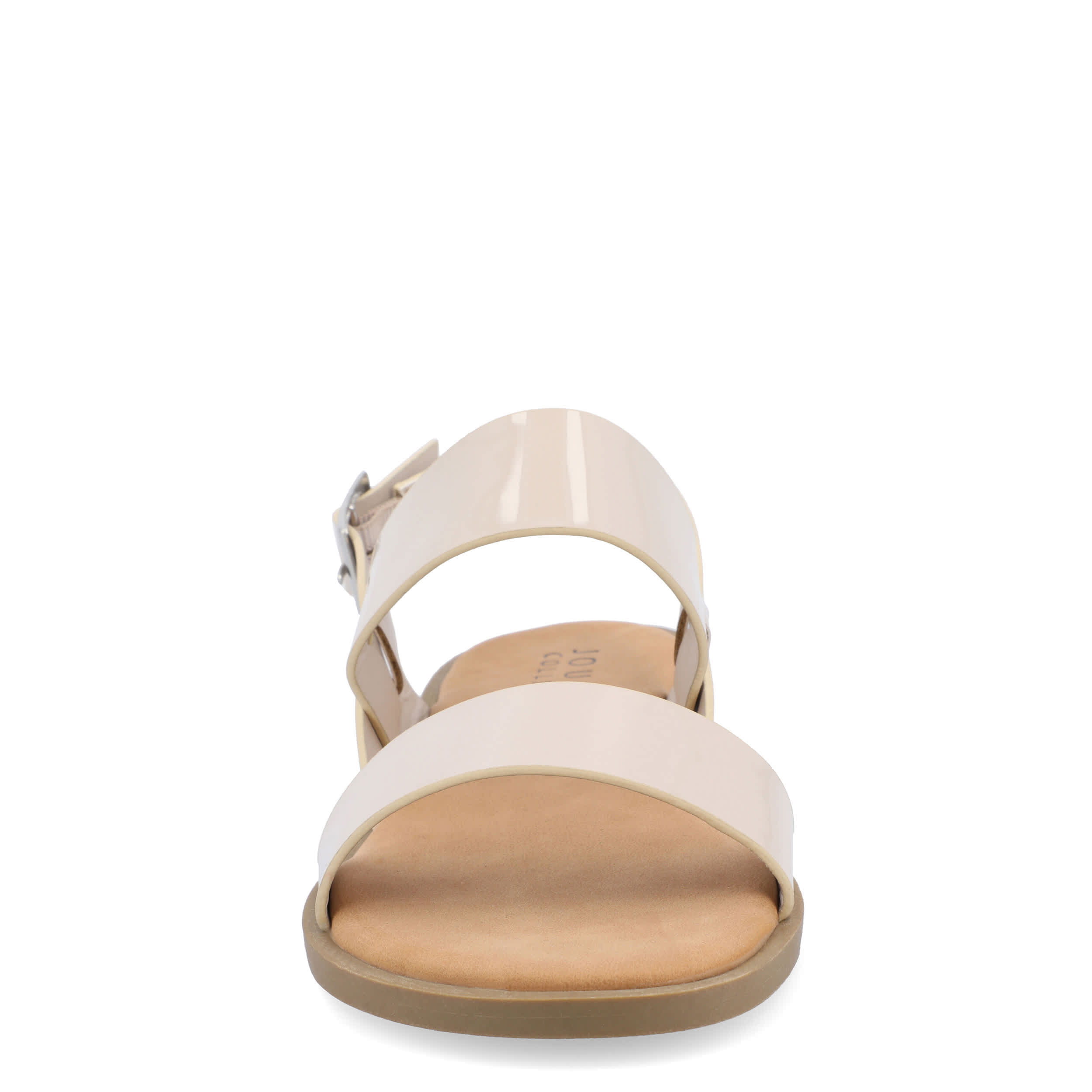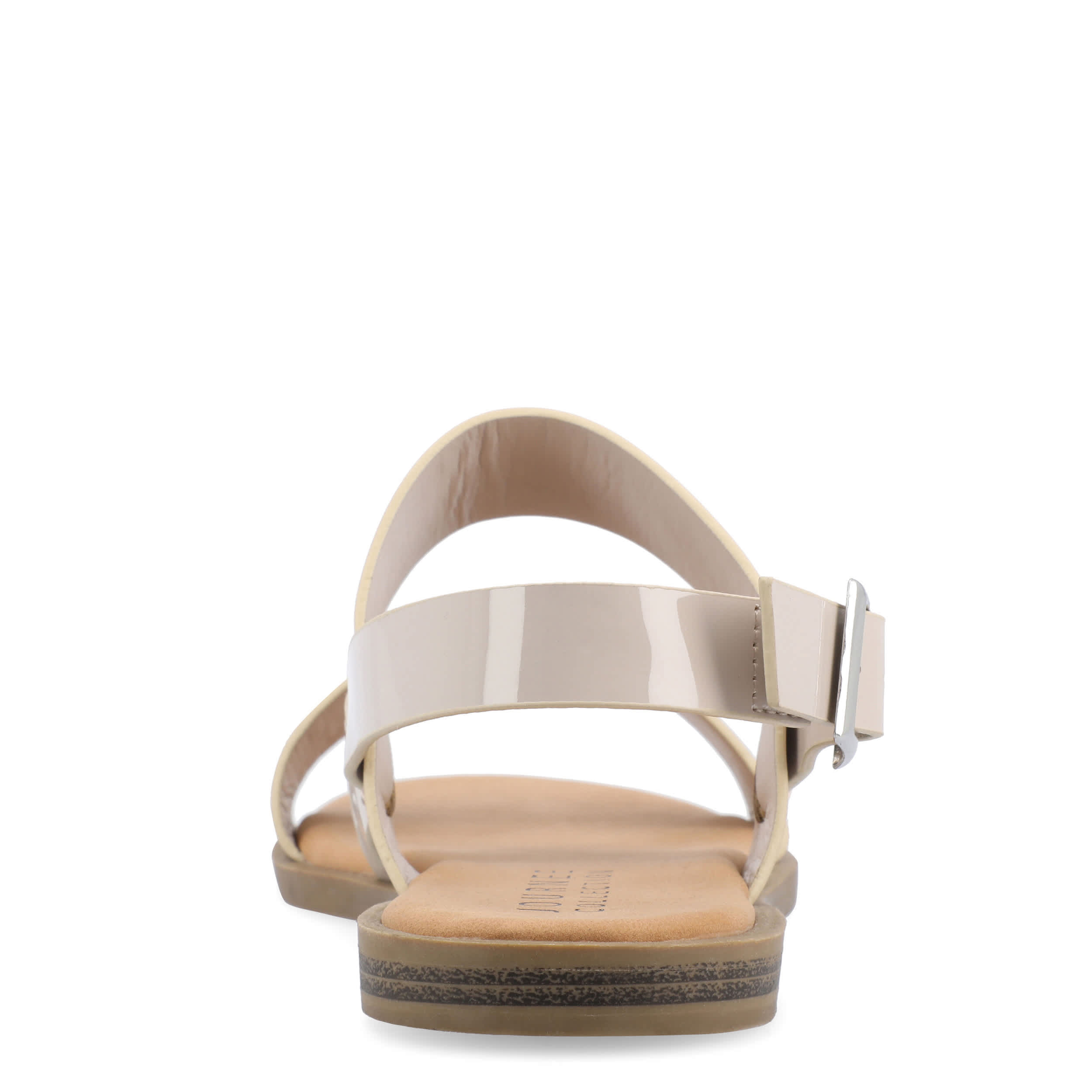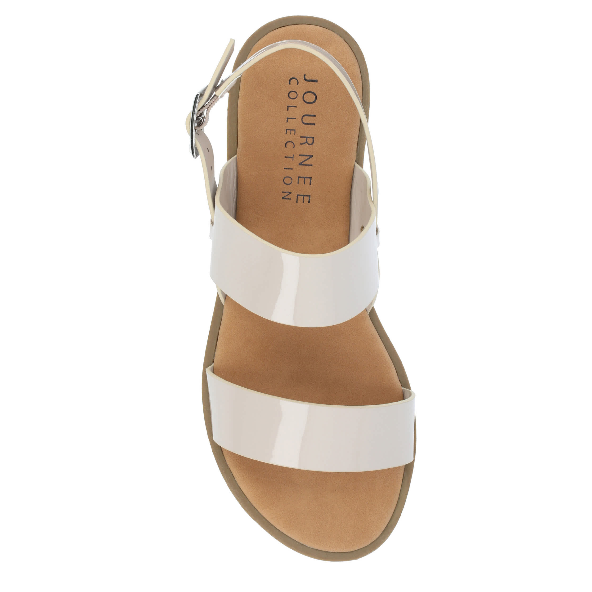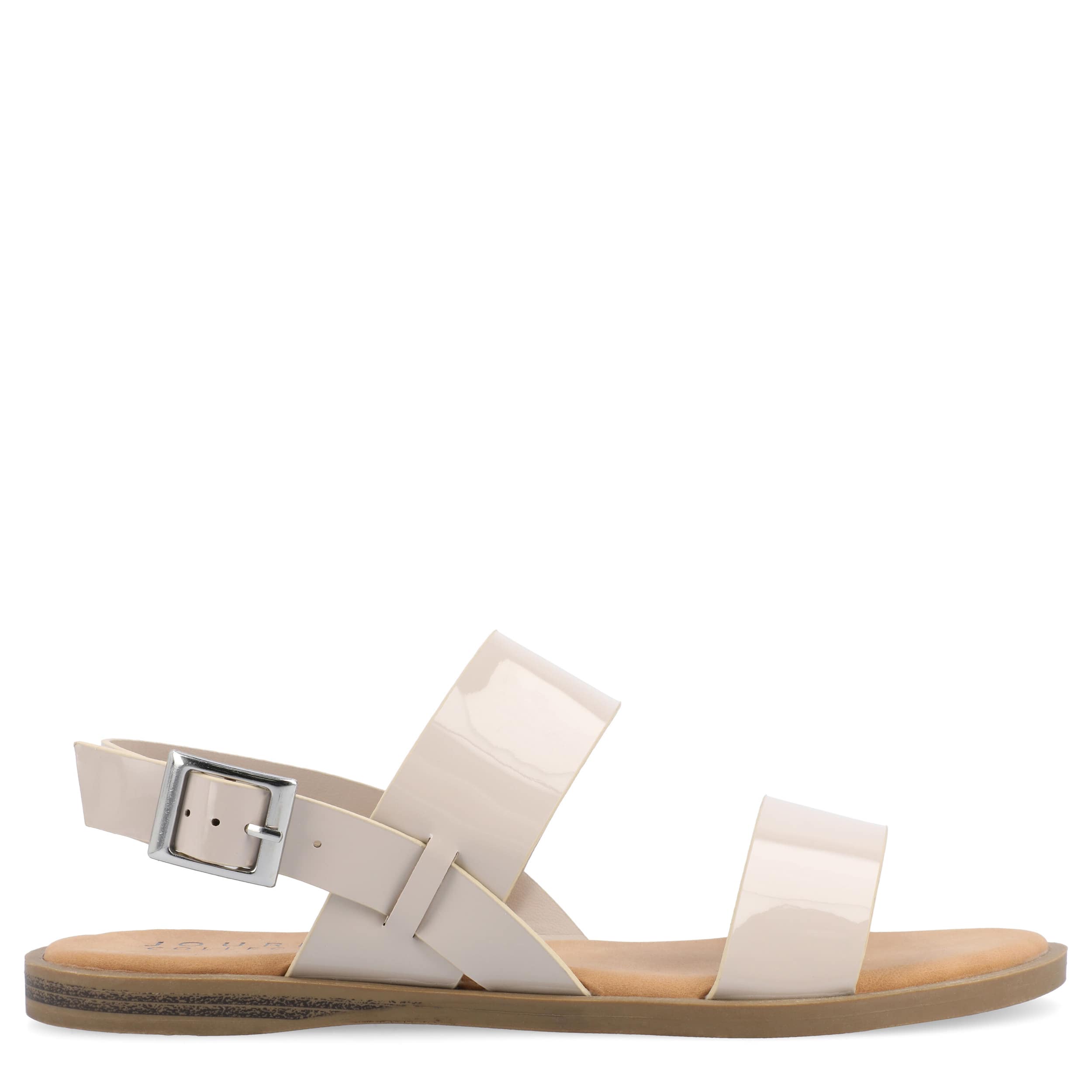 Achieve the minimalist aesthetic this summer in the Journee Collection Lavine sandal. With a patent leather upper featuring thick straps for support, these slingback sandals are laid-back and fit your casual vibe. The footbed cushions every step while the sole adds some flexibility.