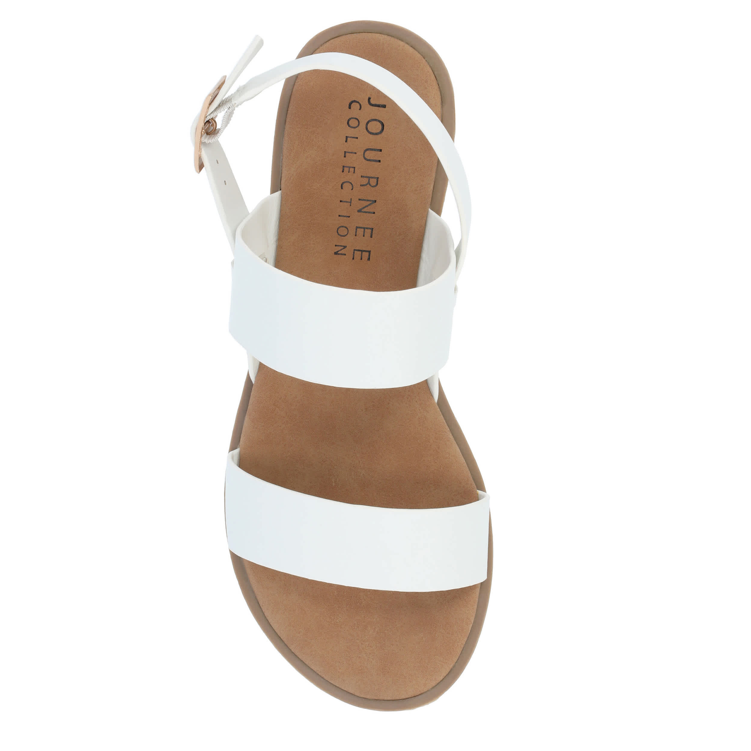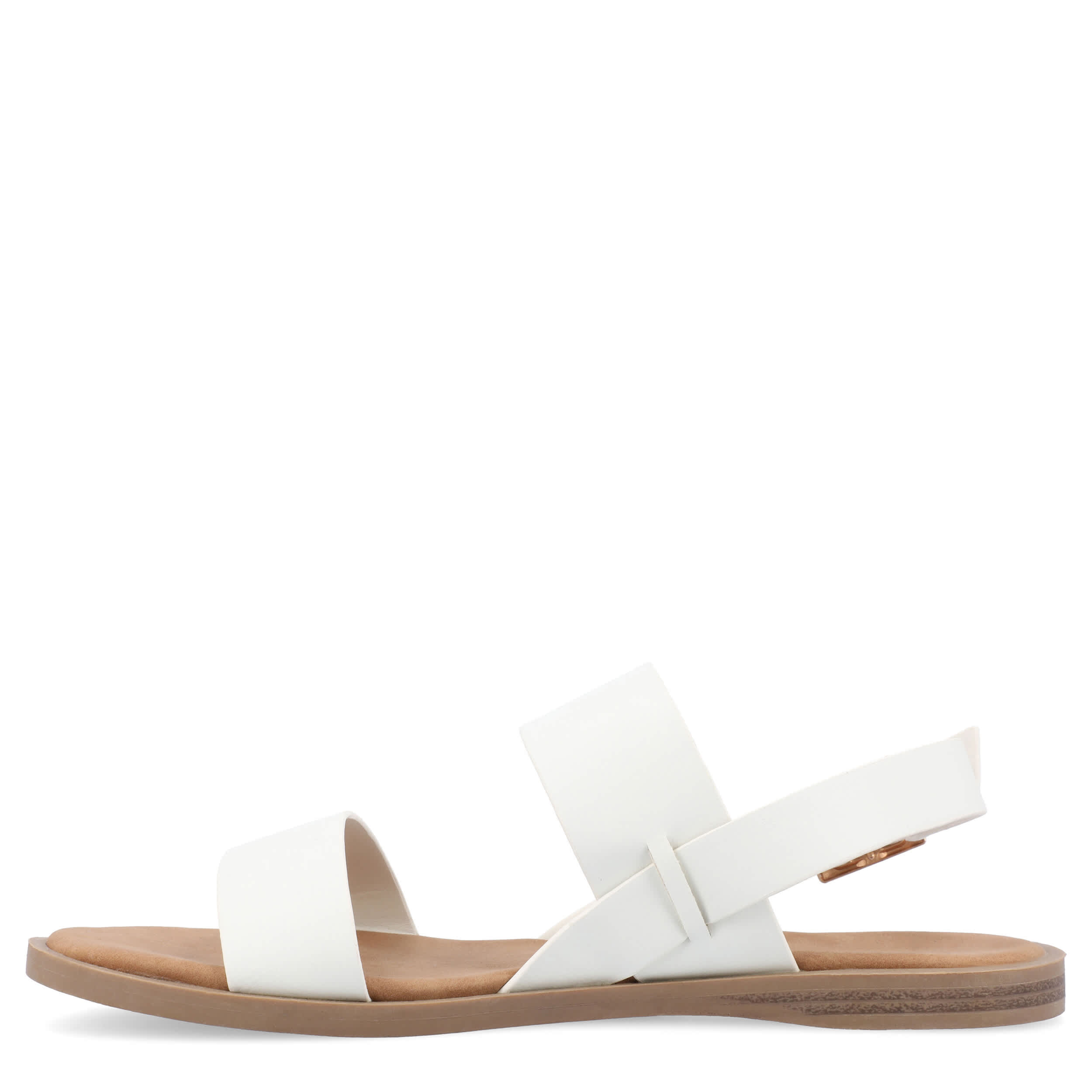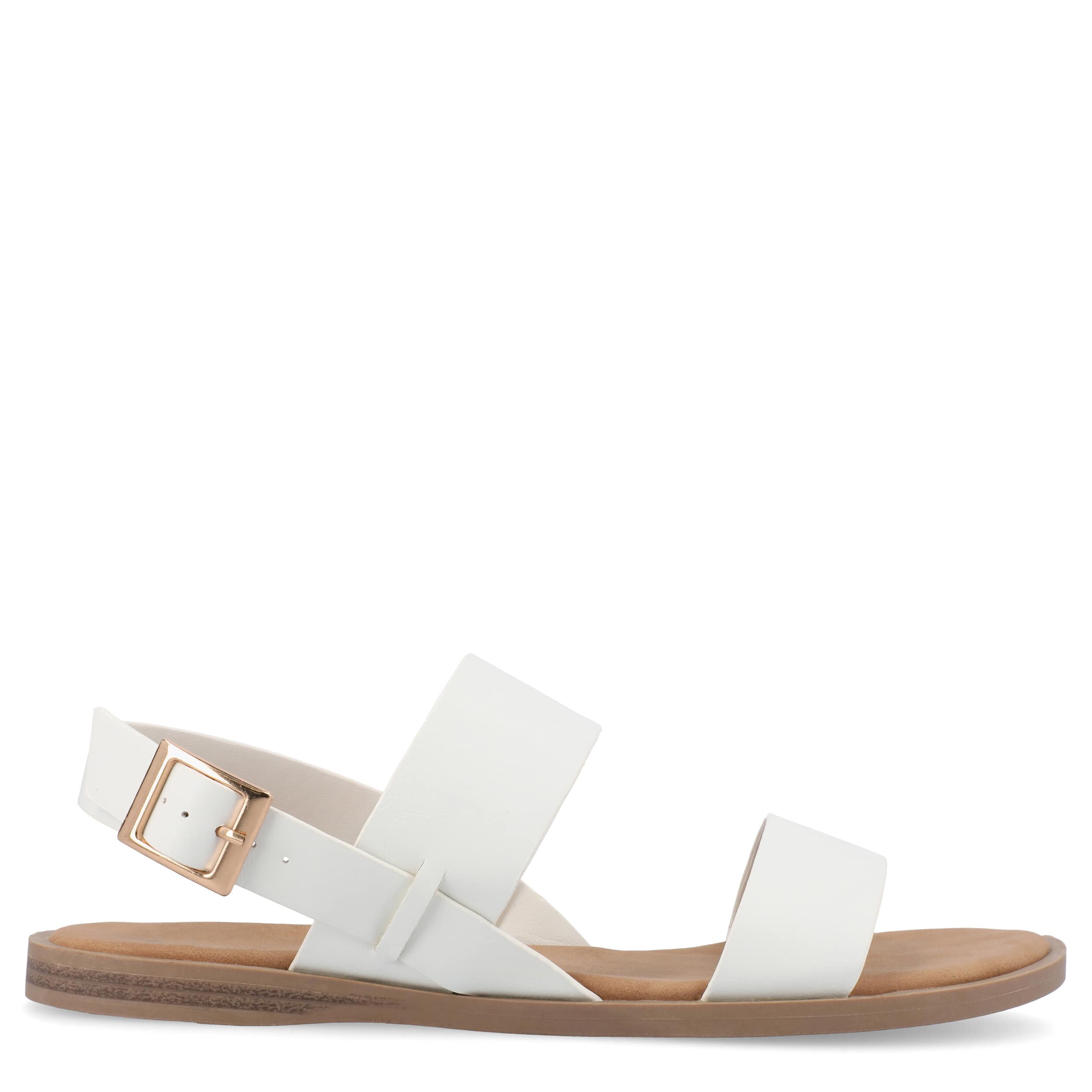 Strap your feet into the stylish Journee Collection Lavine Wide women's sandal all summer long. With a vegan leather upper featuring thick straps for support, these slingback sandals look great with capris, shorts or dresses. The footbed cushions every step while the sole adds some flexibility.