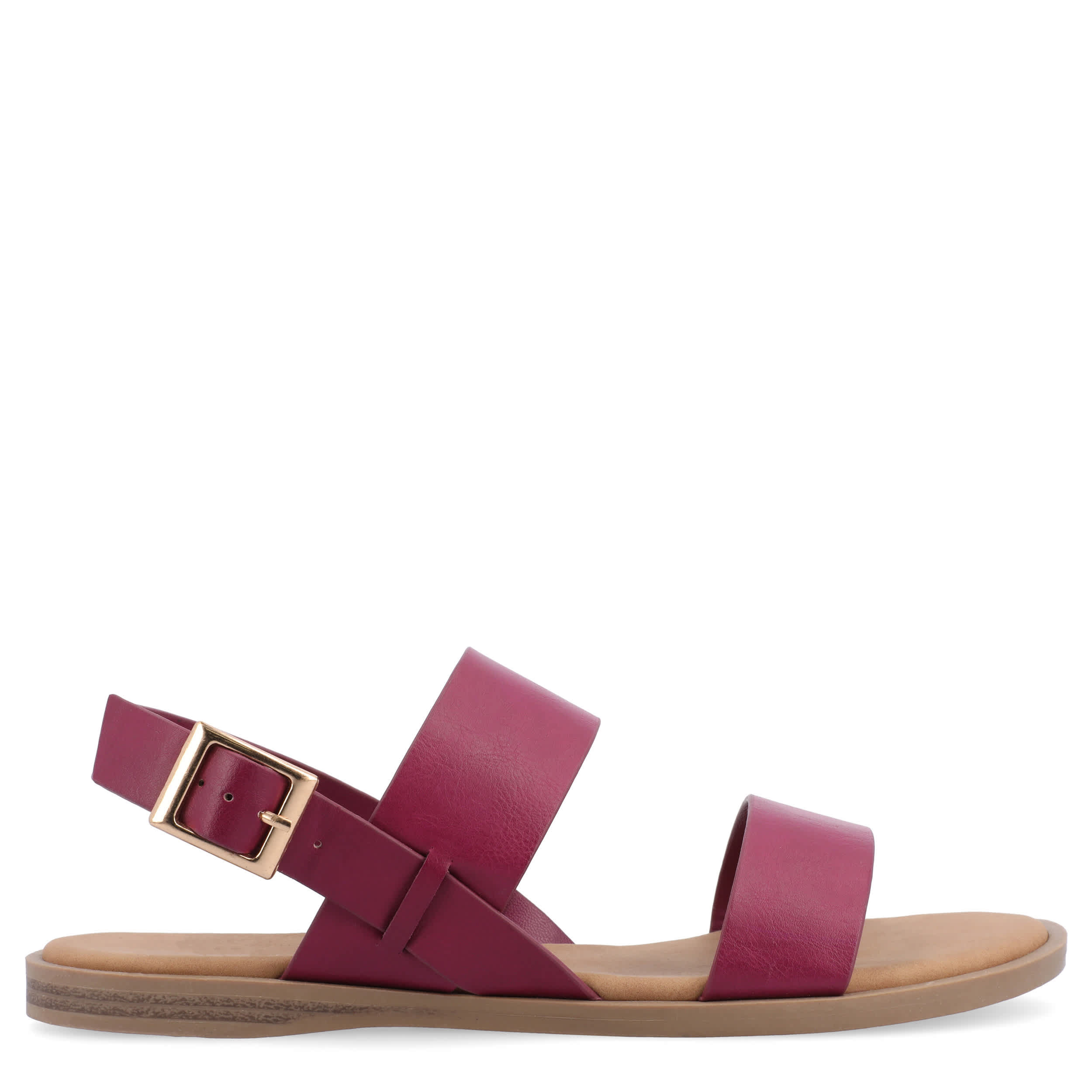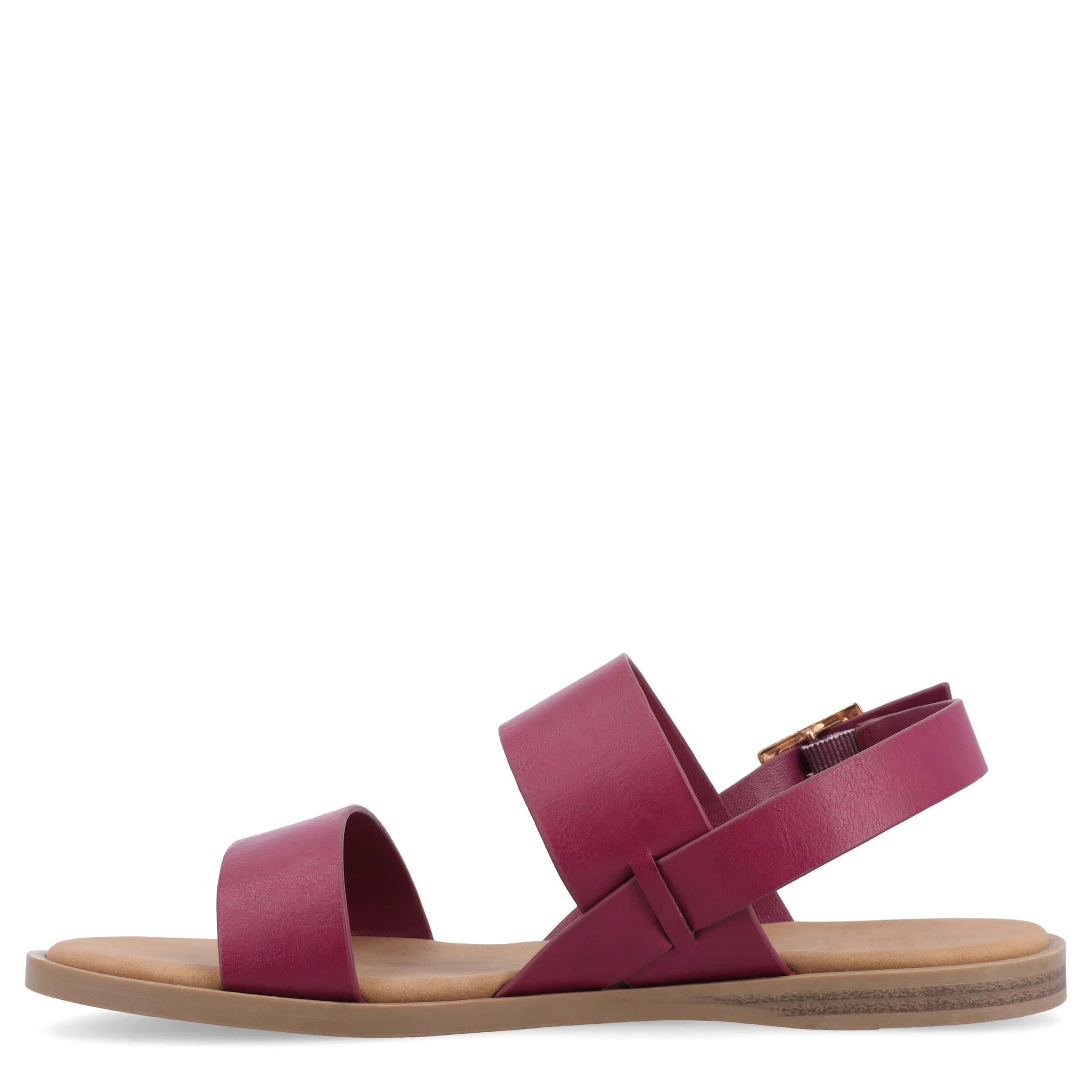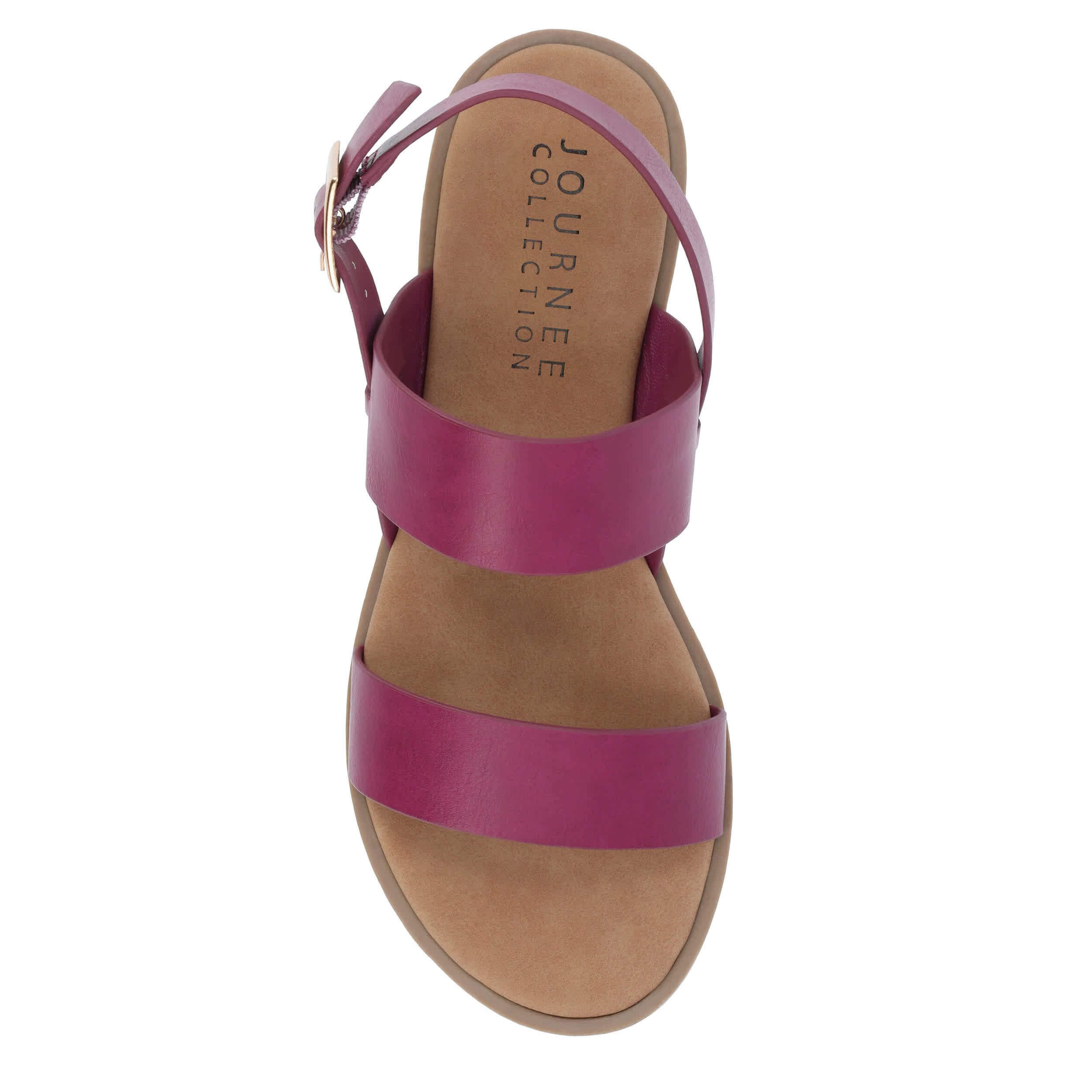 Strap your feet into the stylish Journee Collection Lavine Wide women's sandal all summer long. With a vegan leather upper featuring thick straps for support, these slingback sandals look great with capris, shorts or dresses. The footbed cushions every step while the sole adds some flexibility.