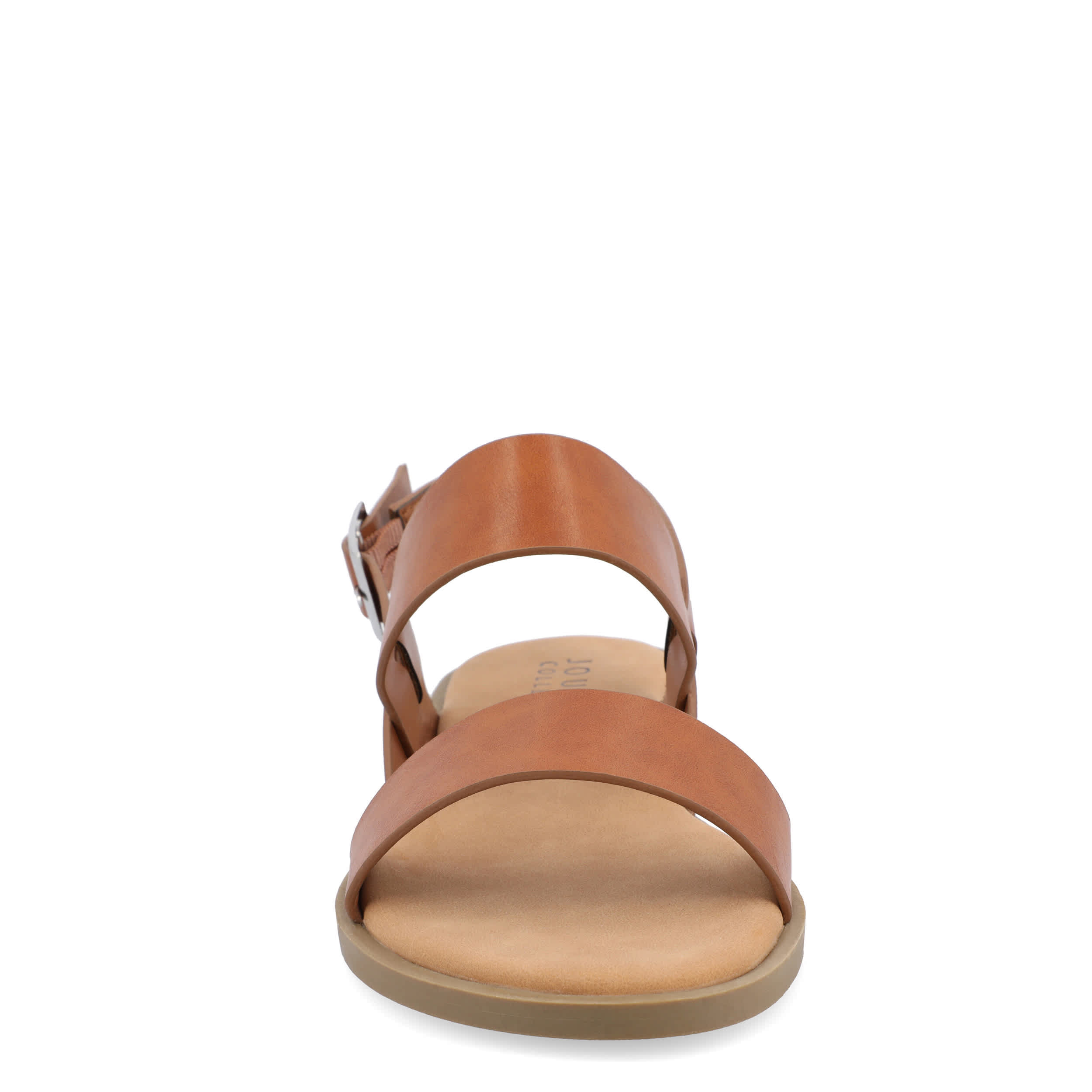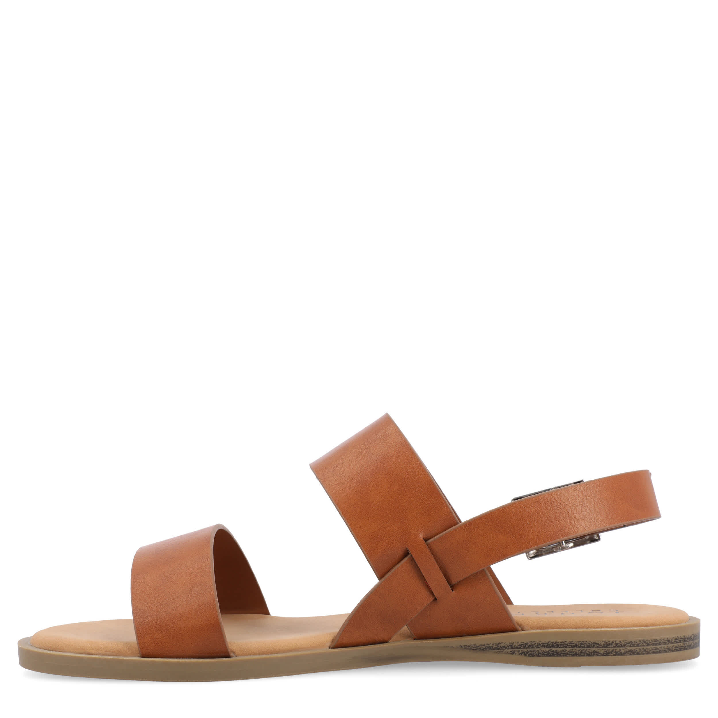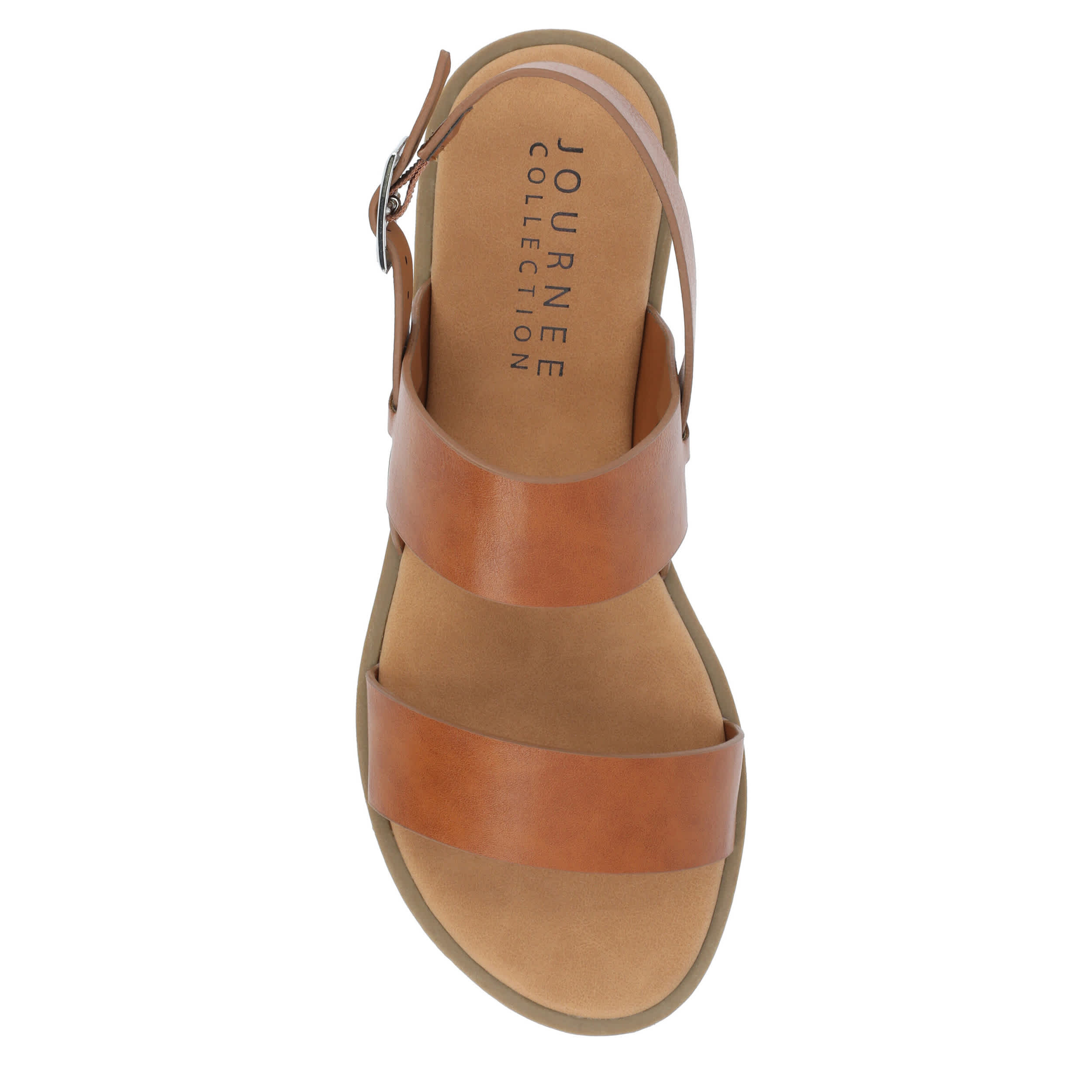 Strap your feet into the stylish Journee Collection Lavine Wide women's sandal all summer long. With a vegan leather upper featuring thick straps for support, these slingback sandals look great with capris, shorts or dresses. The footbed cushions every step while the sole adds some flexibility.