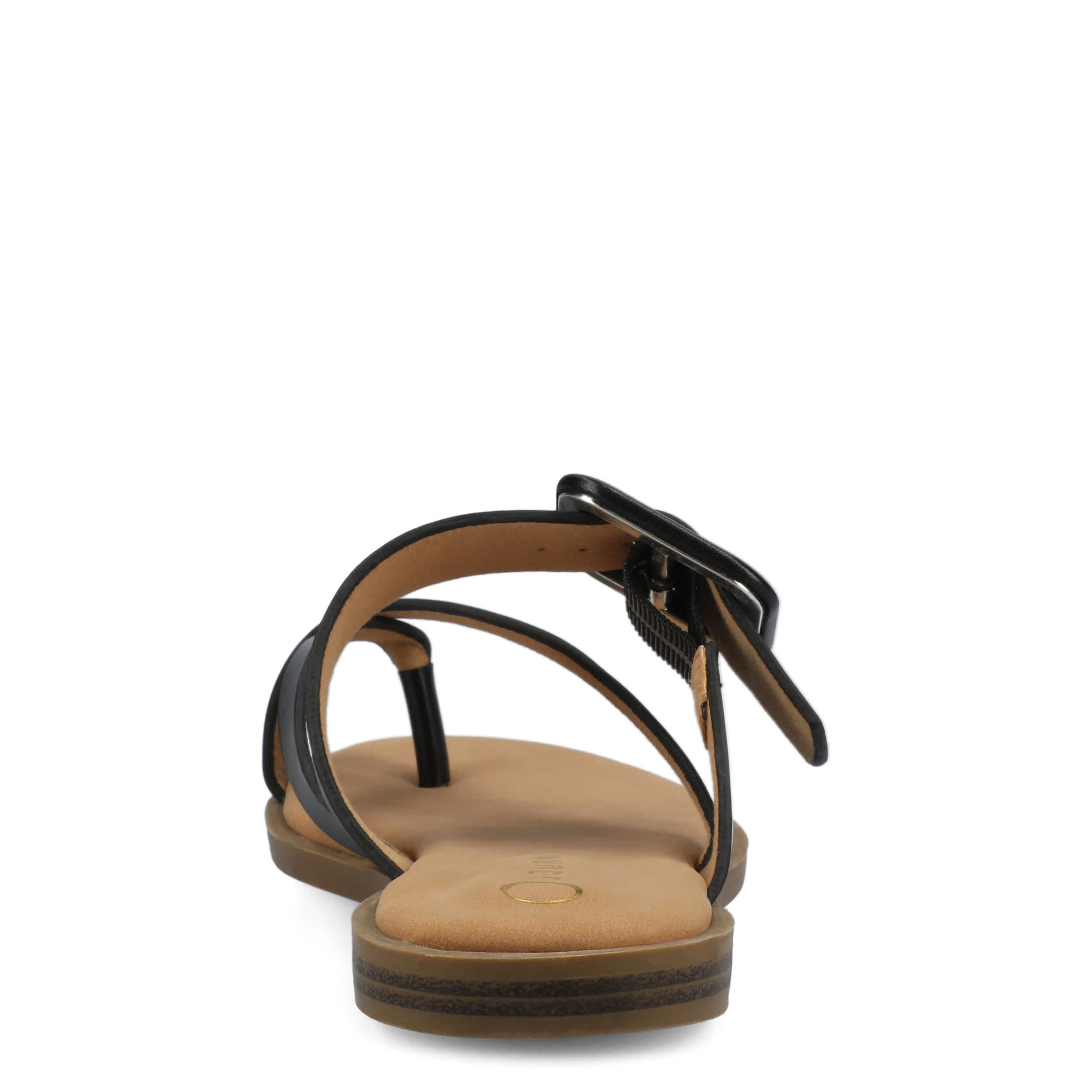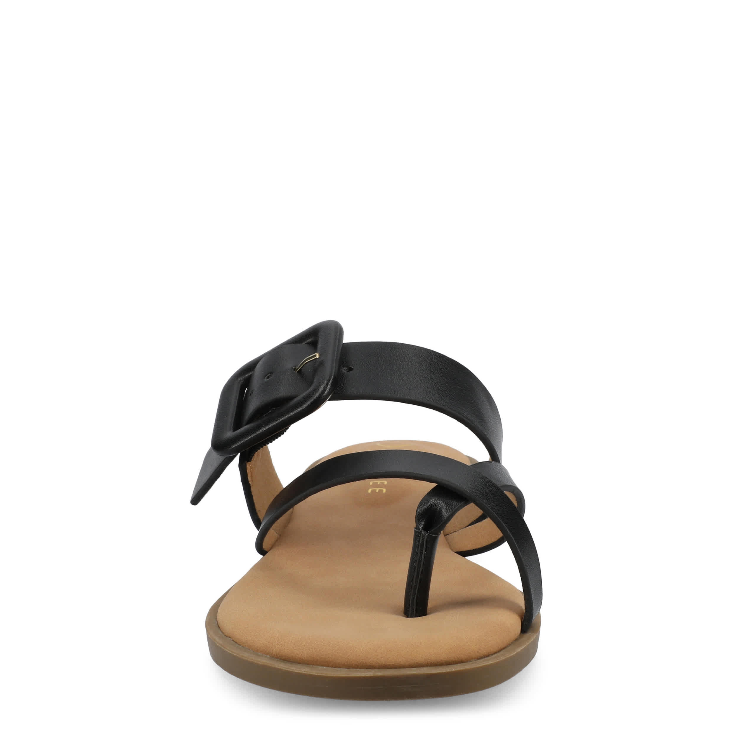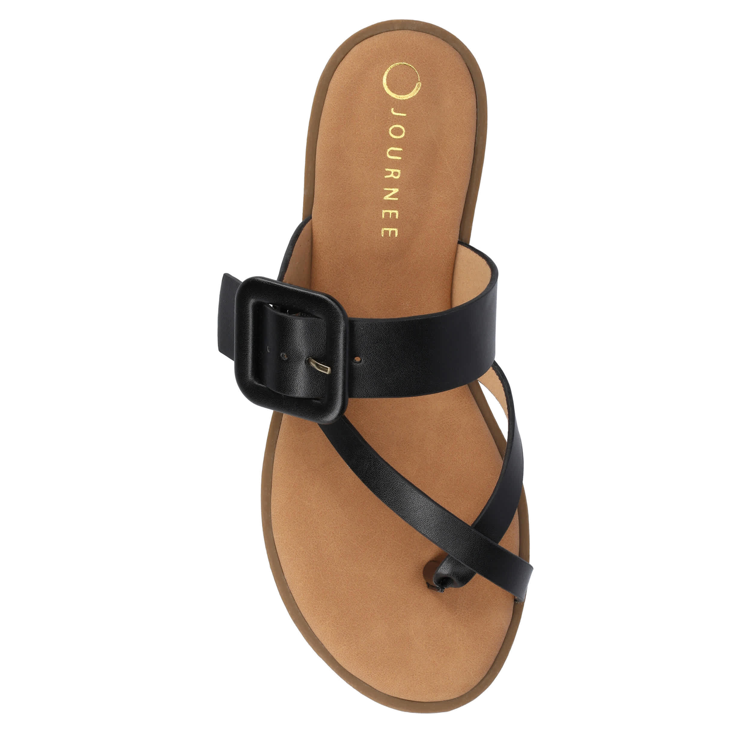 Step out in stylish comfort in the Journee Collection Layra slide sandal. Featuring a faux leather upper with a large buckle detail, this slide is cute everyday wear. The cushy insole keeps you supported for evening strolls this summer.