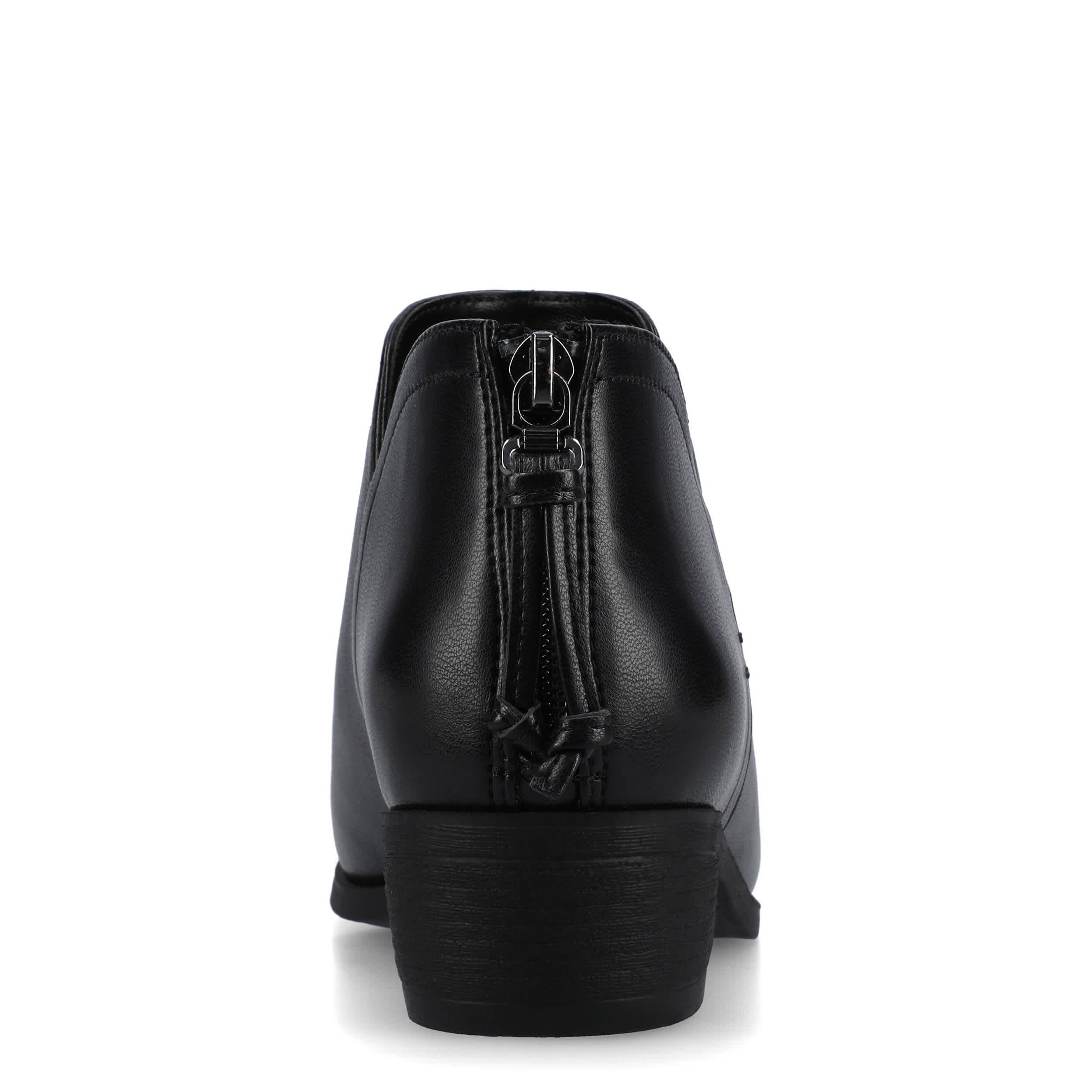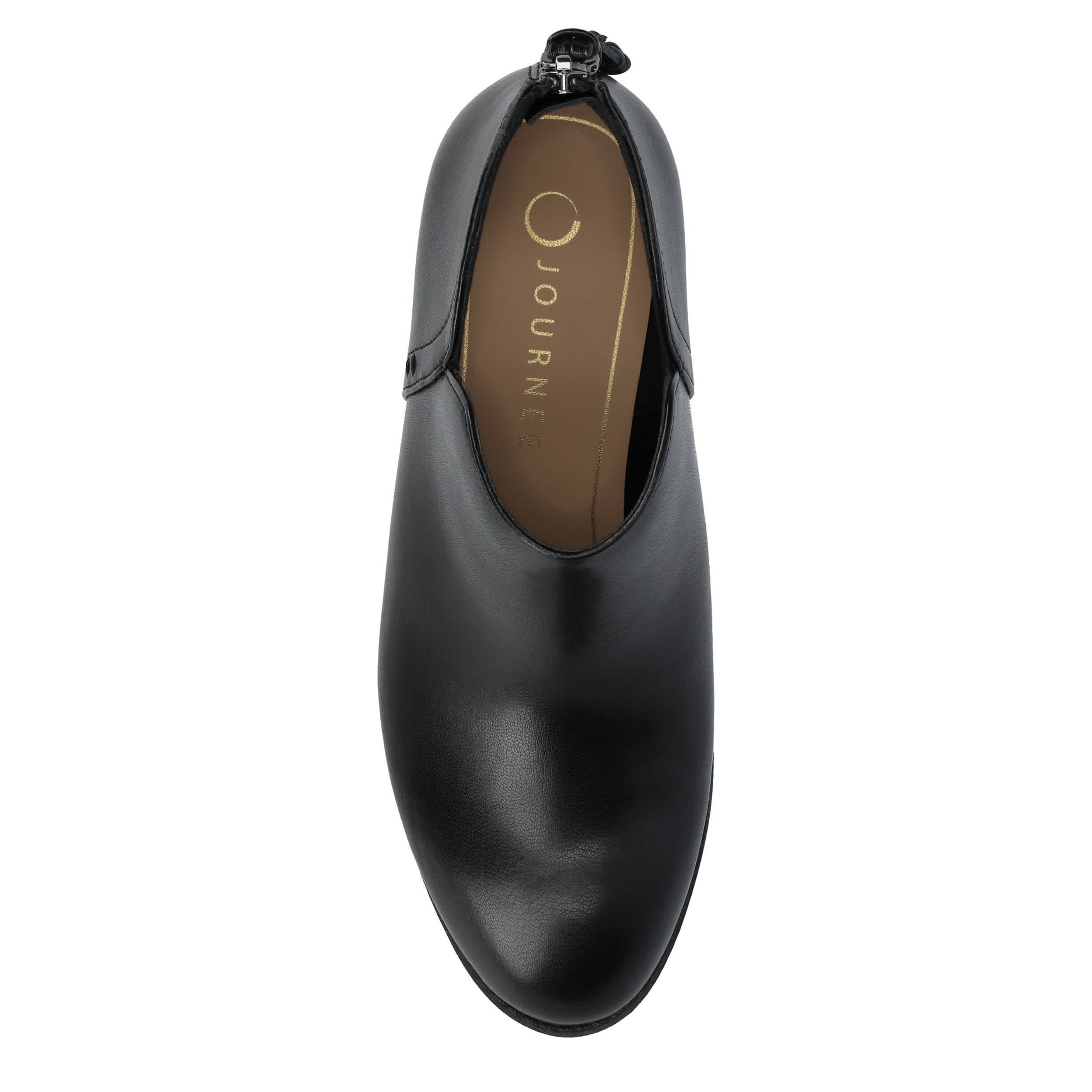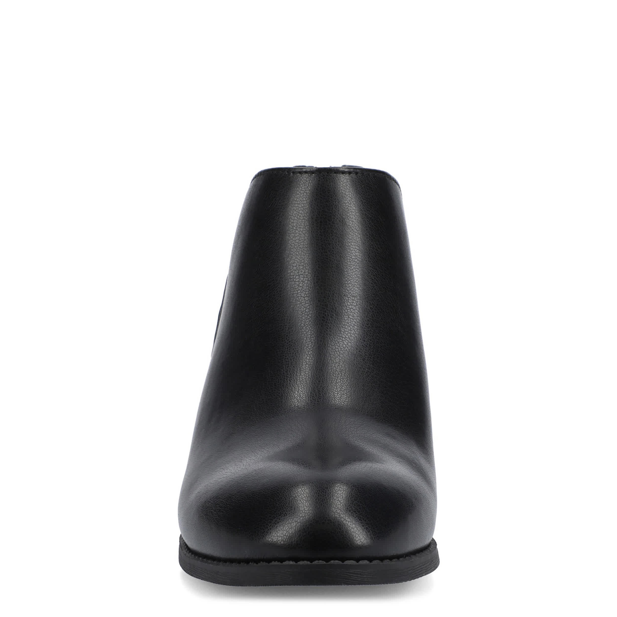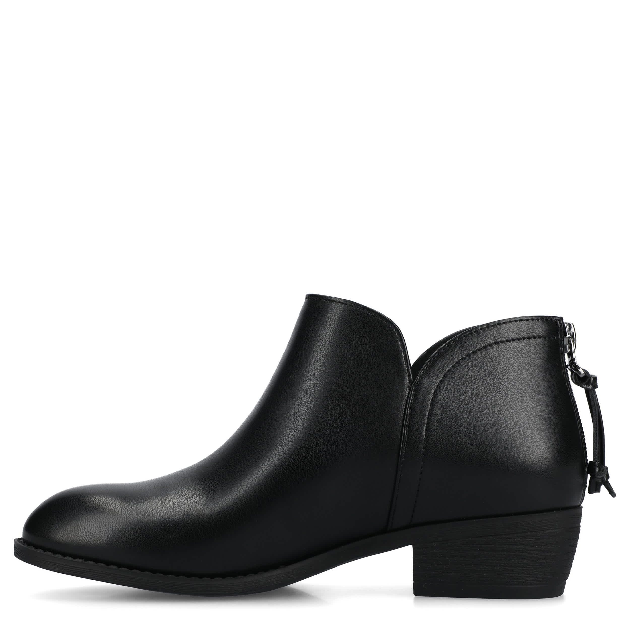 Comtemporary style gets enhanced in the Livvy women's bootie from Journee Collection. Featuring a faux leather upper with a round toe for extra room, this ankle boot even has a tasseled buckle. The insole cushions every step while the stable heel gives some height.