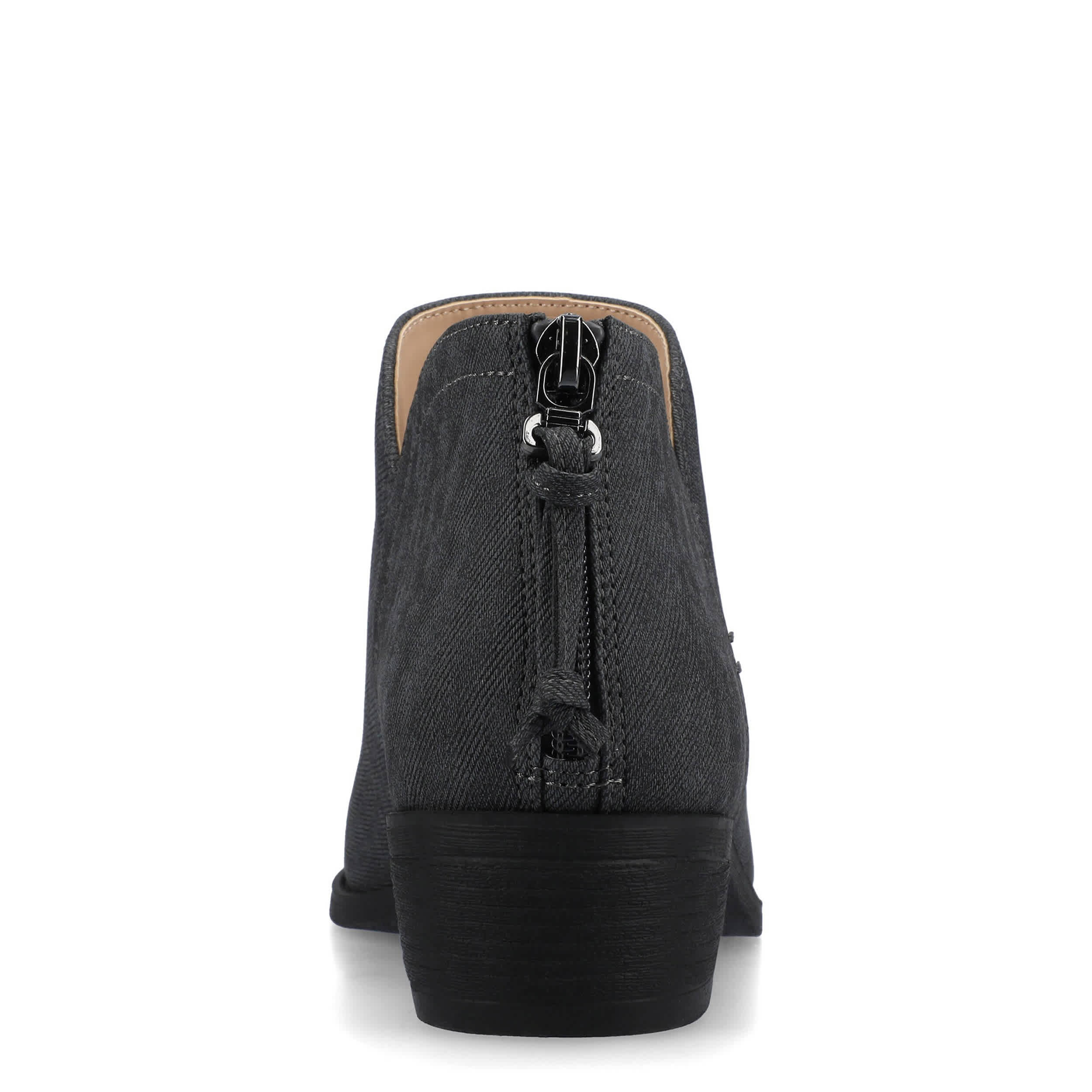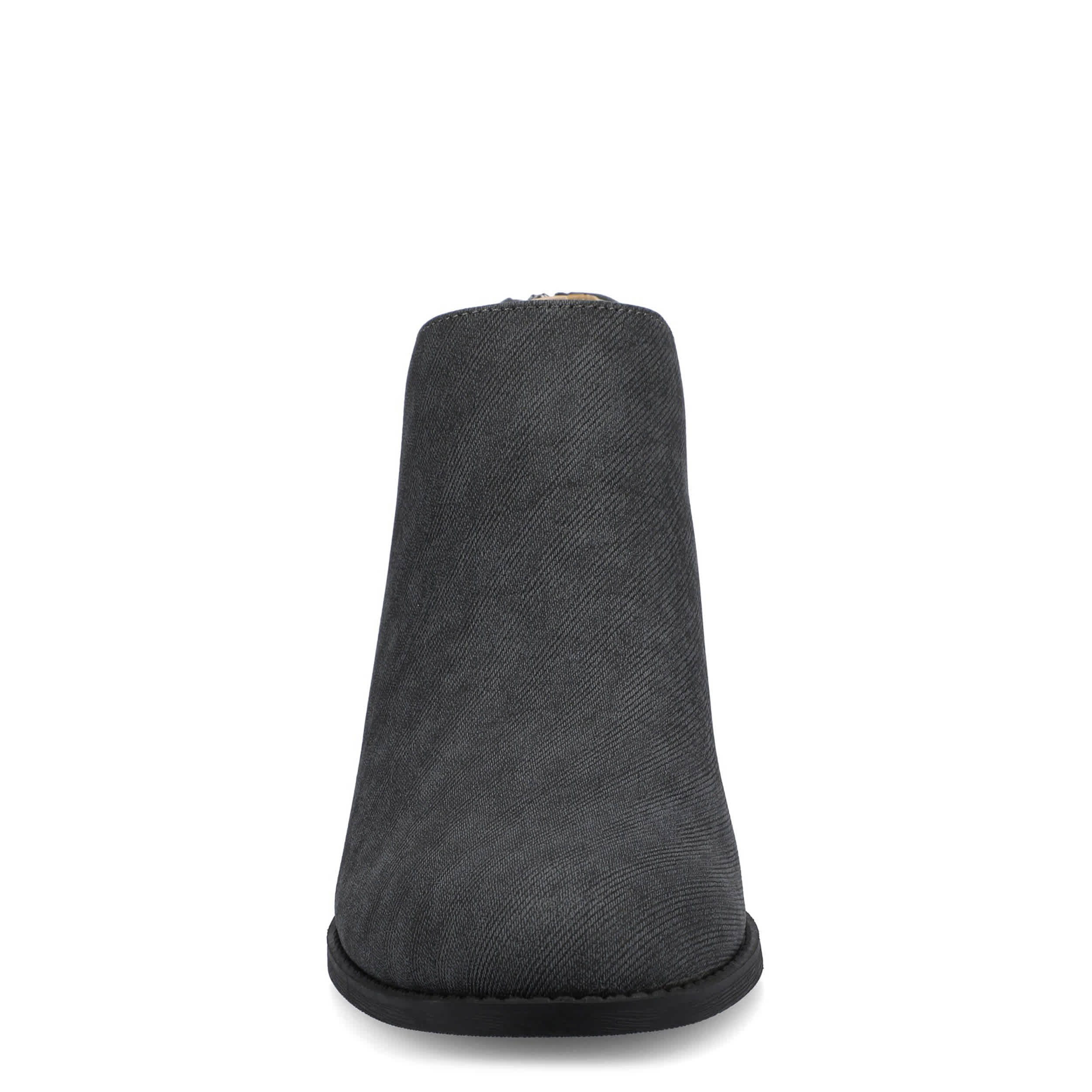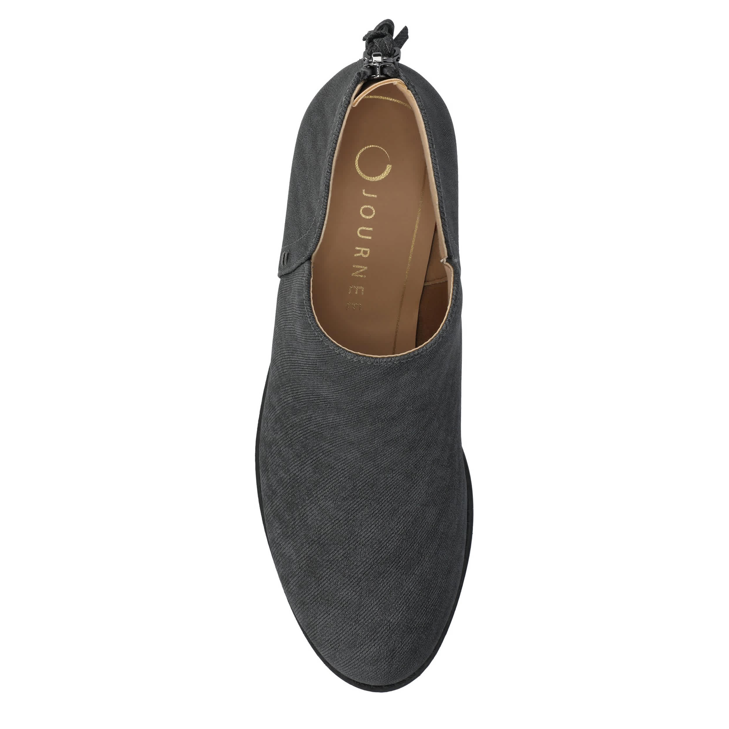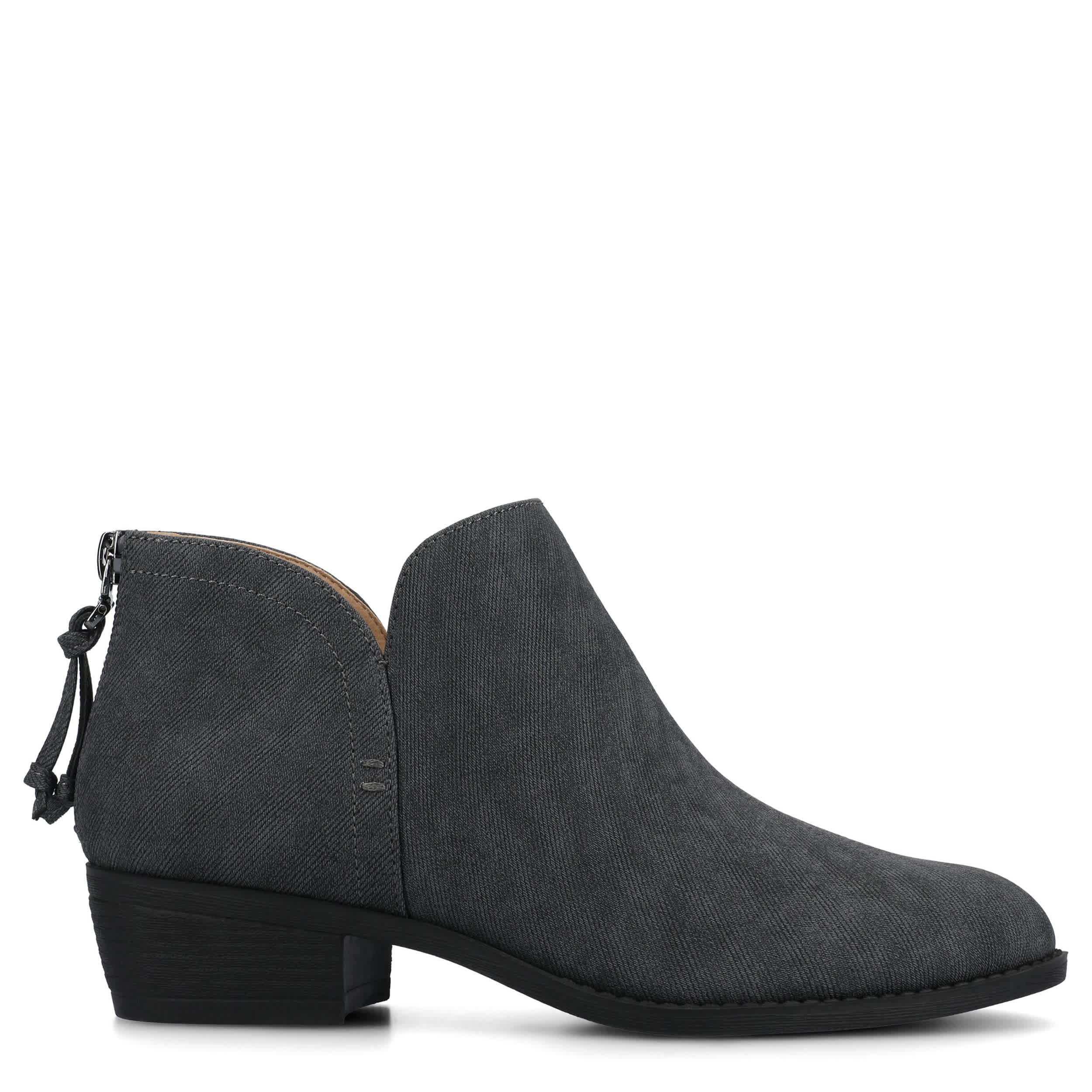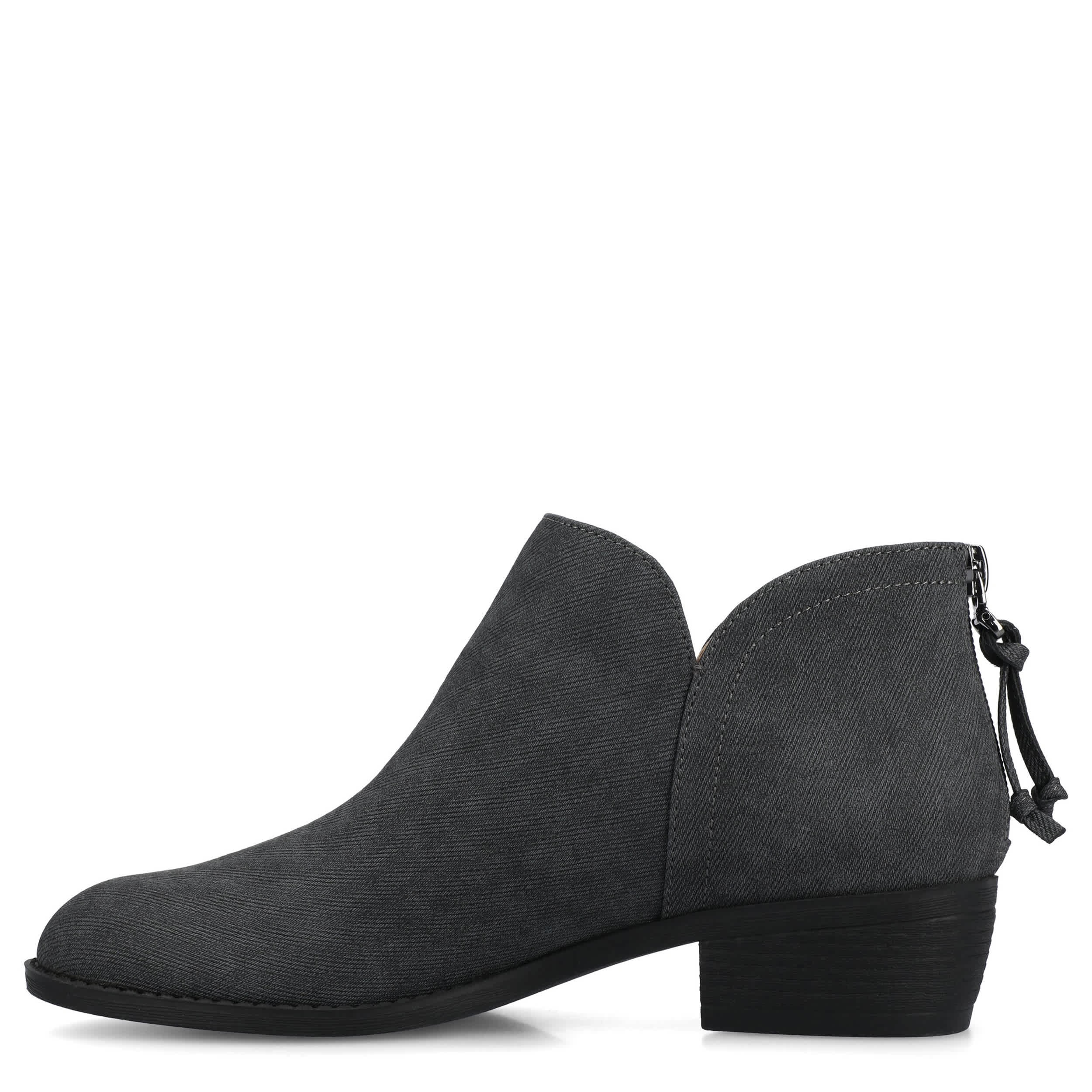 Comtemporary style gets enhanced in the Livvy women's bootie from Journee Collection. Featuring a faux suede upper with a round toe for extra room, this ankle boot even has a tasseled buckle. The insole cushions every step while the stable heel gives some height.