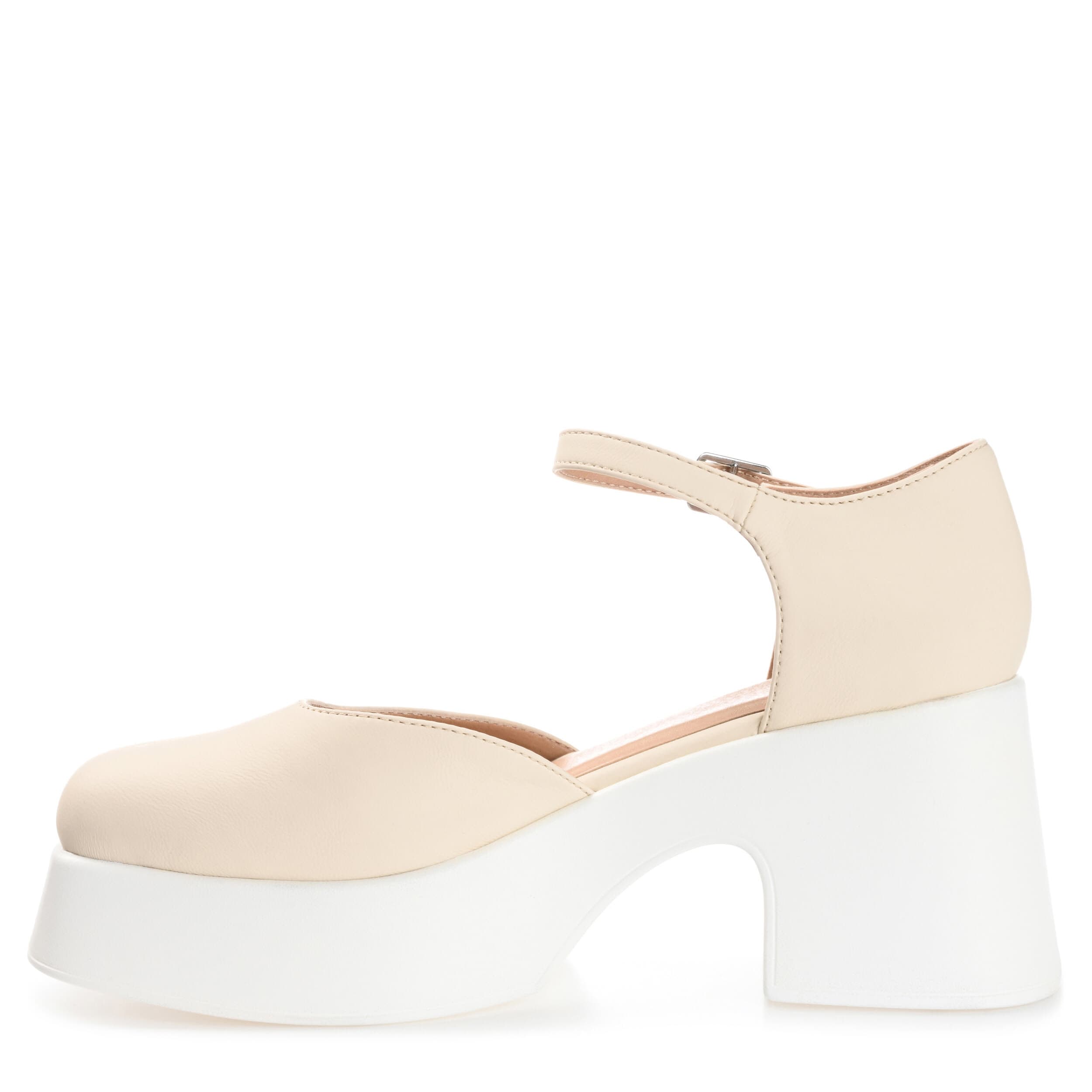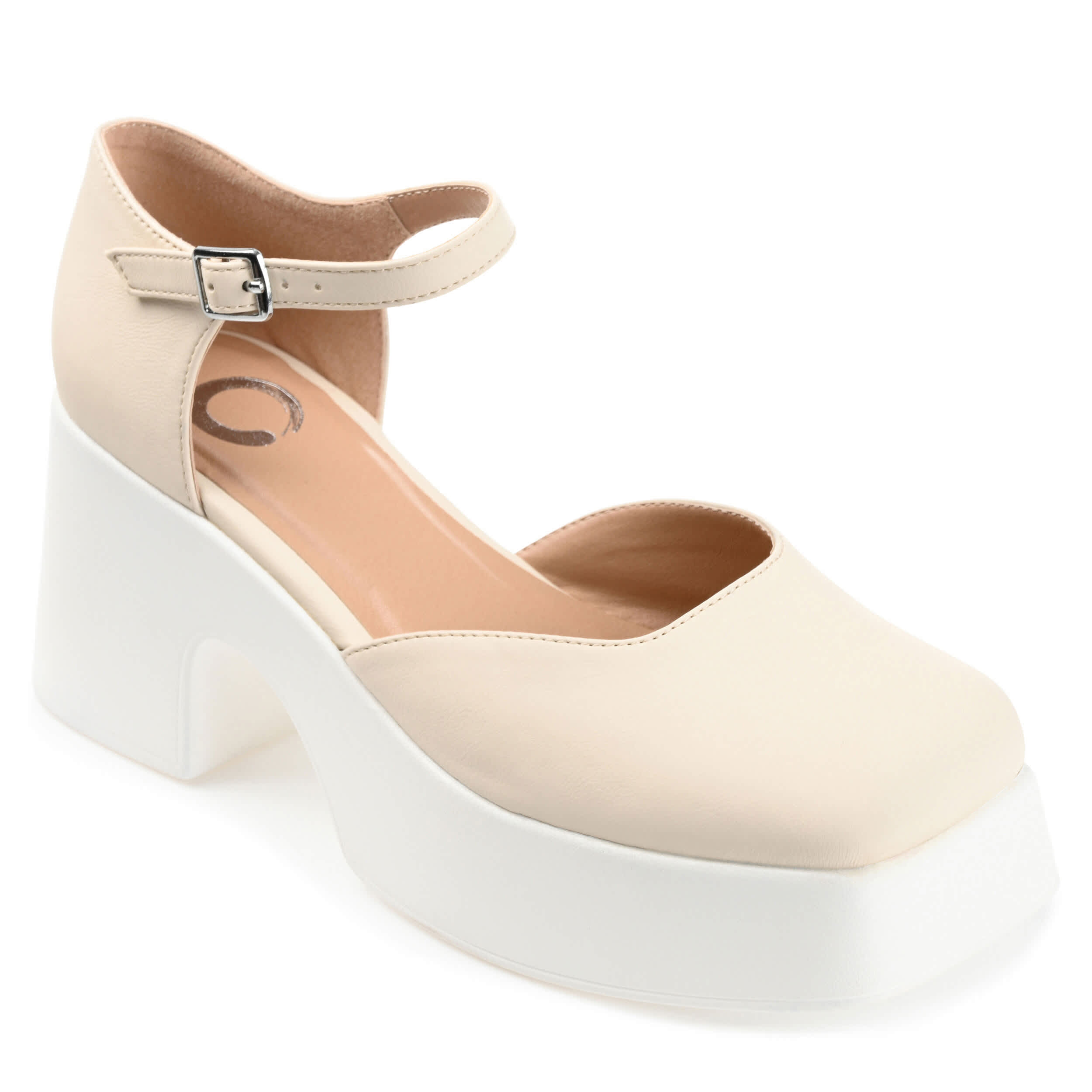 Make a statement in the Lizza women's pump from Journee Collection. With a luxe vegan leather upper featuring a thin ankle strap that adjusts for a perfect fit, this Mary Jane-style pump, with its flattering square toe and chunky block heel, looks great with casual cuffed jeans or a cute dress. A padded footbed cushions your feet, while the synthetic outsole provides an outstanding grip.