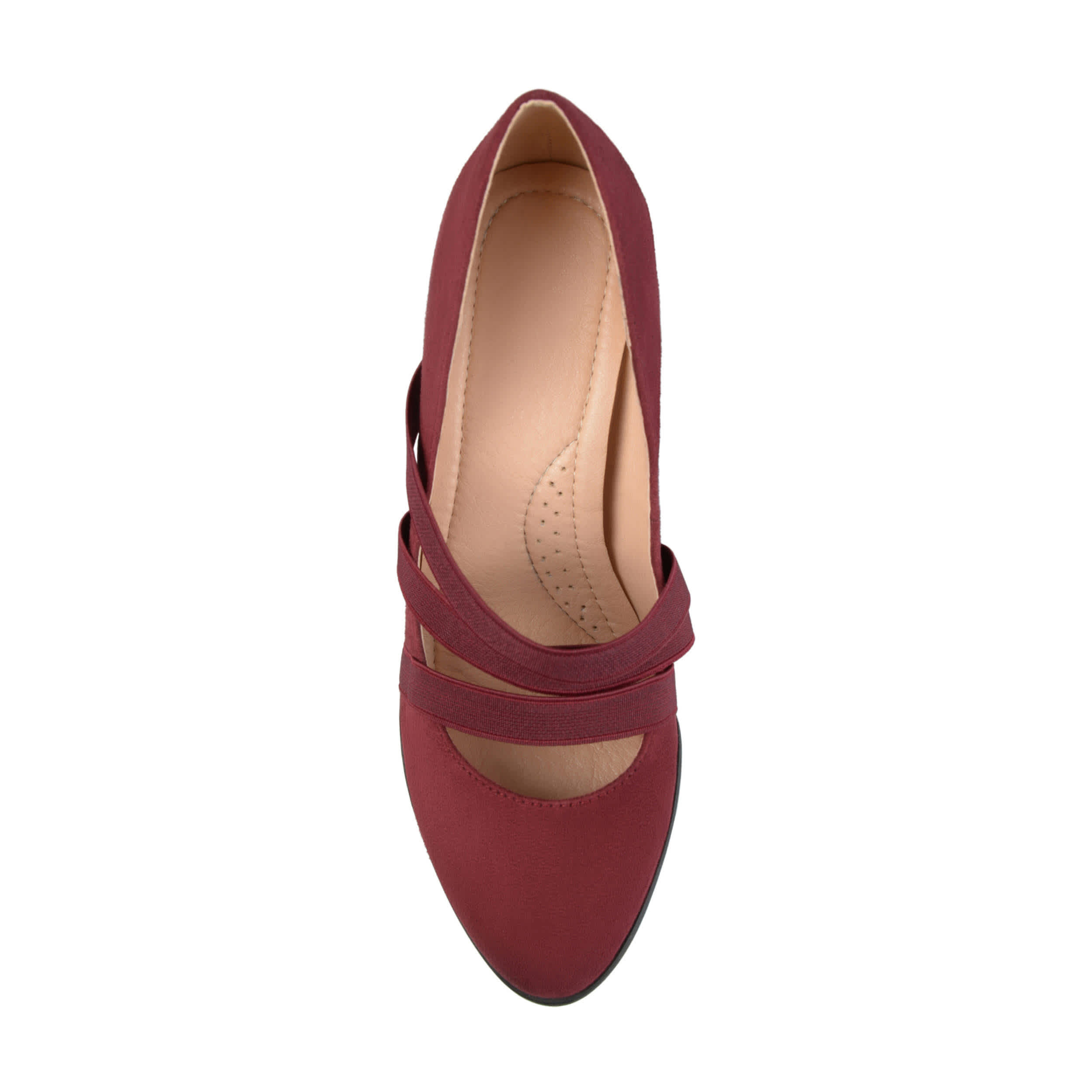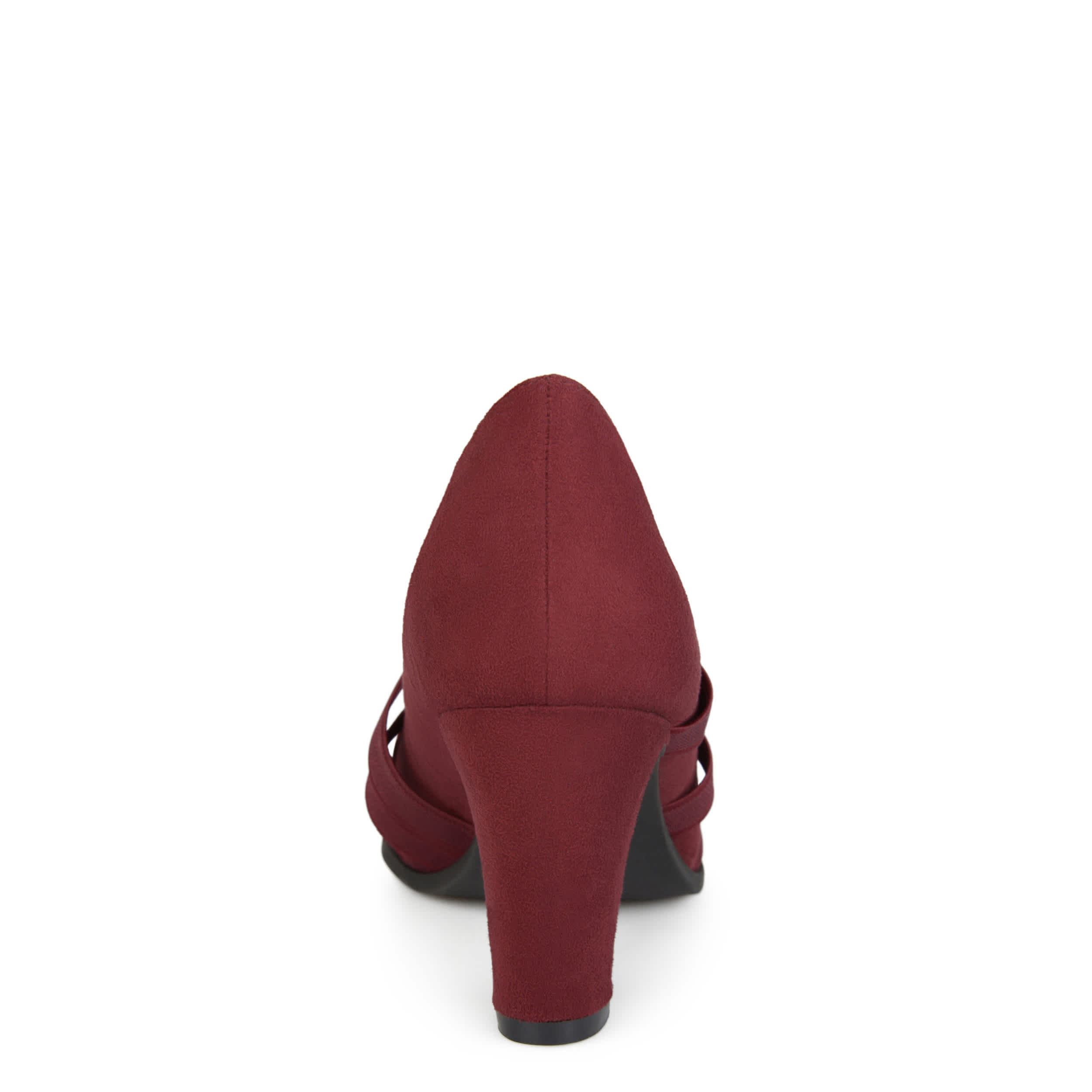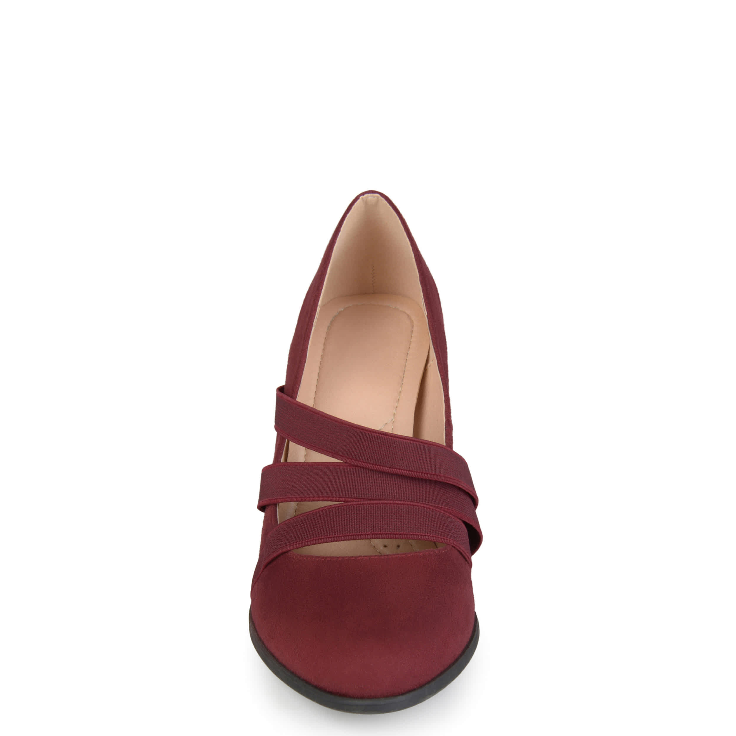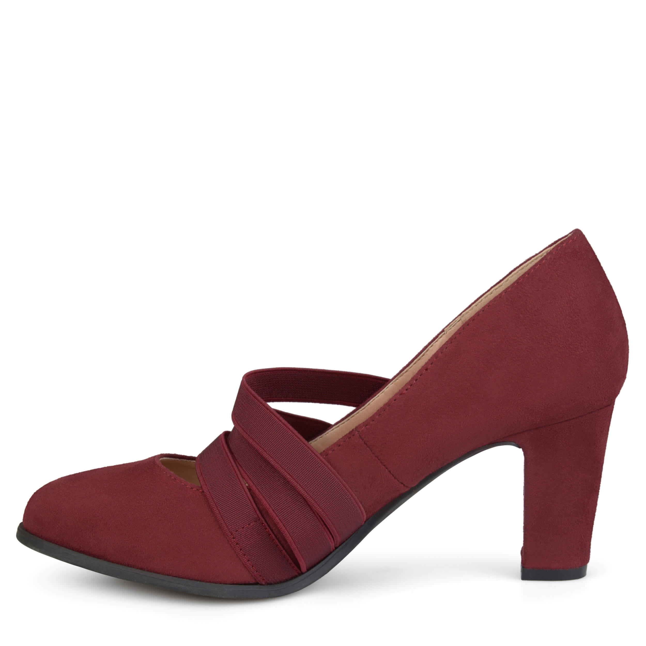 Look sharp while staying comfortable in this Loren dress heel from Journee Collection. The faux suede upper has a classic pump design with a trio of elastic straps for easy slip-on entry. The covered block heel adds 2¾" to your professional silhouette.