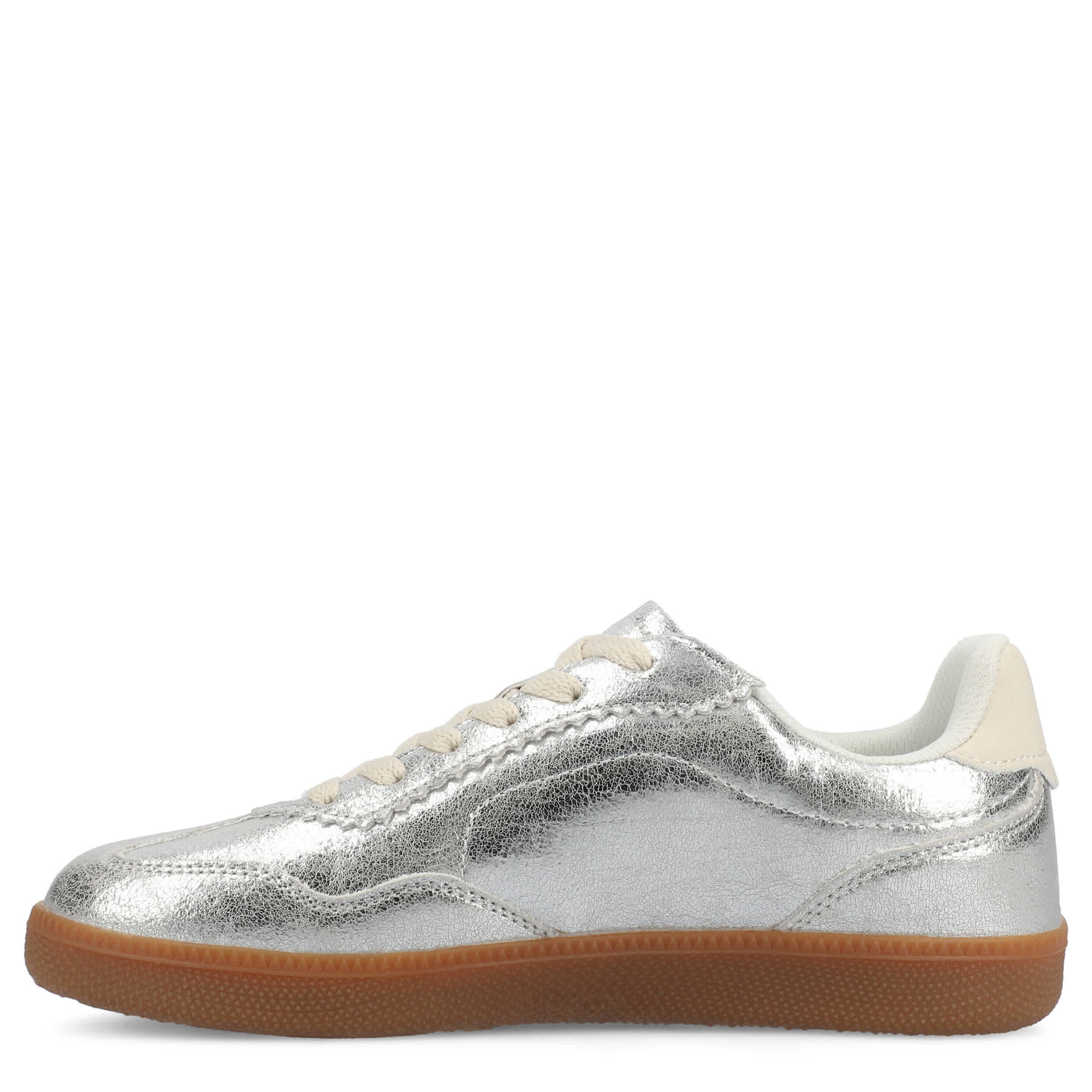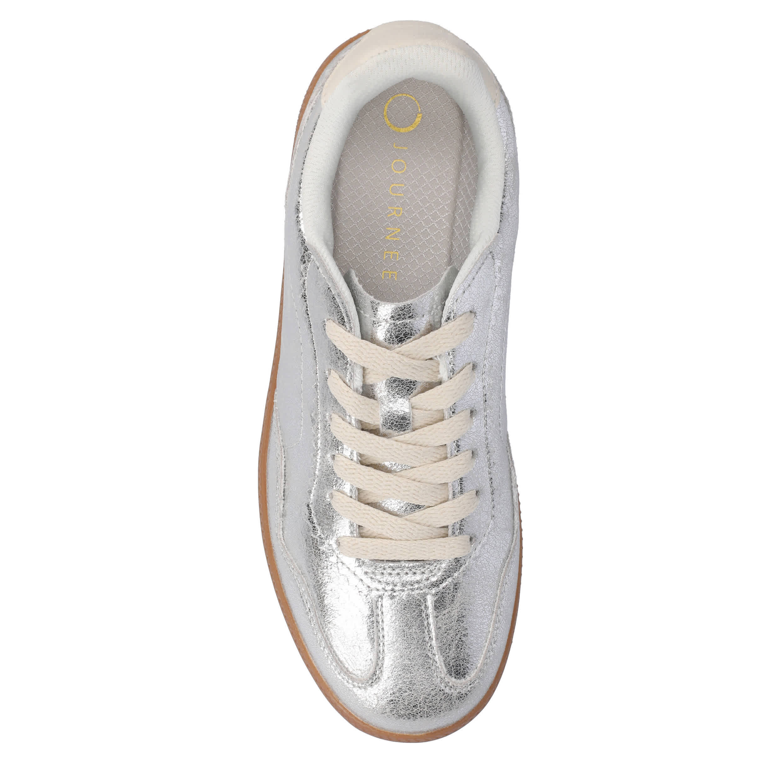 For running errands or going out with friends, the Lummie sneaker from Journee Collection has you covered. Featuring a T-toe styled, metallic faux leather upper with a contrast heel for an extra touch, this shoe is laid-back and versatile. The comfy footbed and durable outsole provide excellent support for all-day wear.