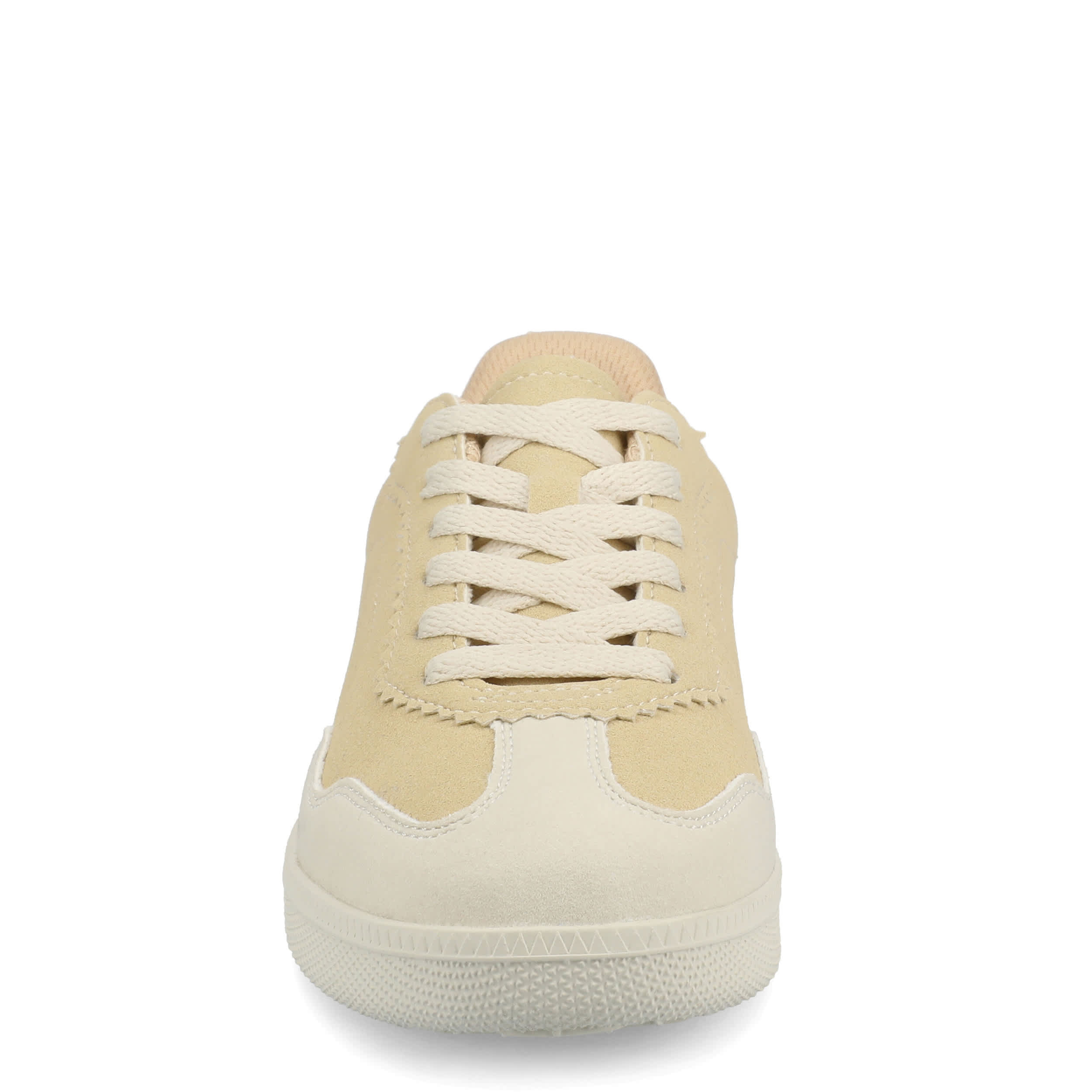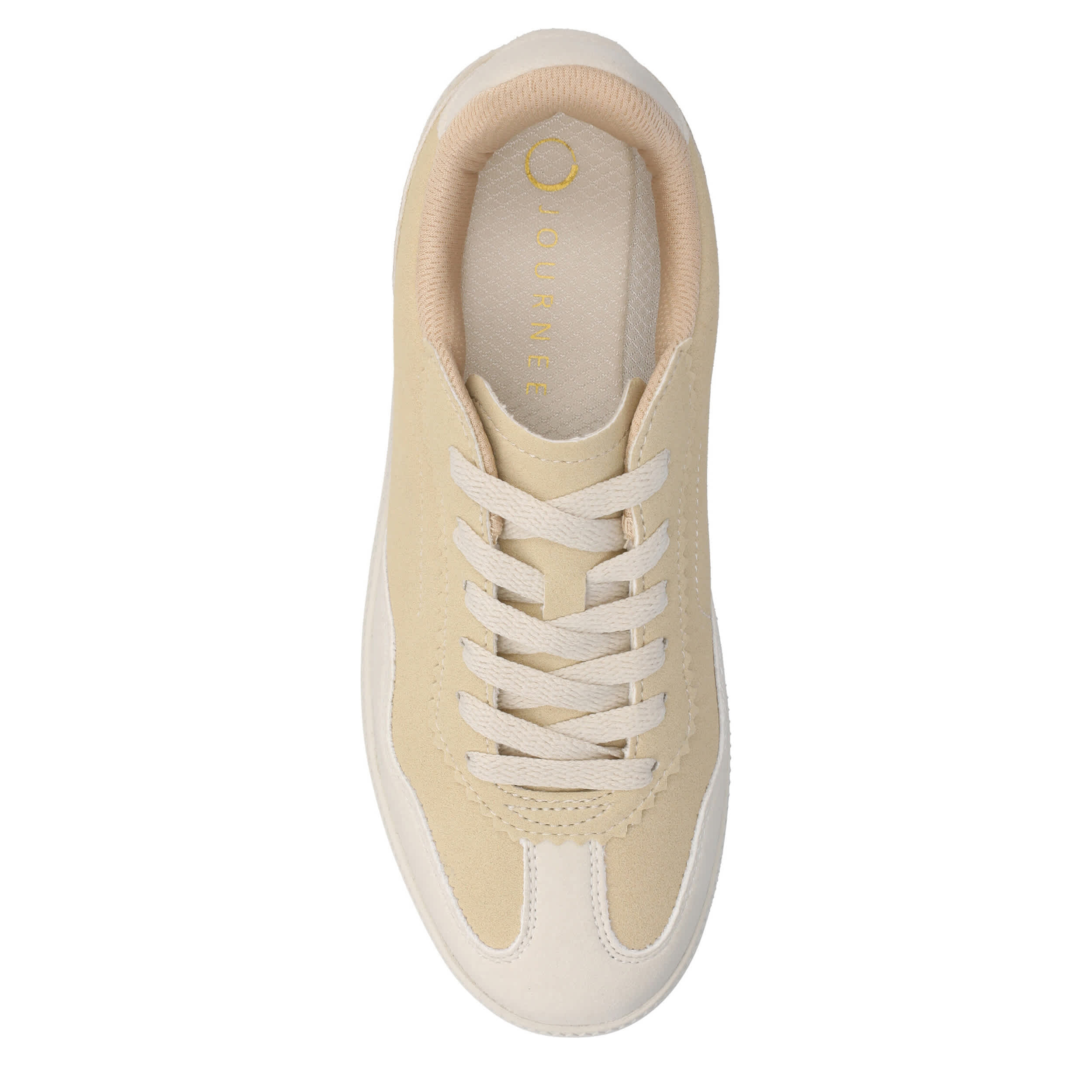For running errands or going out with friends, the Lummie sneaker from Journee Collection has you covered. Featuring a T-toe styled faux leather upper with a contrast heel for an extra touch, this shoe is laid-back and versatile. The comfy footbed and durable outsole provide excellent support for all-day wear.