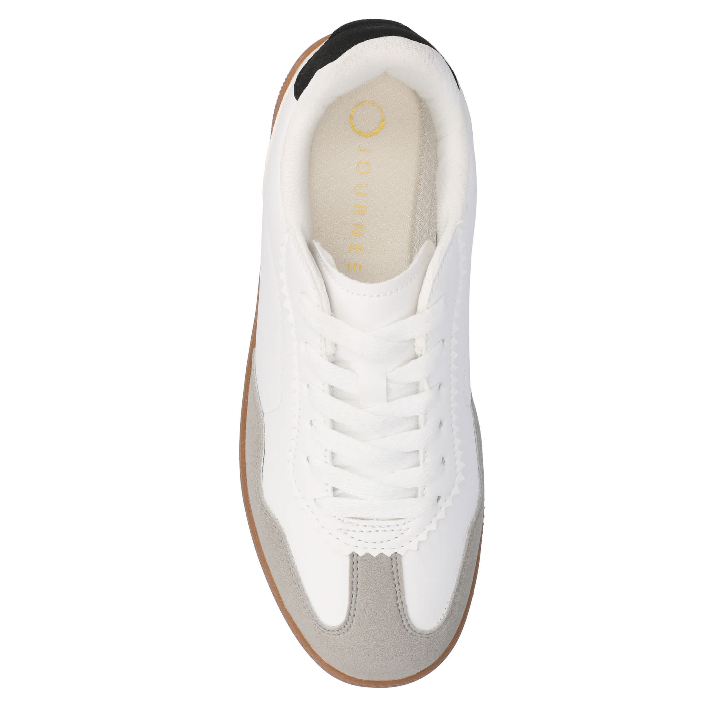 For running errands or going out with friends, the Lummie sneaker from Journee Collection has you covered. Featuring a T-toe styled faux leather upper with a contrast heel for an extra touch, this shoe is laid-back and versatile. The comfy footbed and durable outsole provide excellent support for all-day wear.