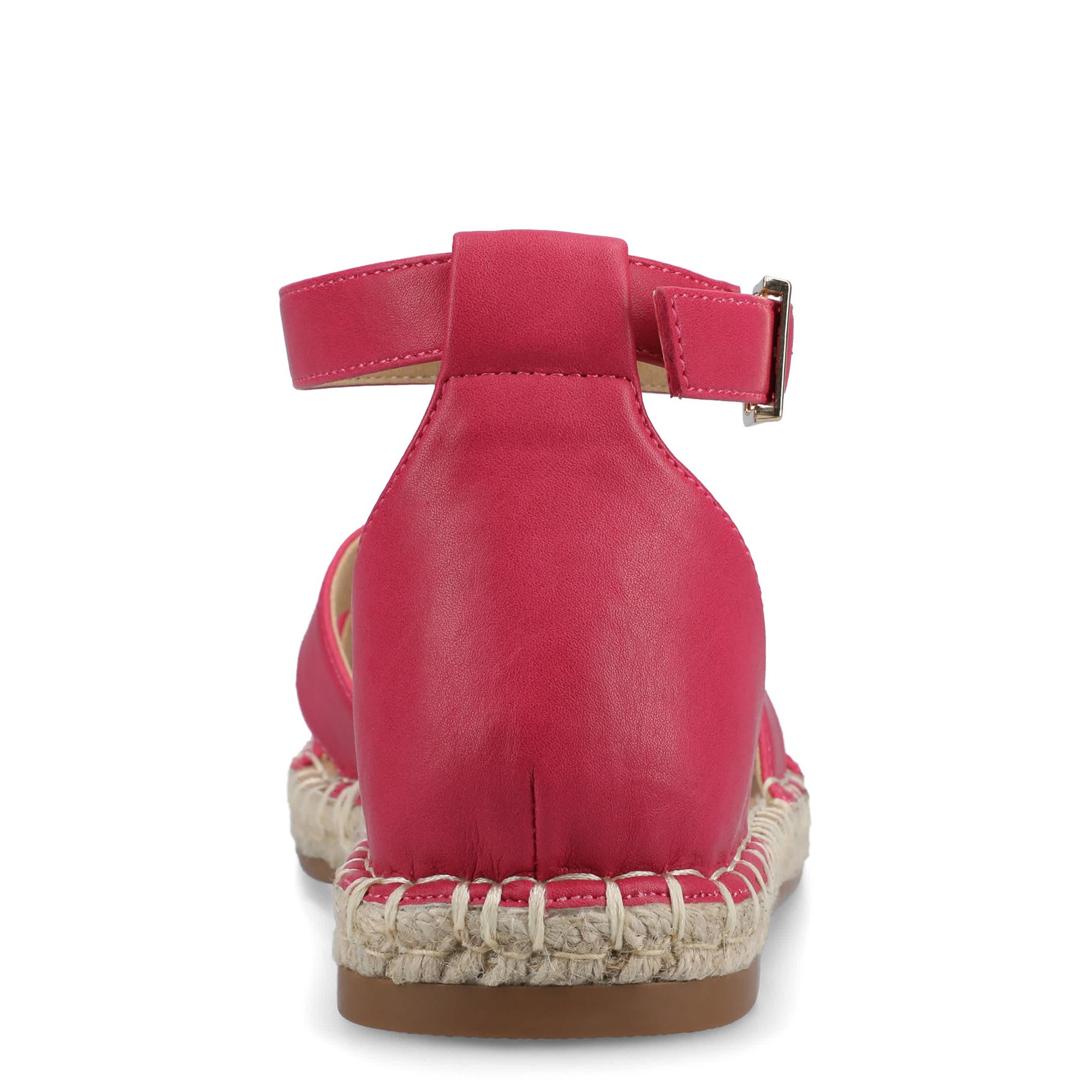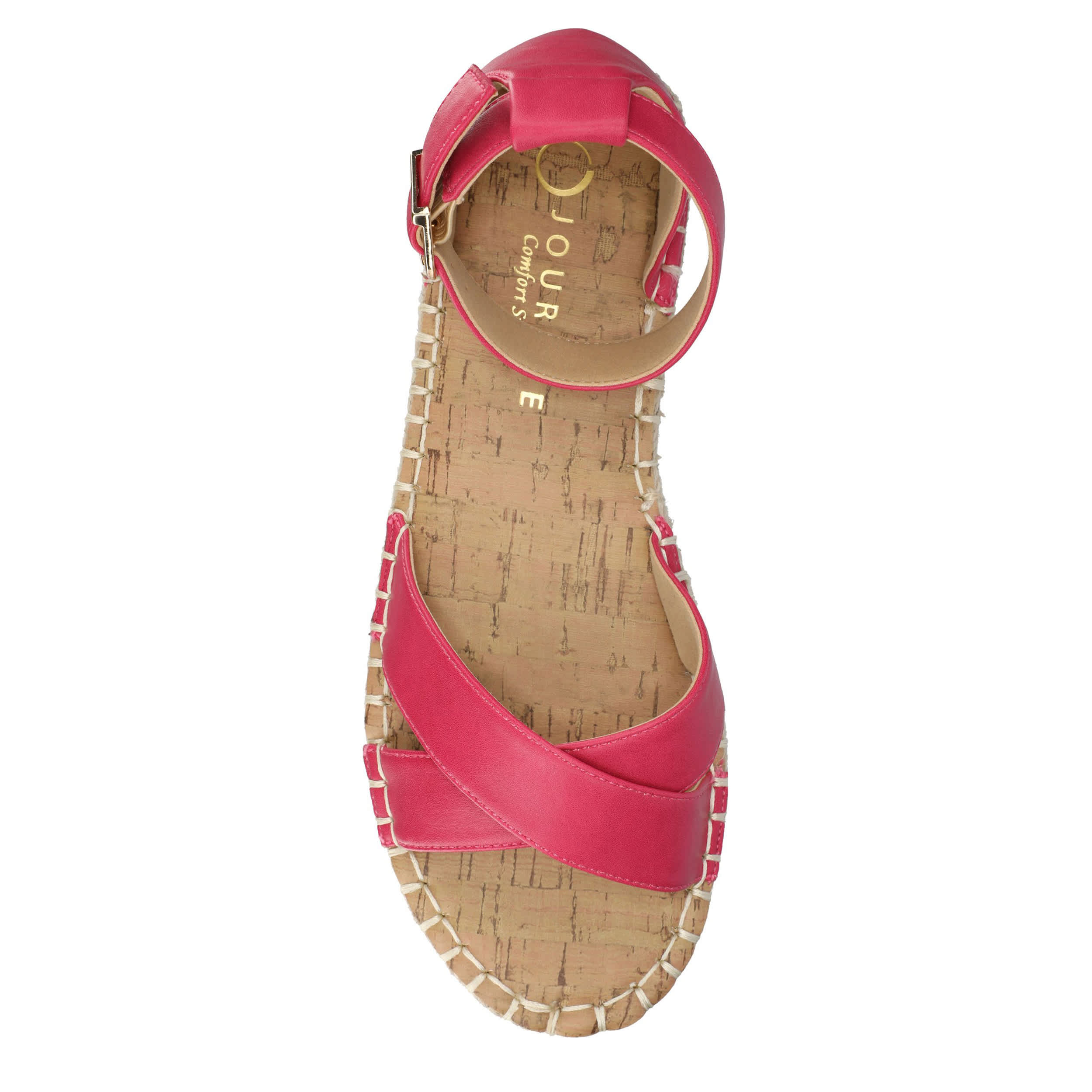 Sand, water and the Lyddia Wide women's sandal from Journee Collection are a match made in paradise. With a faux leather upper featuring crisscross straps, this horseshoe buckled shoe has your summer all sewn up. The faux cork insole is padded for comfort, while the espadrille-wrapped platform adds subtle lift.