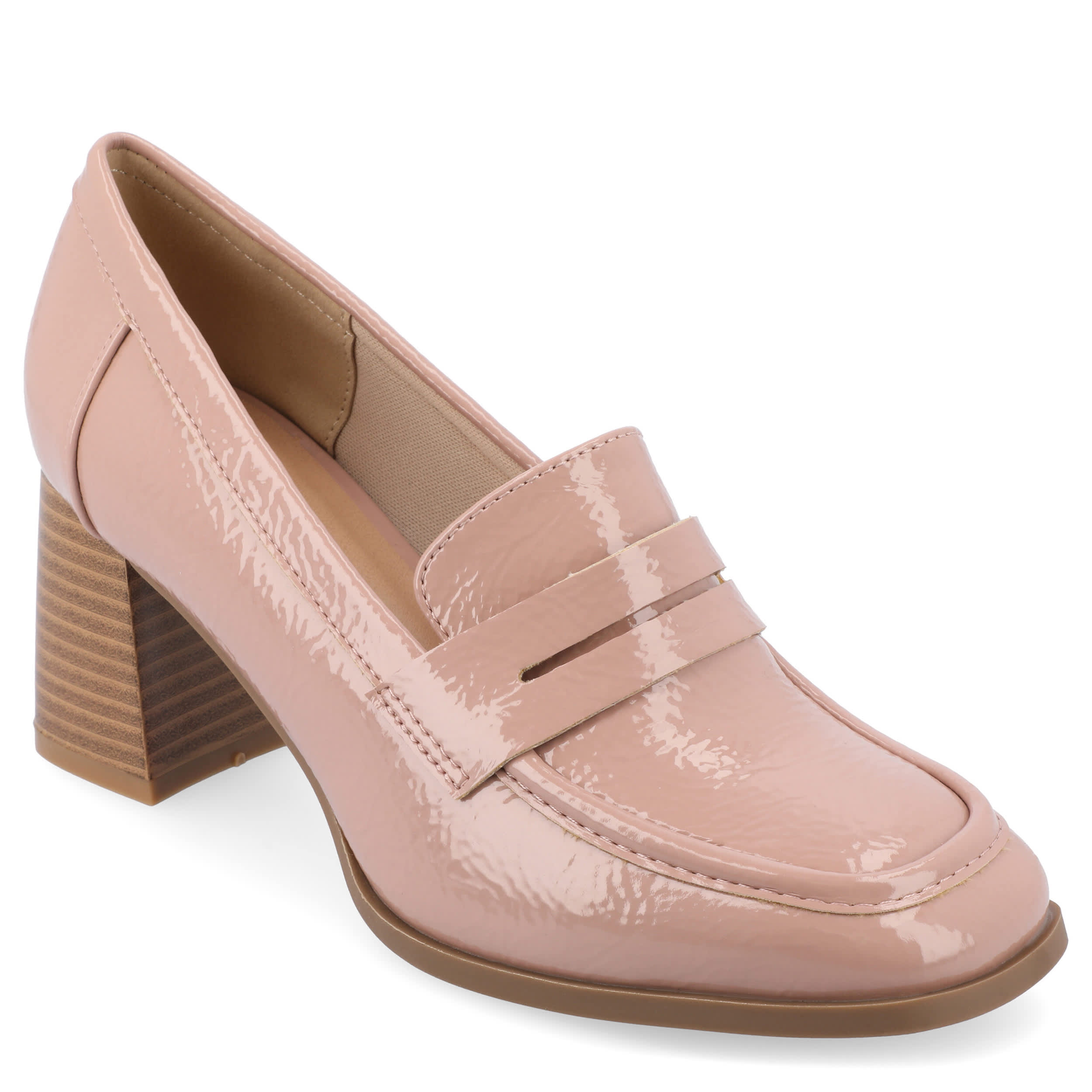 Polish up your work look in the Malleah women's pump from Journee Collection. Featuring a vegan patent leather upper with a sophisticated square toe, this heeled loafer is a bonafide style superstar. TheTru Comfort Foamâ„¢ insole cushions every step while that heel offers just enough lift.