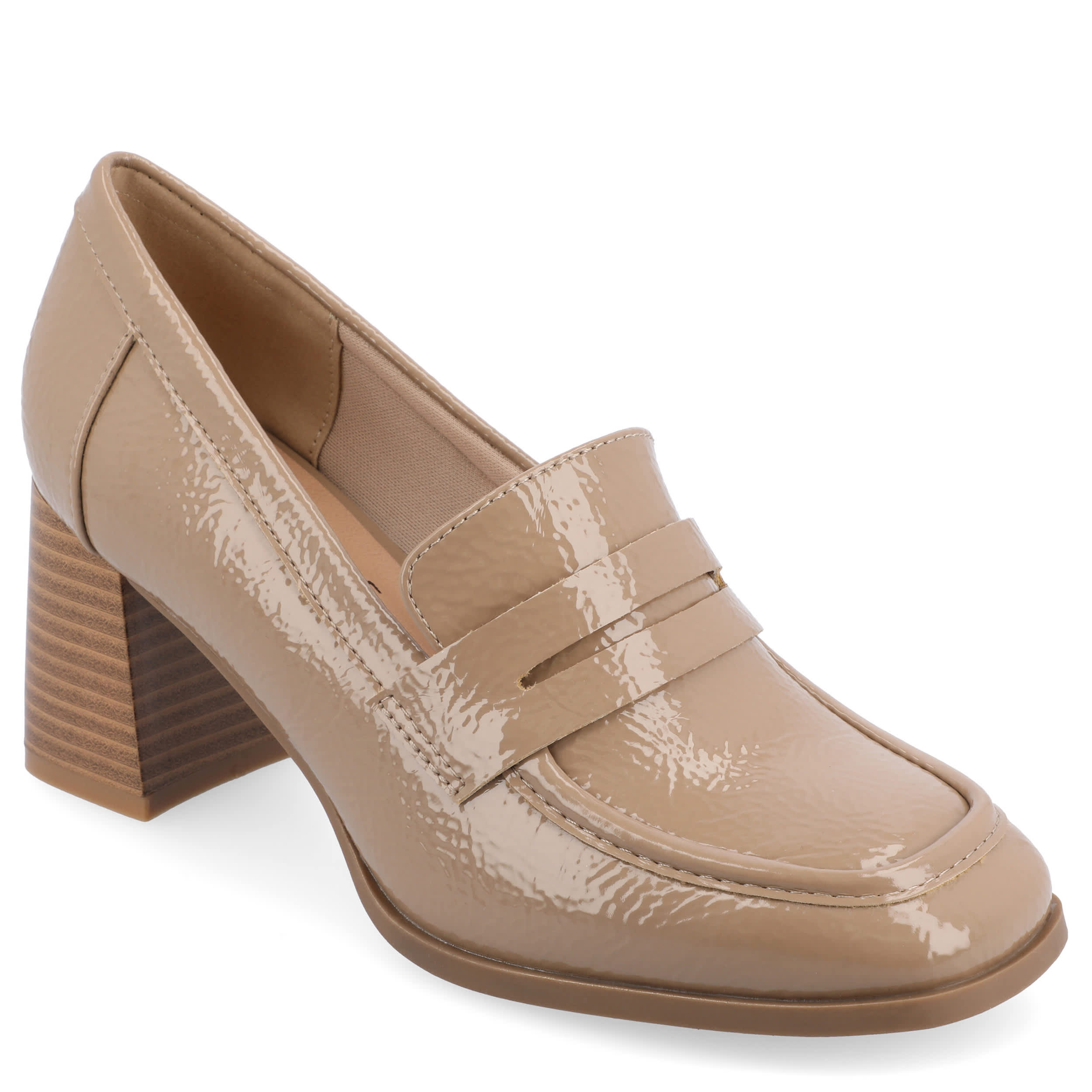Polish up your work look in the Malleah Wide women's pump from Journee Collection. Featuring a vegan patent leather upper with a sophisticated square toe, this heeled loafer is a bonafide style superstar. TheTru Comfort Foamâ„¢ insole cushions every step while that heel offers just enough lift.