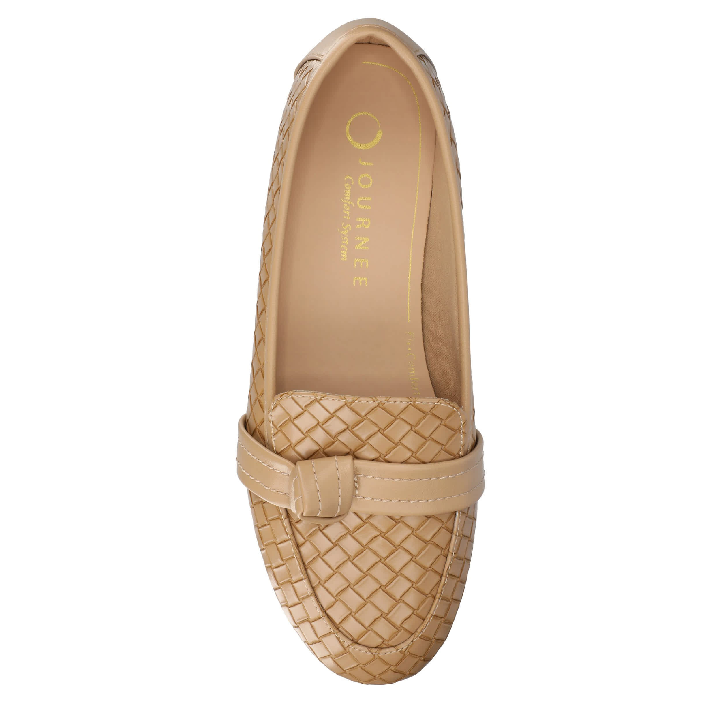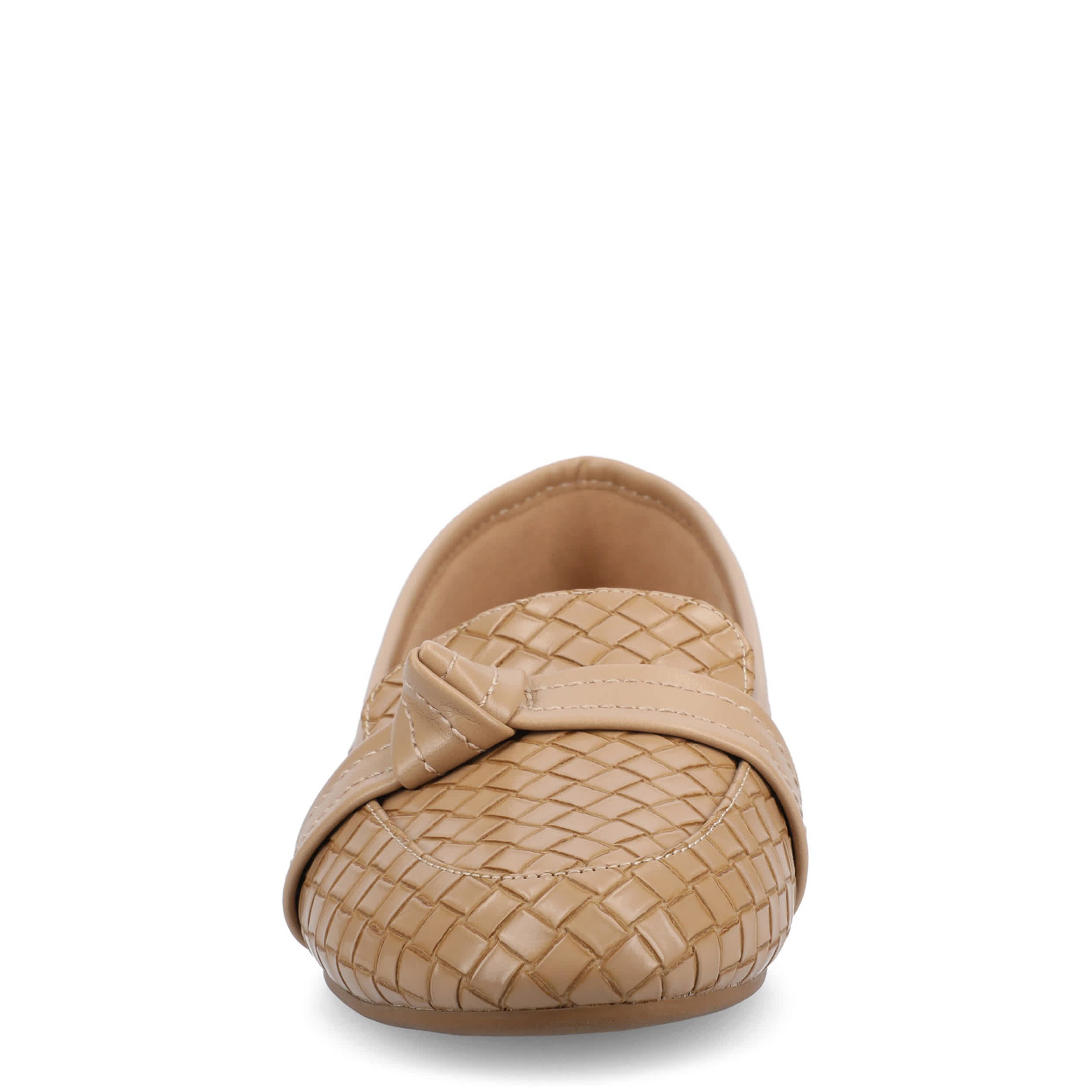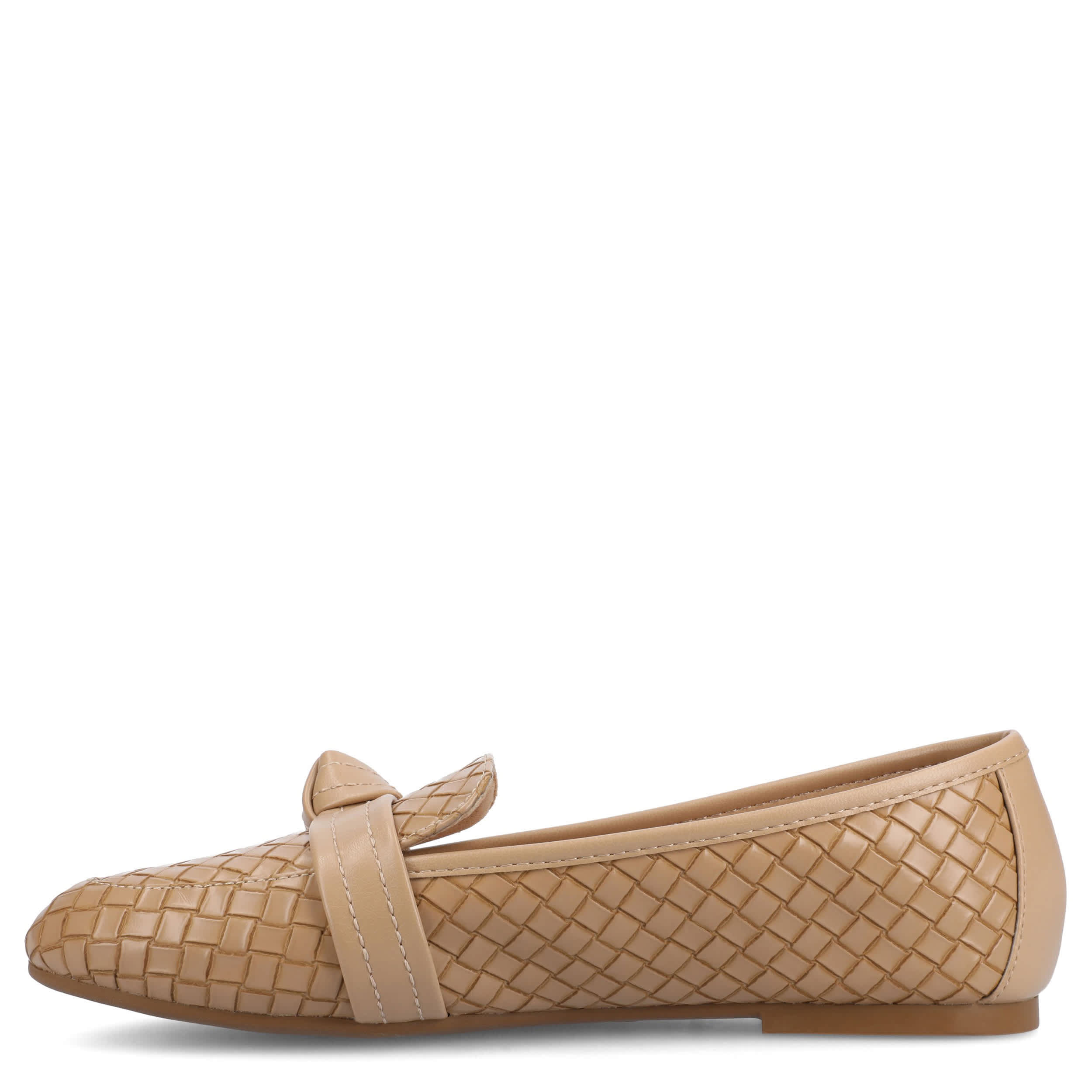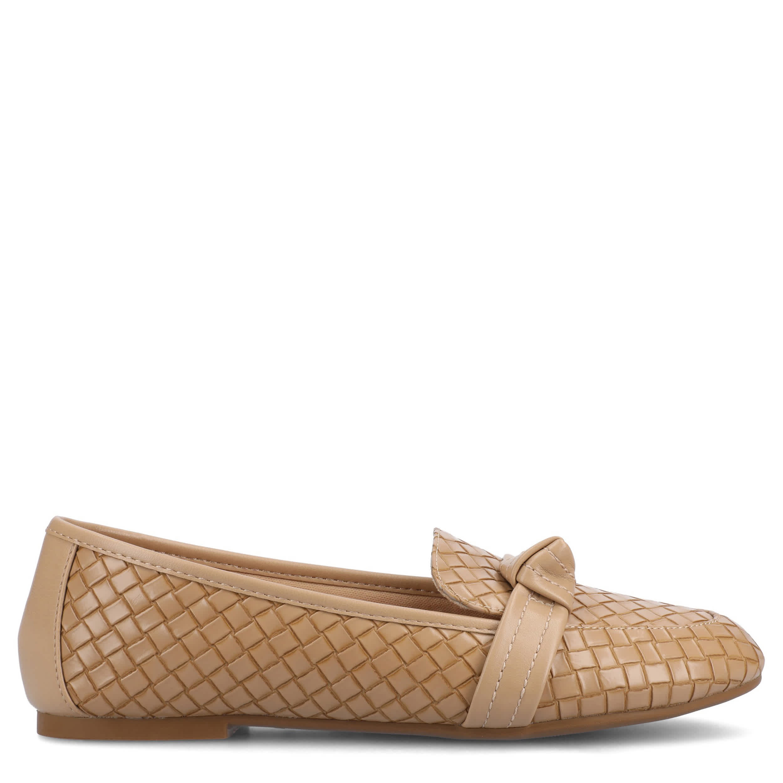 Chic is more than casual in the Marci loafer from Journee Collection. Featuring a woven, embossed pattern, this flat is easy to style. The overlay tie accent adds a hint of sophistication that makes this a hit for all occasions.