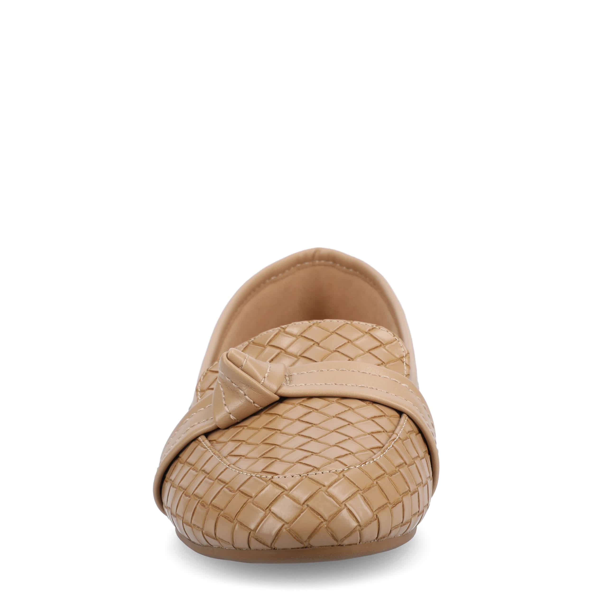 Chic is more than casual in the Marci Wide flat from Journee Collection. Featuring a woven, embossed pattern, this loafer is easy to style. The overlay tie accent adds a hint of sophistication that makes this a hit for all occasions.