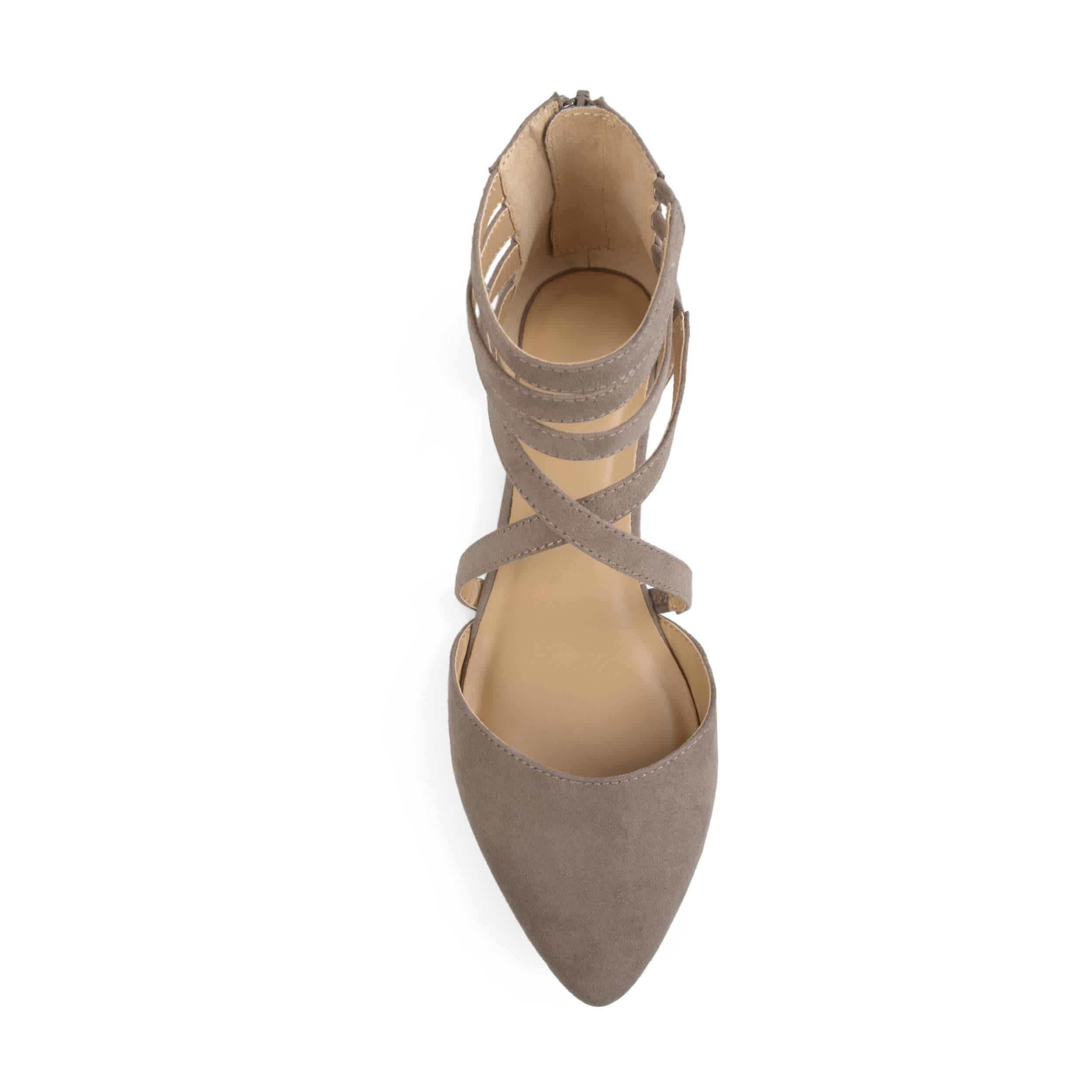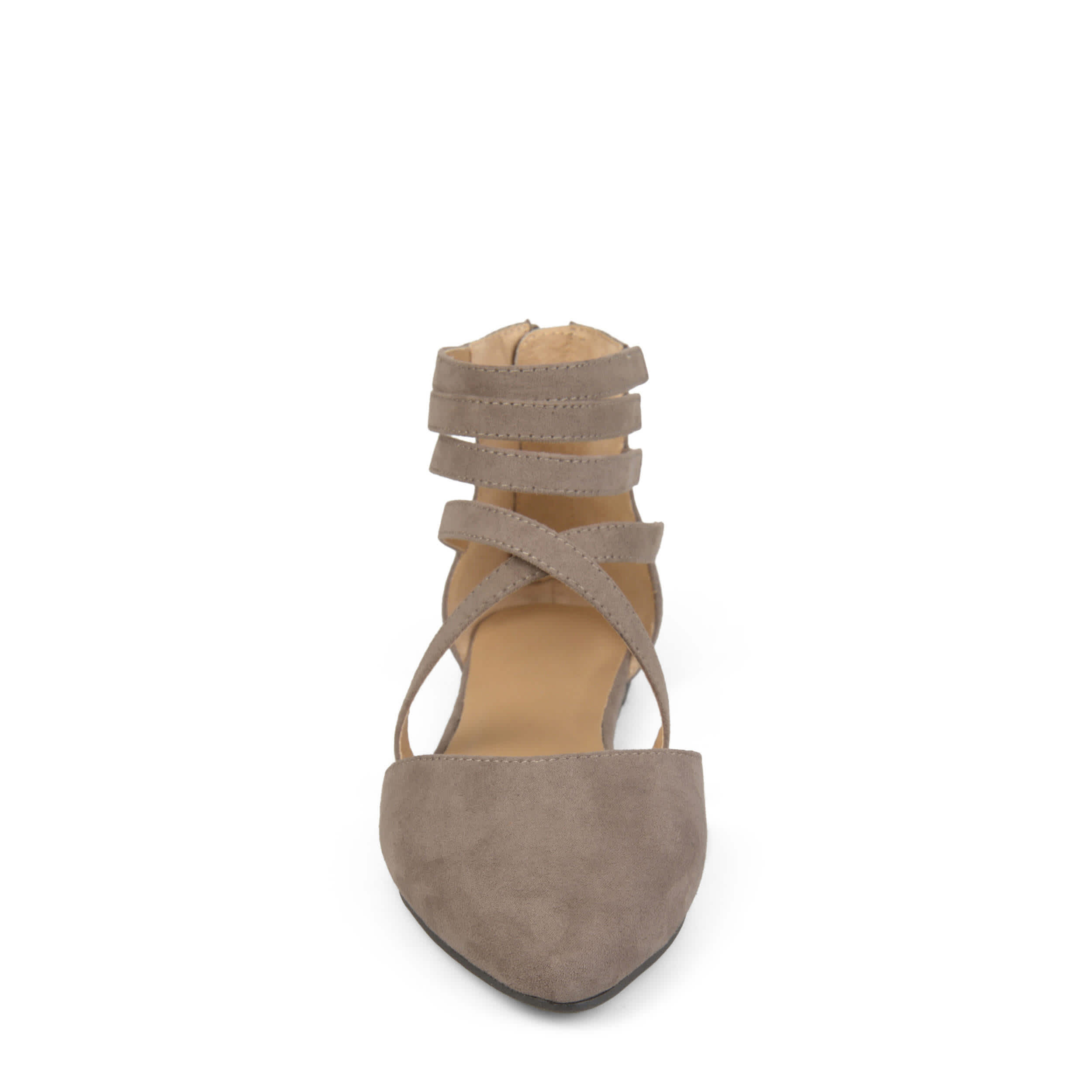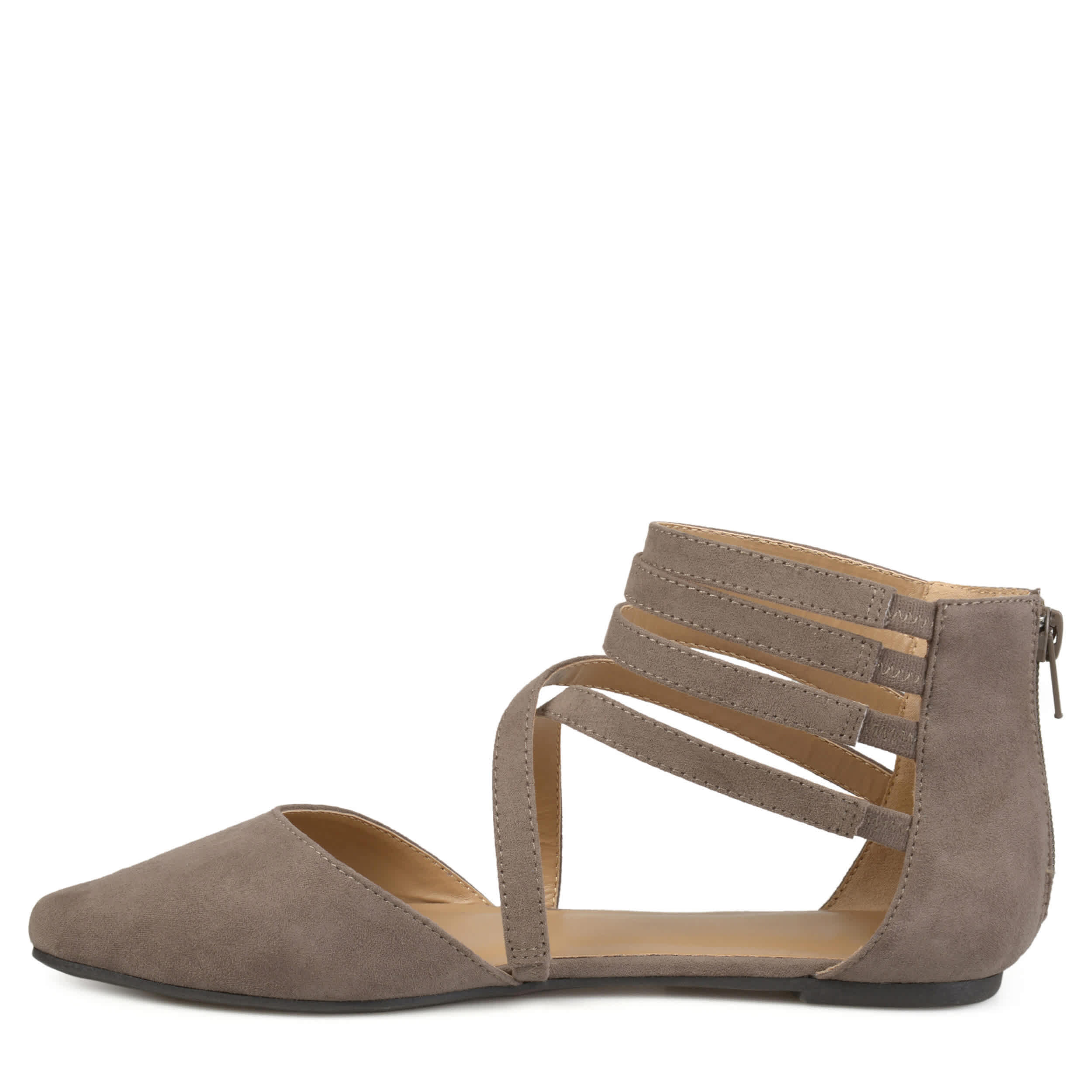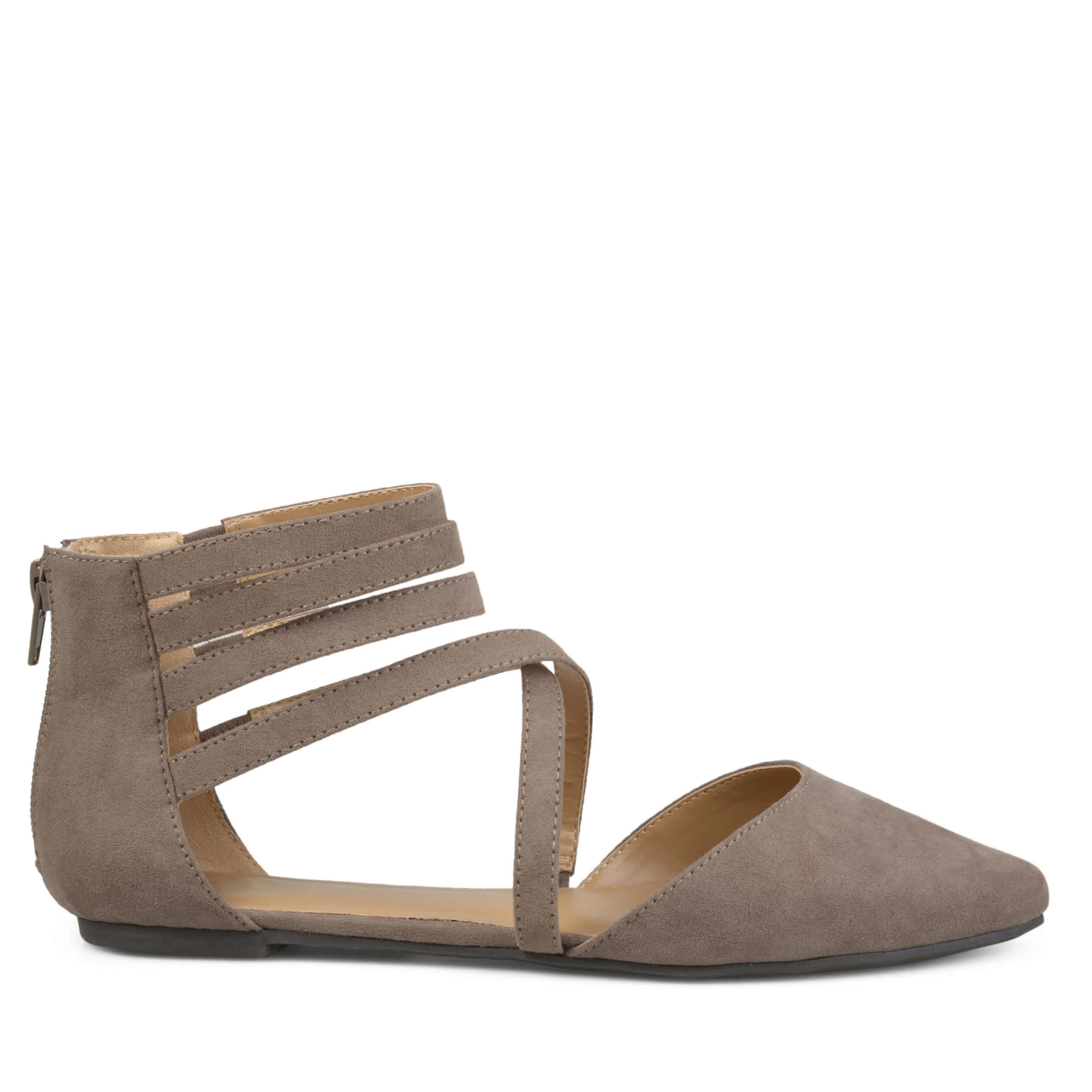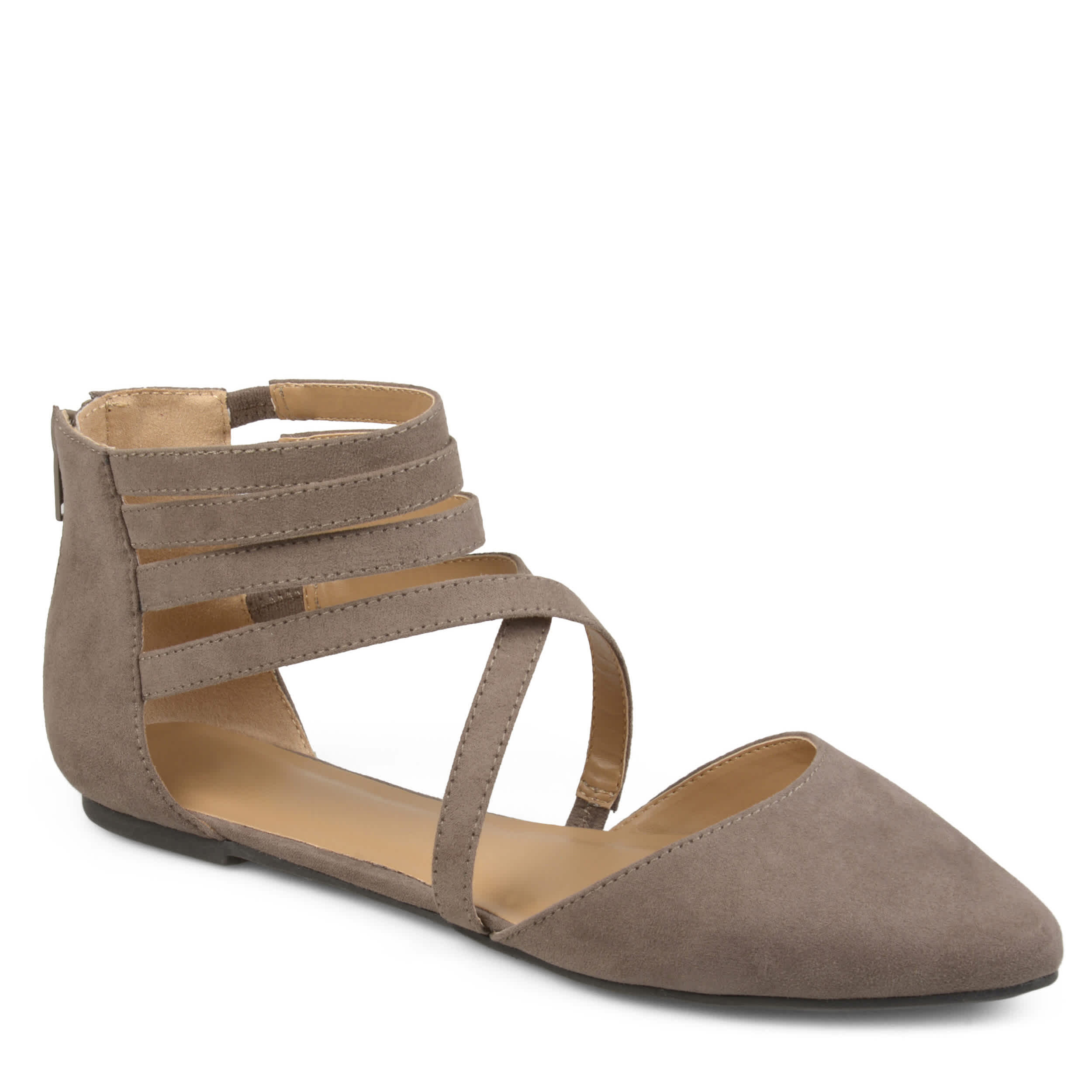 Style your day in the Journee Collection Marlee women's flat. Featuring a back zipper for easy access and elastic inserts that make for a snug fit across your foot, these flats are a great addition to the wardrobe. The crisscross, strappy design gives this flat a modern style to give your outfit a pop.