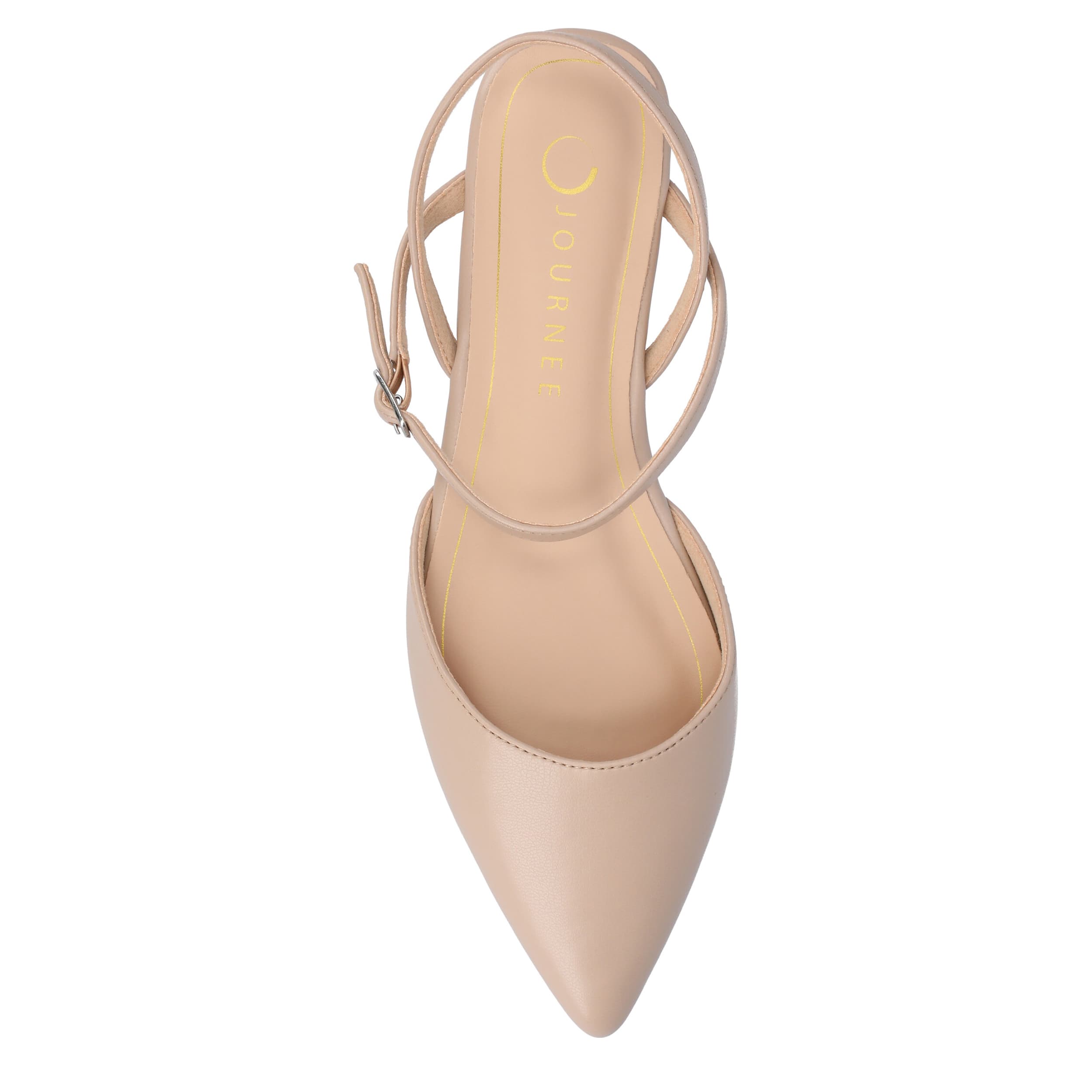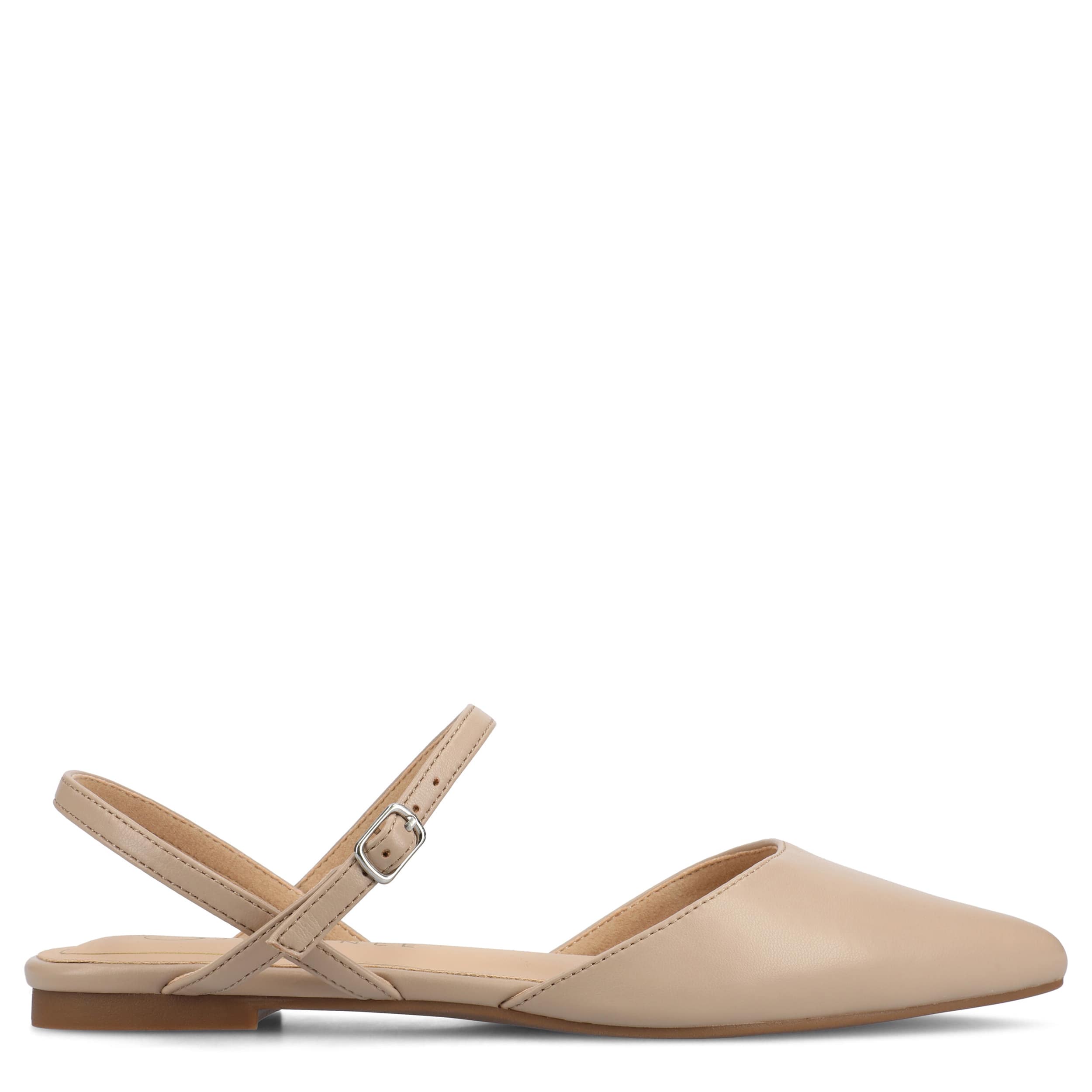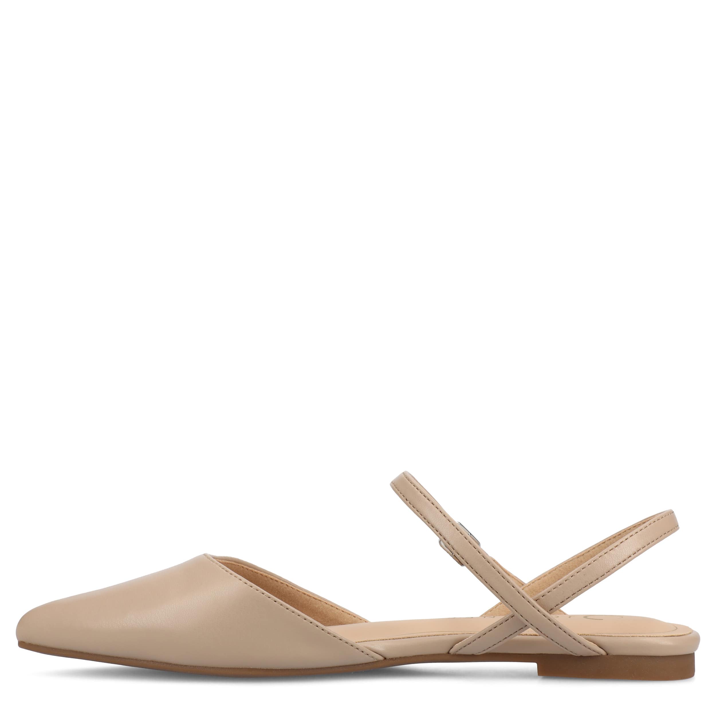 Get an early start on spring with the Journee Collection Martine women's flat. Featuring a vegan leather upper with a pointed toe for a sleek finish, these slingback flats are a well-crafted wardrobe essential. The Tru Comfort Foamâ„¢ footbed cushions every step you take.