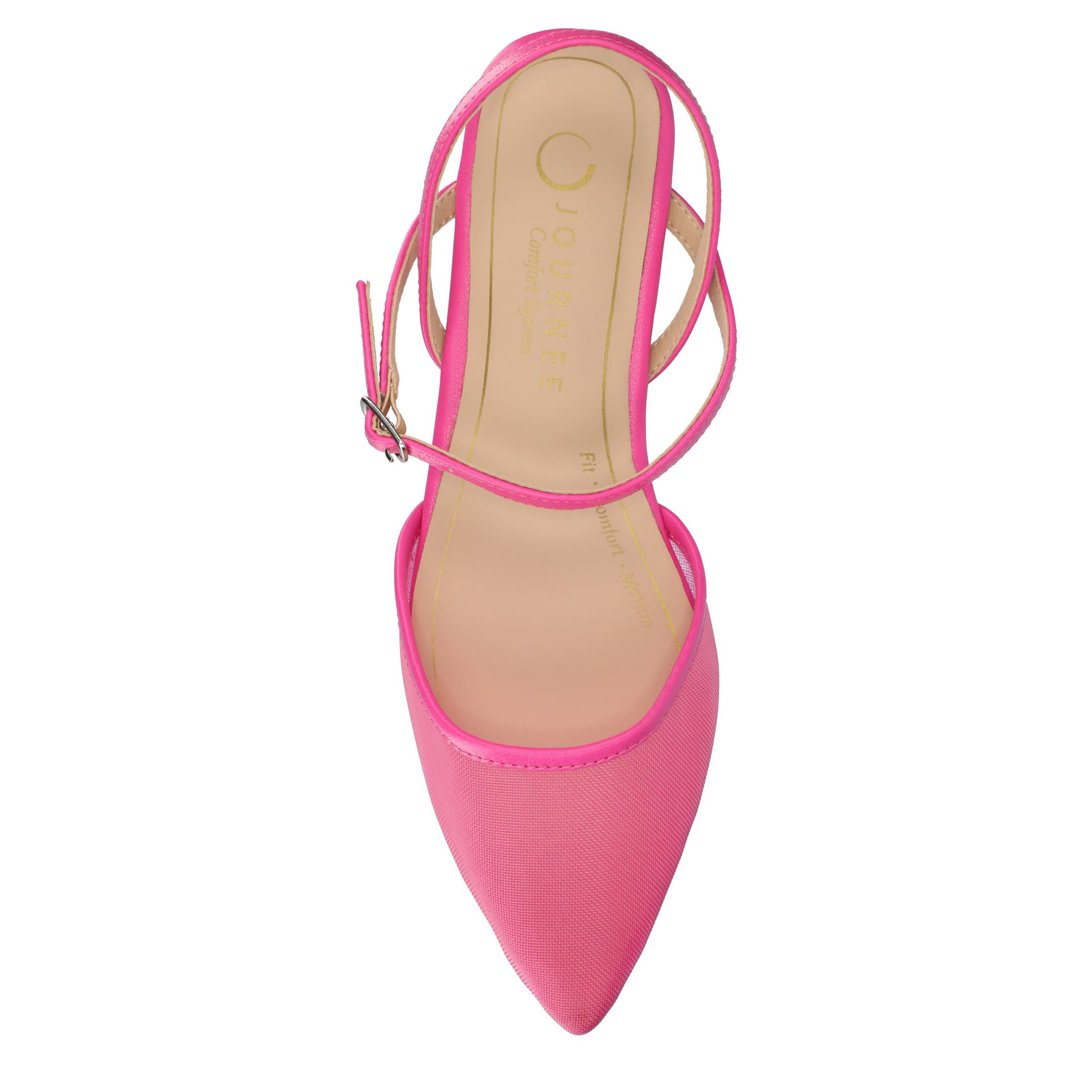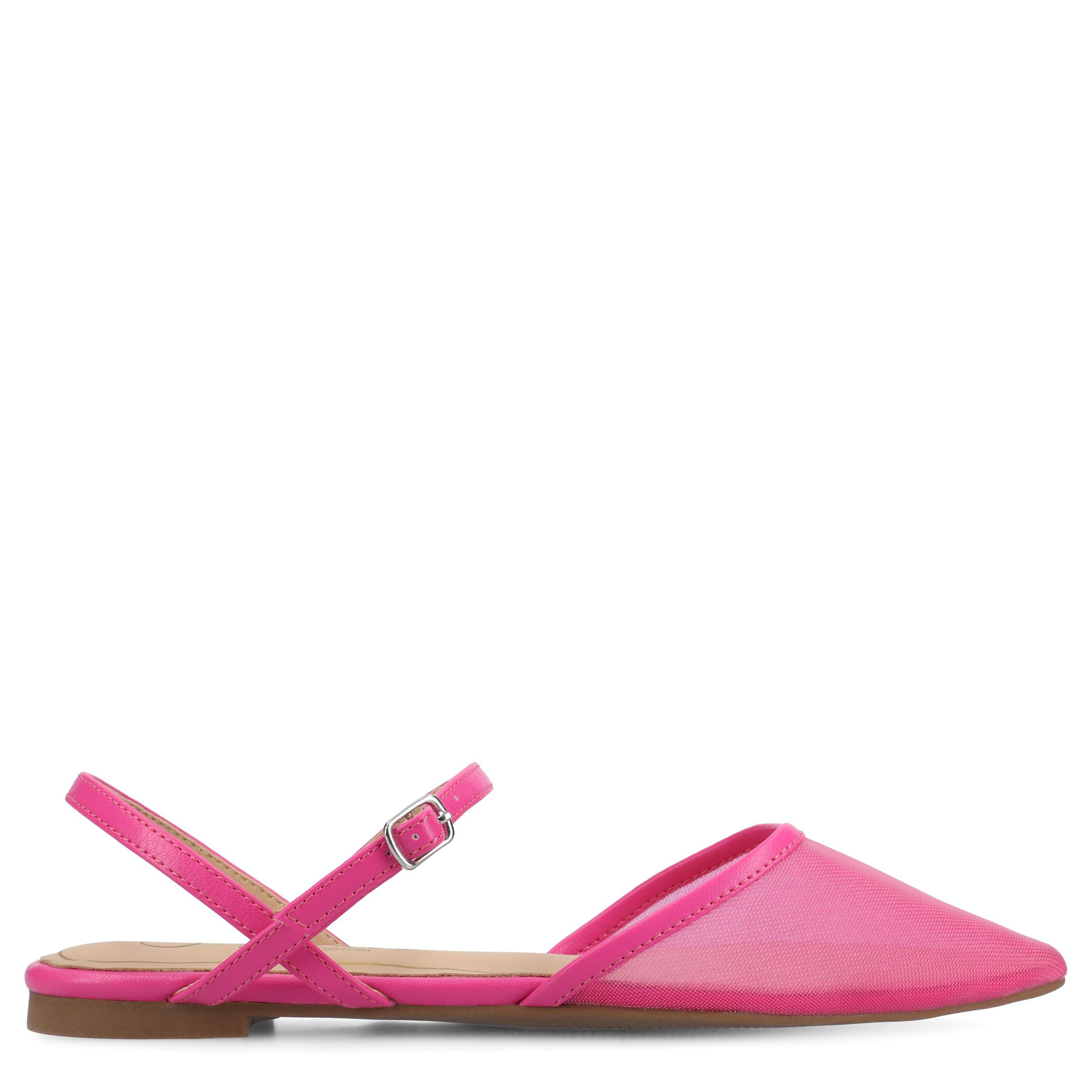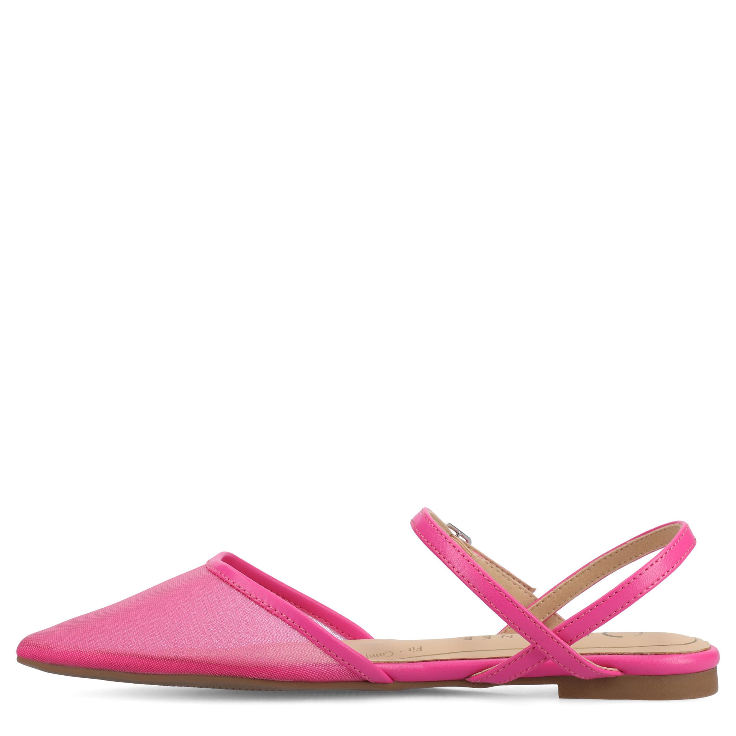 Get an early start on spring with the Journee Collection Martine women's flat. Featuring a textile & vegan leather upper with a pointed toe for a sleek finish, these buckle ankle strap shoes are a well-crafted wardrobe essential. The Tru Comfort Foamâ„¢ footbed cushions every step you take.