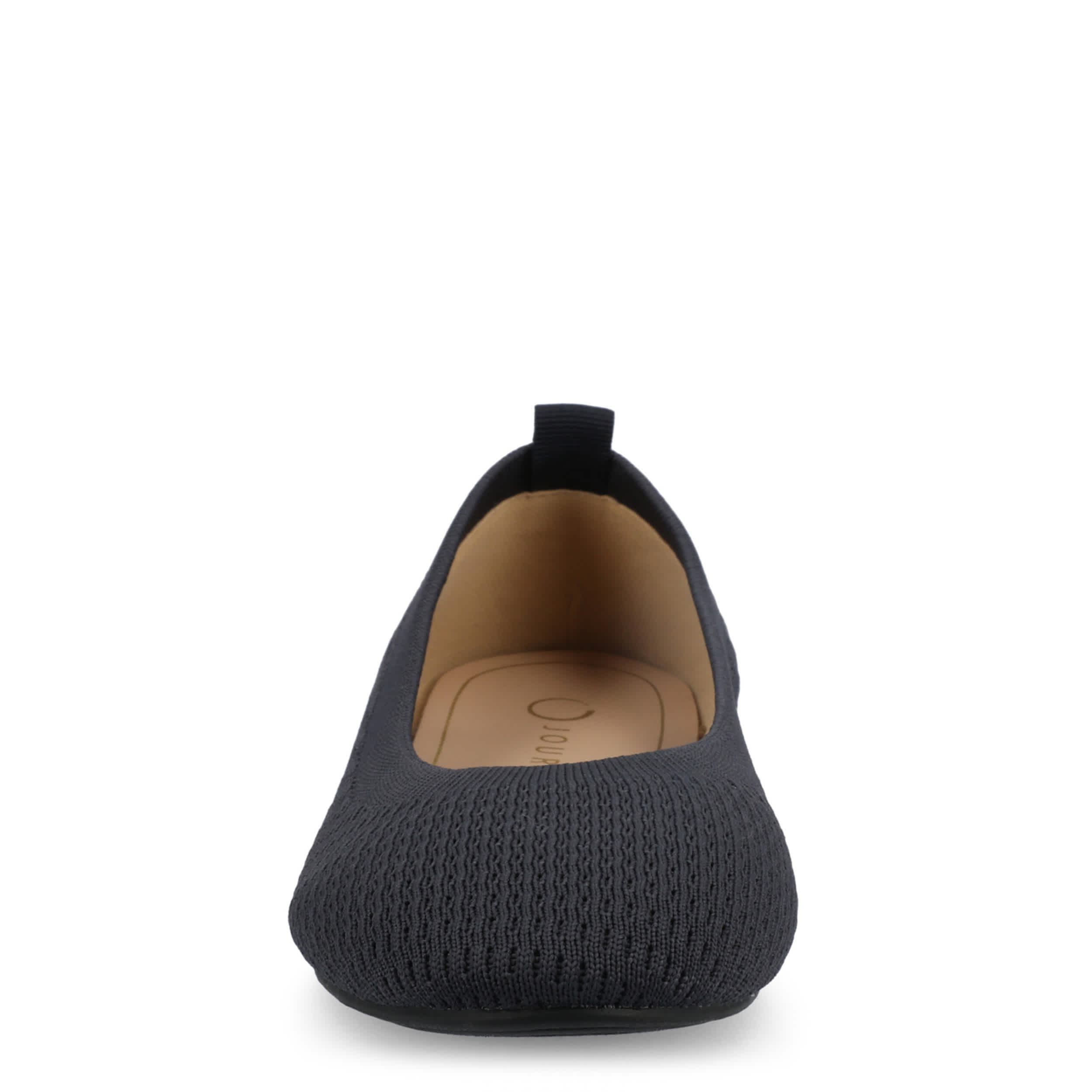 Simply comfy, the Maryann flat from Journee Collection is a basic essential. With a soft knit fabric upper, this shoe has a round toe for room. The insole cushions your foot, while the synthetic outsole offers durability for all your daily moves.