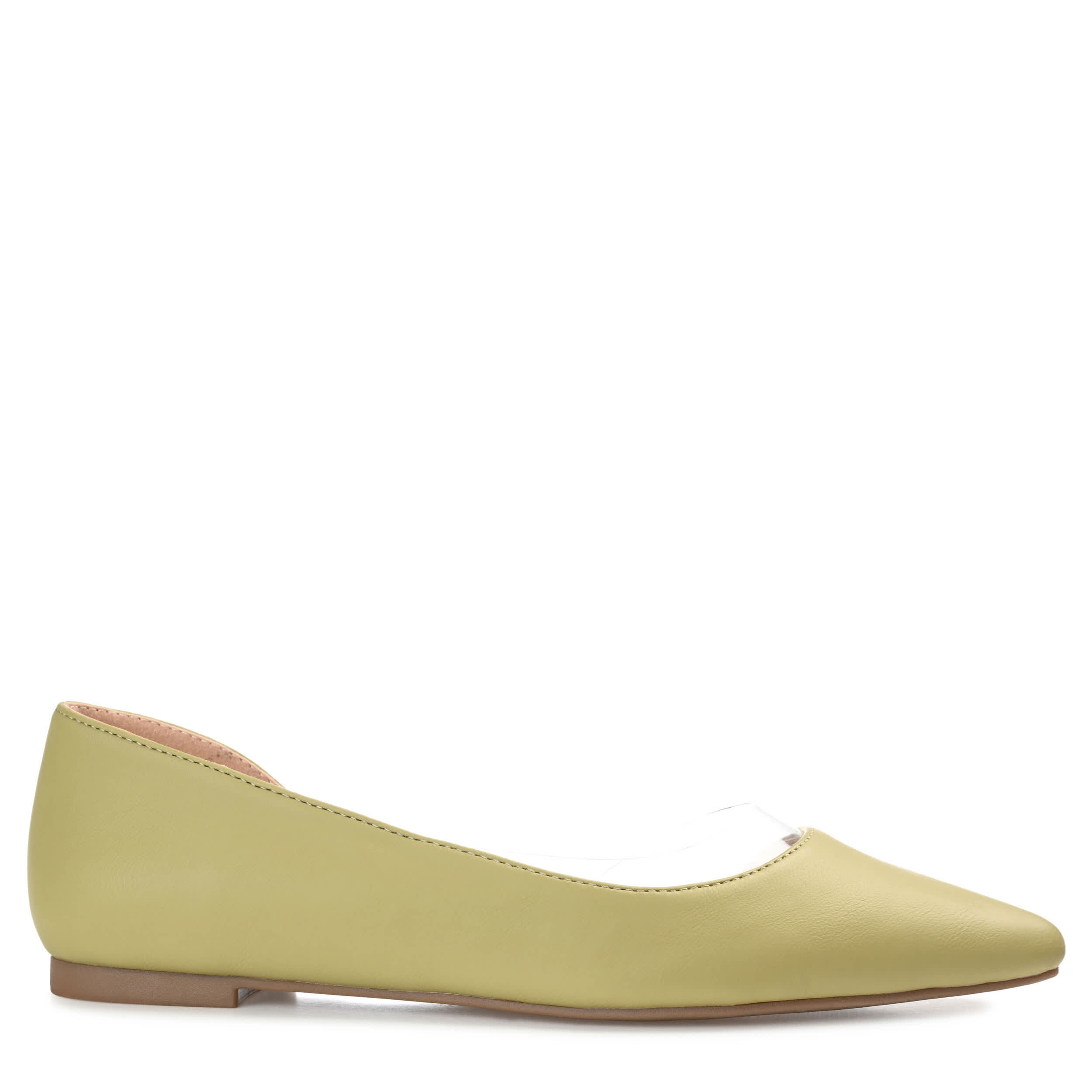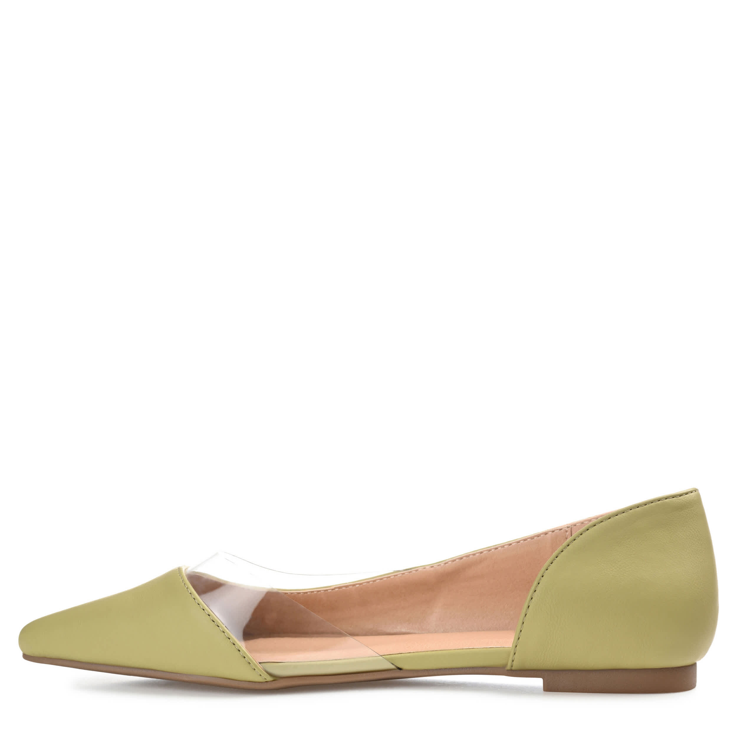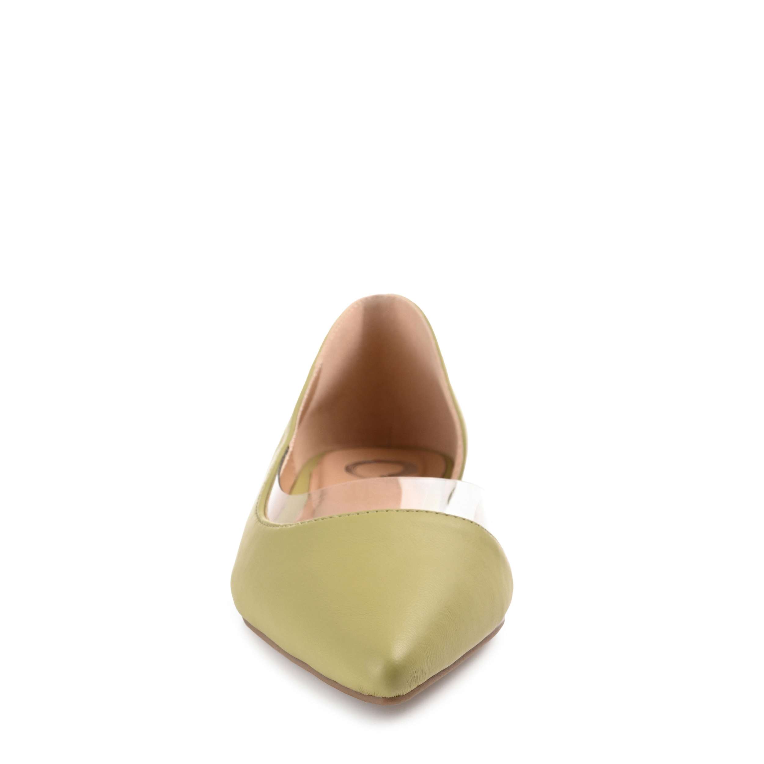 Make a statement in the Mikki women's flat from Journee Collection. With a smooth vegan leather upper featuring a clear vinyl trim detail, this classic flat, with its flattering pointy toe and½" block heel, lends a bold modern-chic touch to your wardrobe. A padded footbed offers all-day support and cushioning, while the synthetic outsole provides excellent grip.