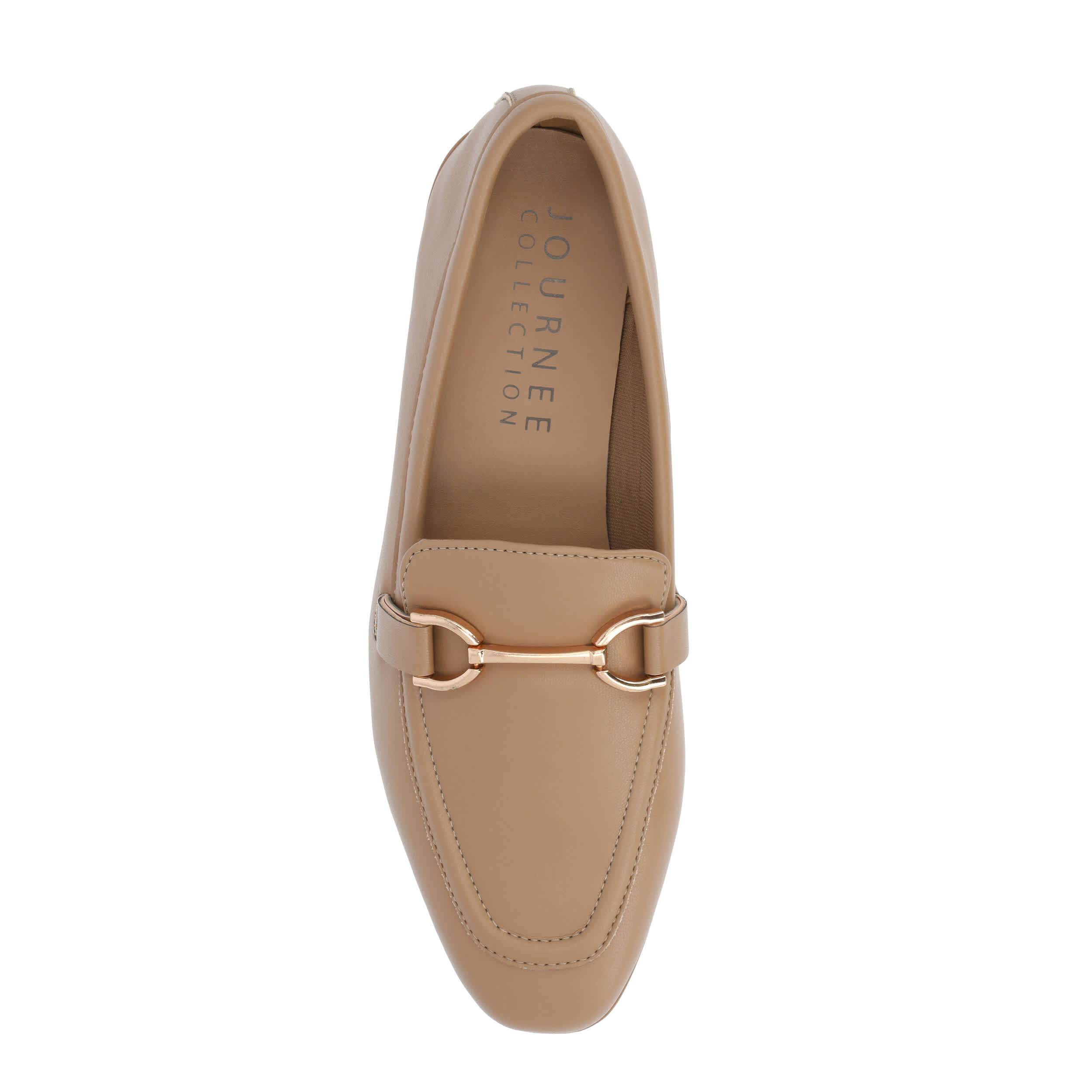 Stay on trend with the Mizza women's loafer from Journee Collection. With a faux leather upper featuring a sleek hardware detail and a square toe design, this loafer is perfect for a casual outing with friends or a low-key date night. A Tru Comfort Foamâ„¢ footbed cushions every step, while durable outsole keeps you grounded in style.