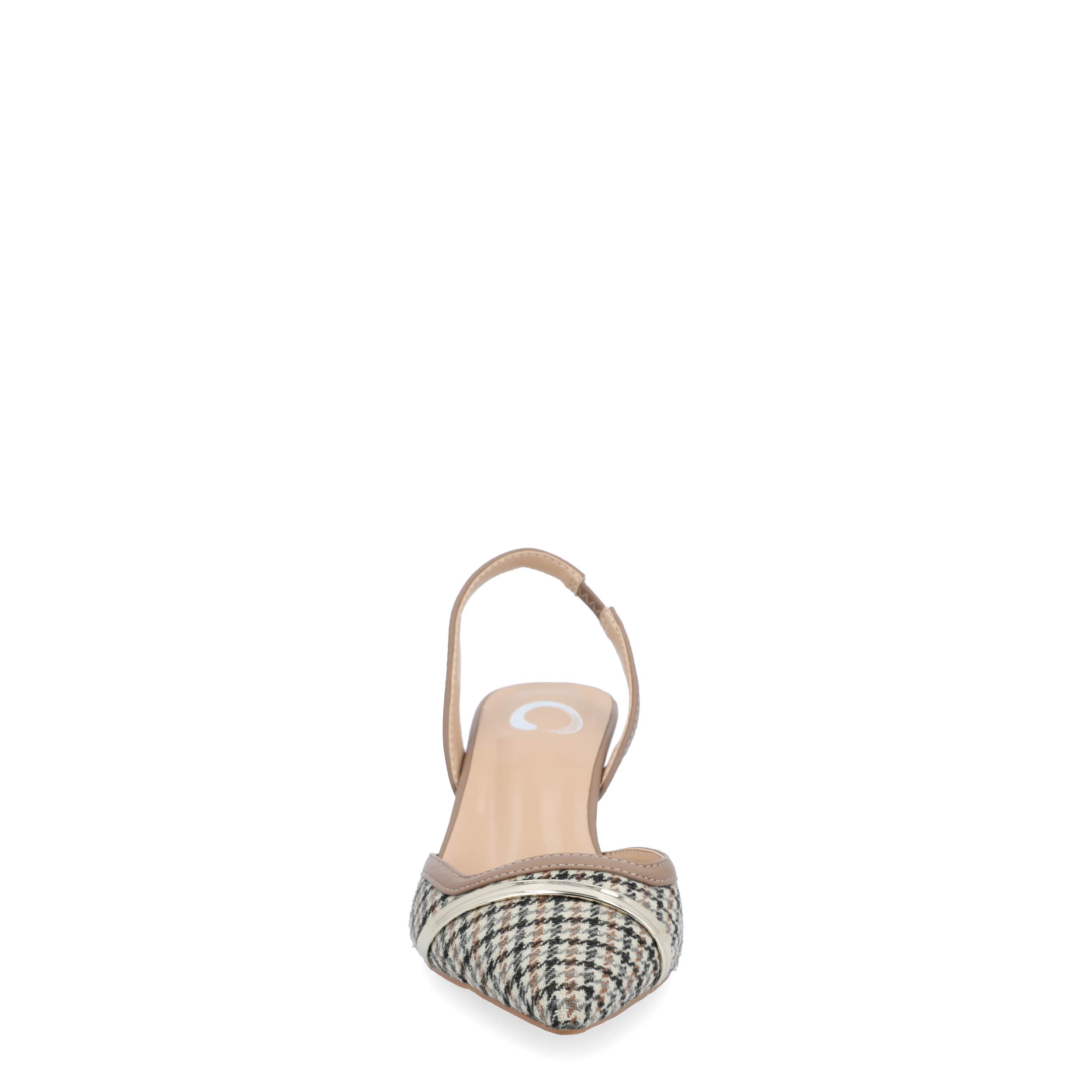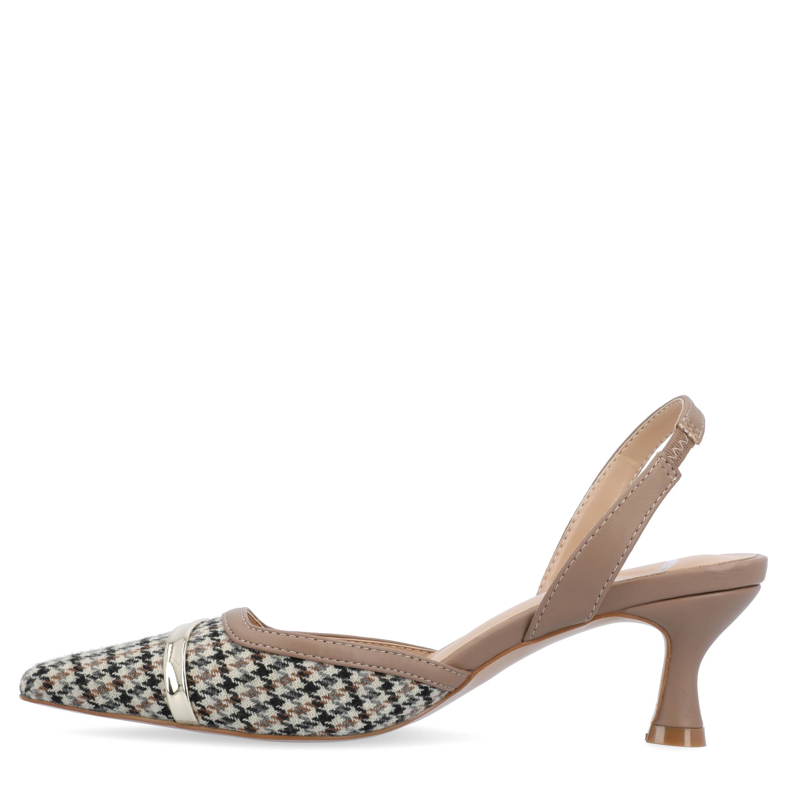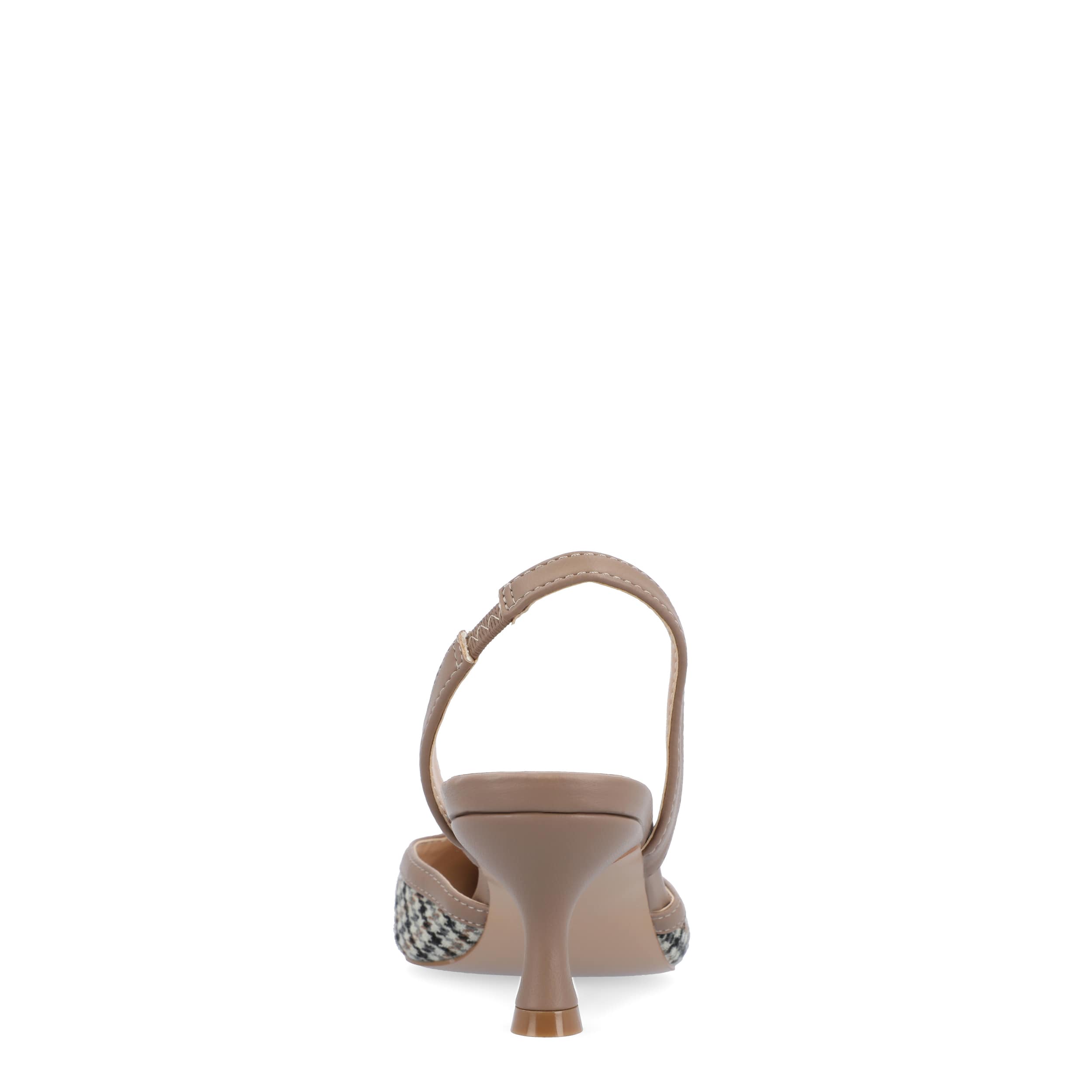 Chic style can be versatile with the Journee Collection Nellia women's pump. Featuring a fabric or faux leather upper and pointed toe, these slingbacks are dressy without trying too hard. The footbed cushions your steps, while the kitten heel offers just enough lift.