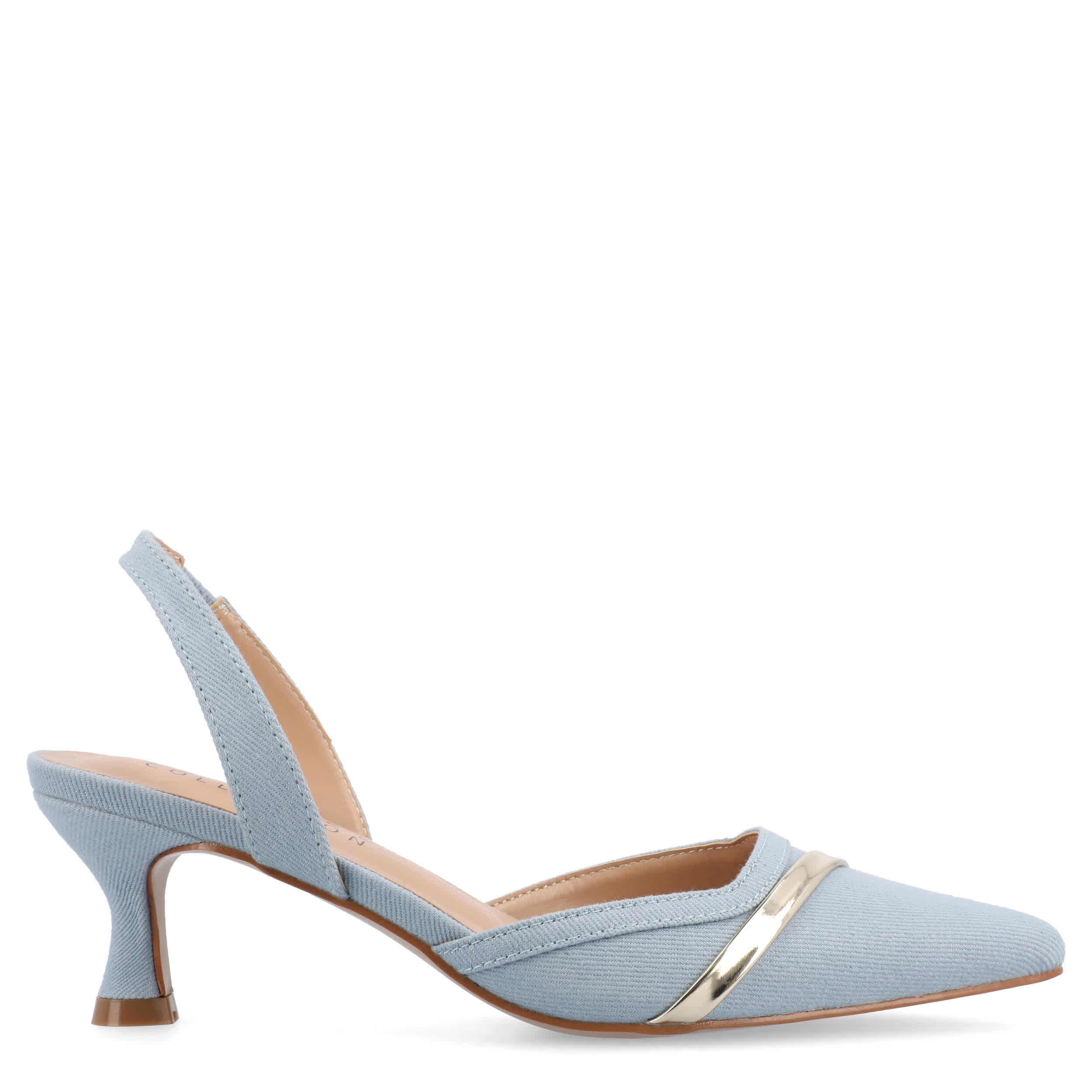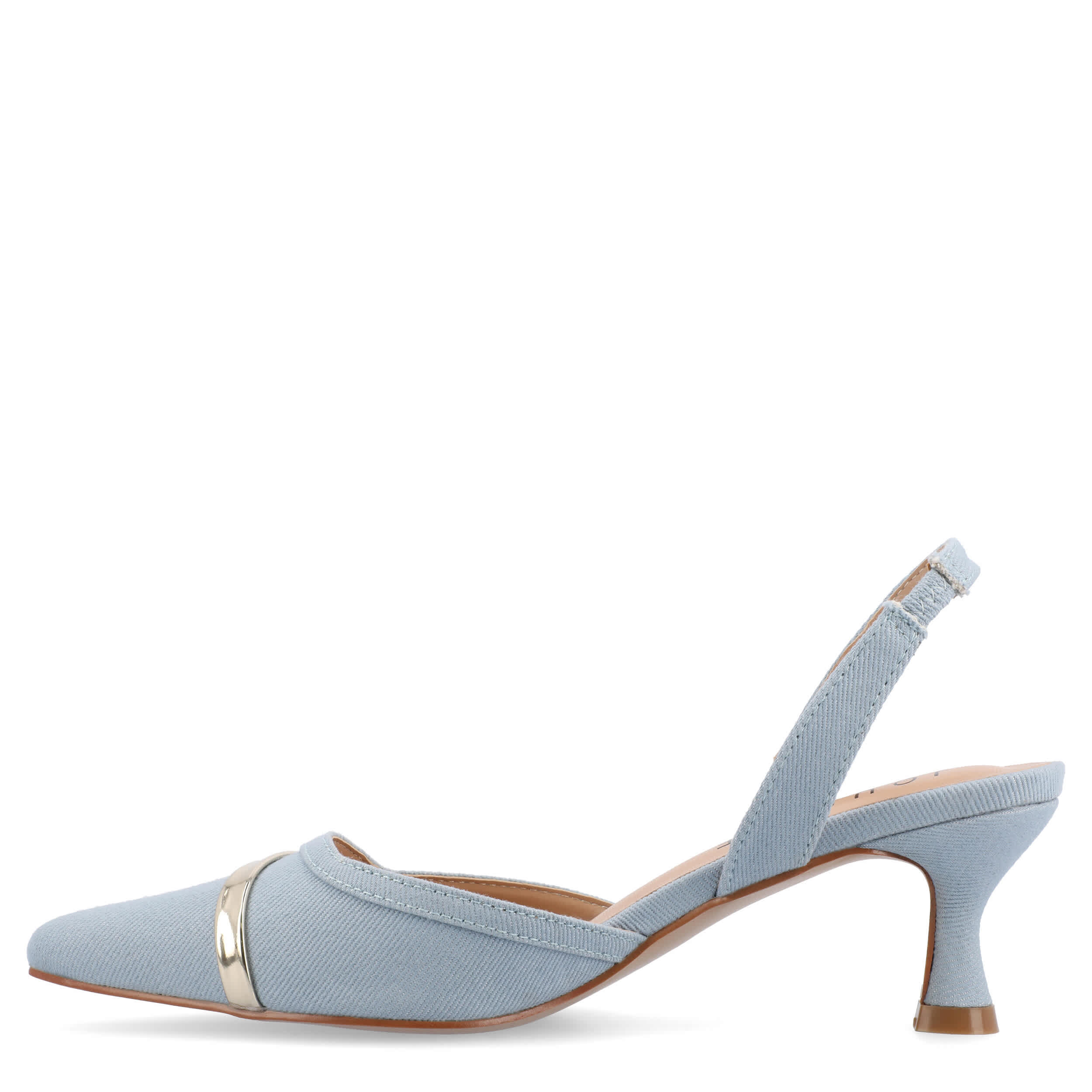 Chic style can be versatile with the Journee Collection Nellia Wide women's pump. Featuring a fabric or faux leather upper and pointed toe, these slingbacks are dressy without trying too hard. The footbed cushions your steps, while the kitten heel offers just enough lift.