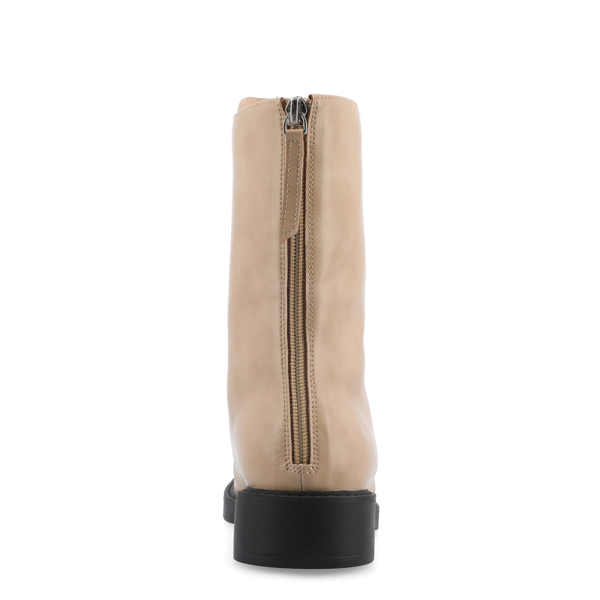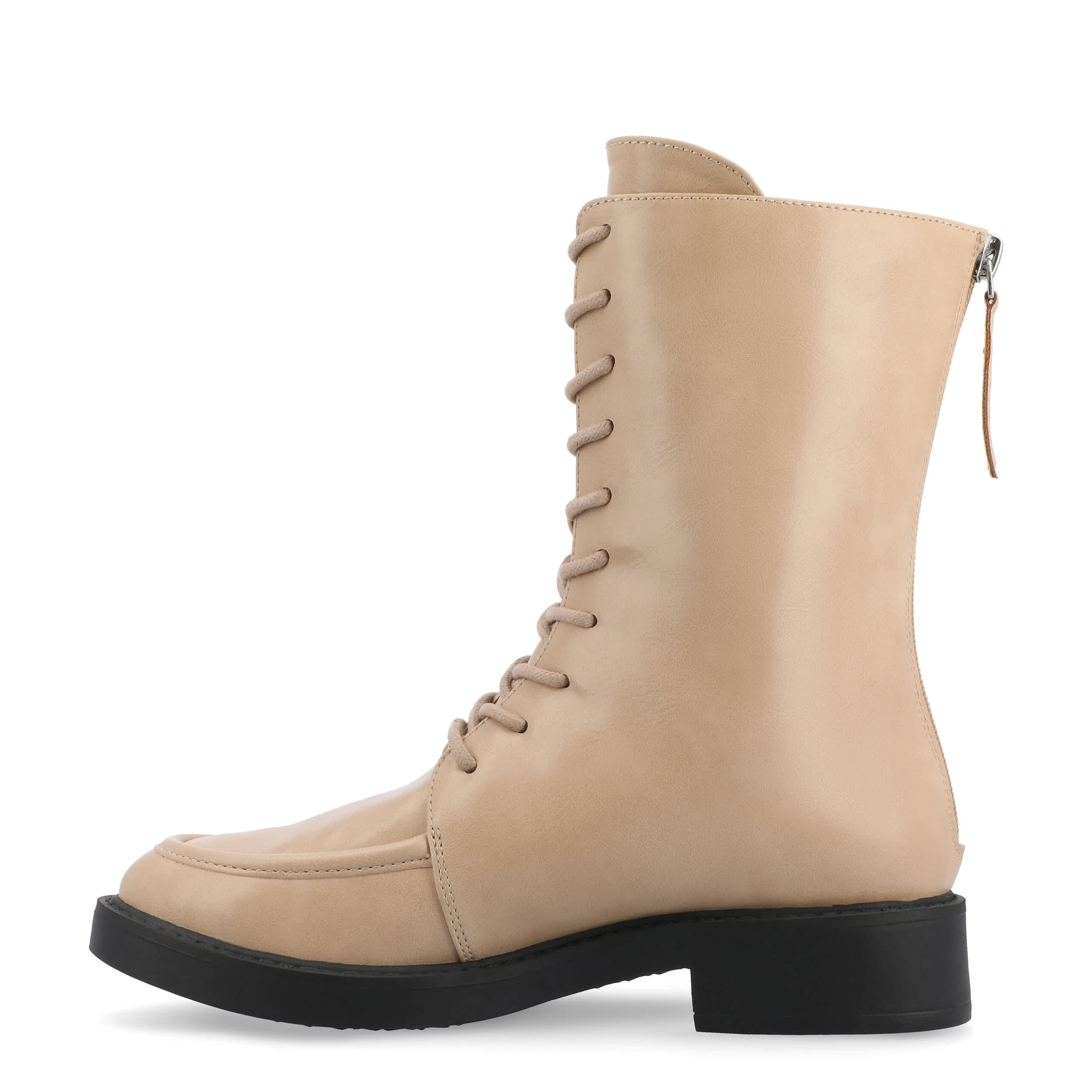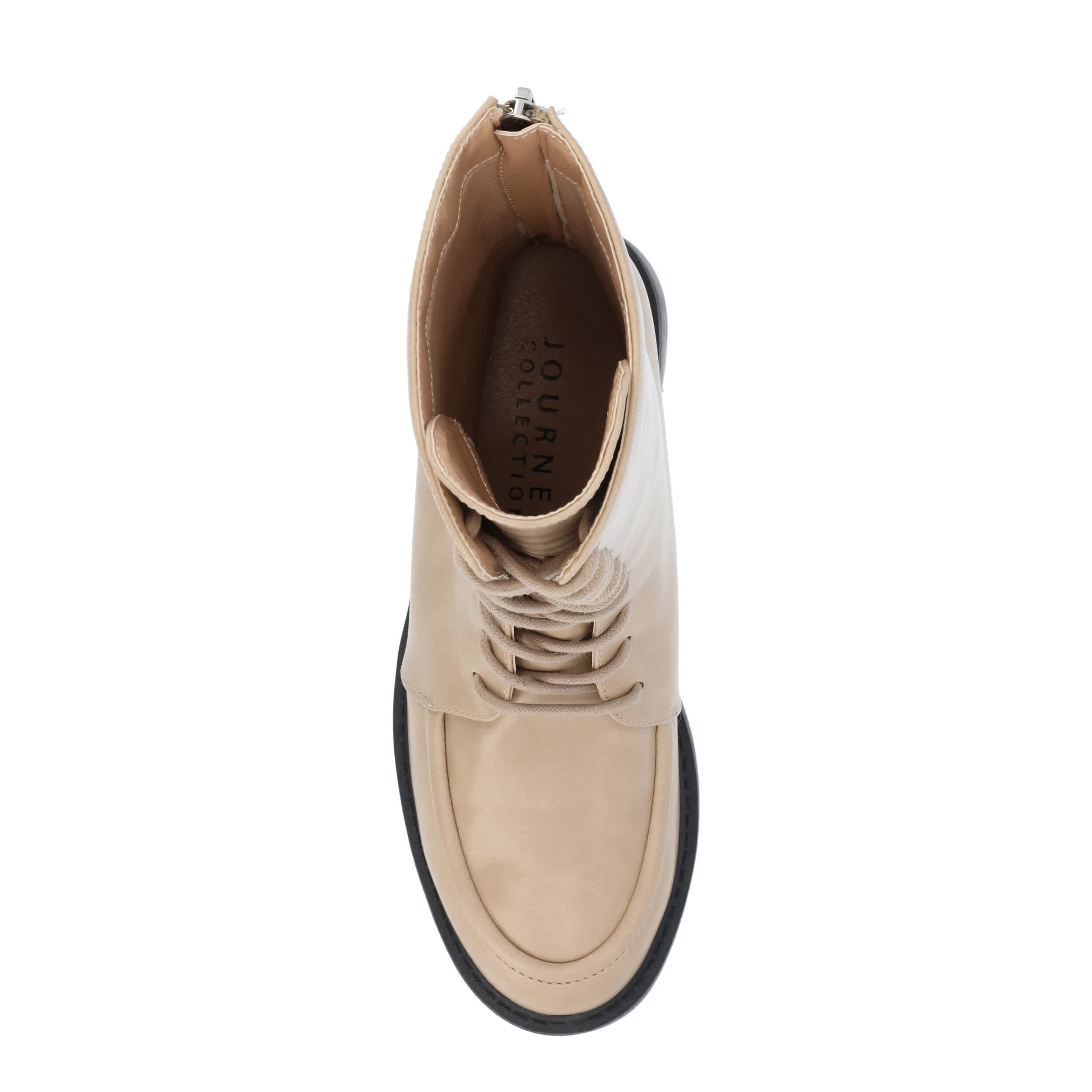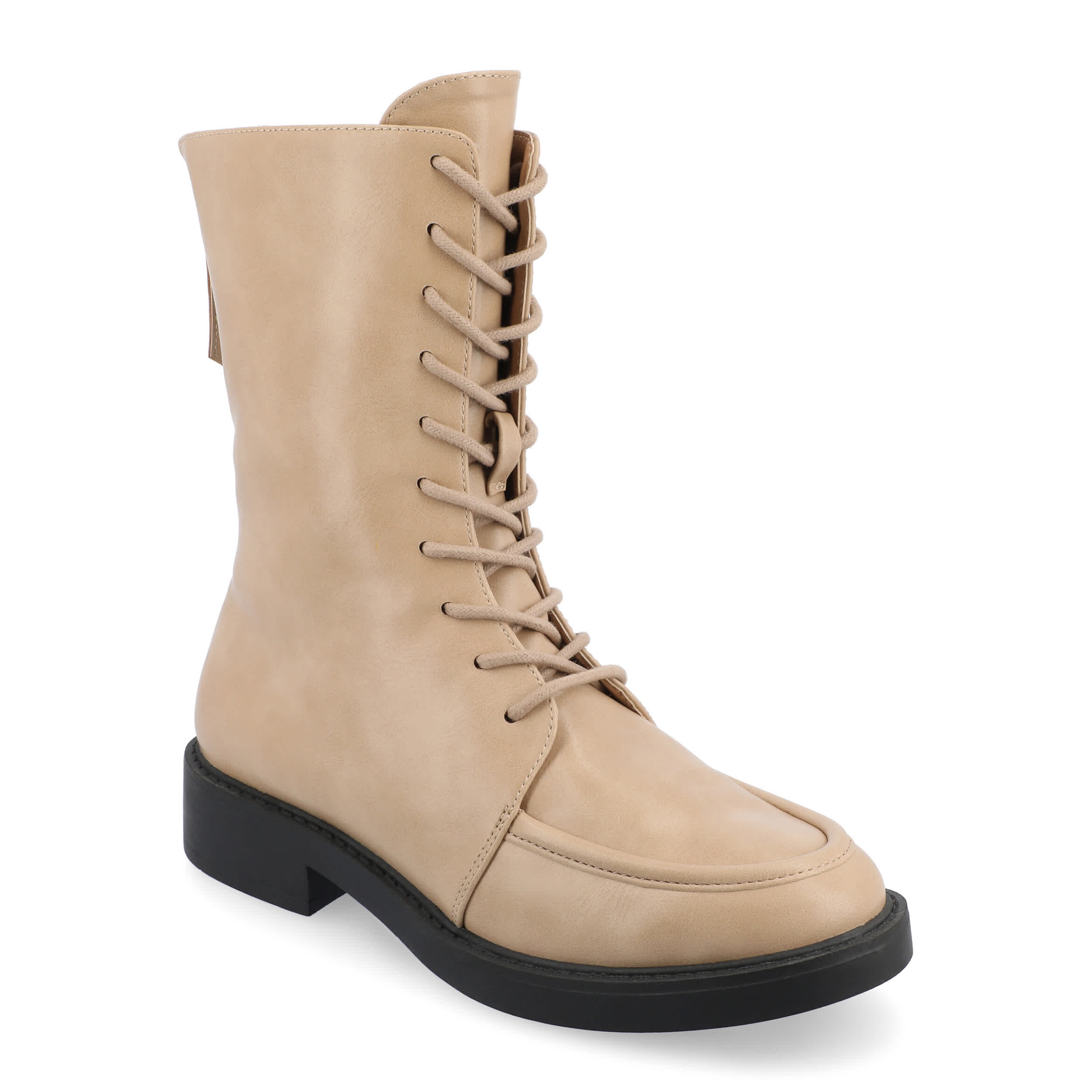 Look effortlessly cool in the Nikks women's bootie by Journee Collection. Featuring a vegan leather upper with a lace-up front, this combat boot is stylish and comfortable. The Memory Foam insole cushions every step while the low heel offers stable lift.