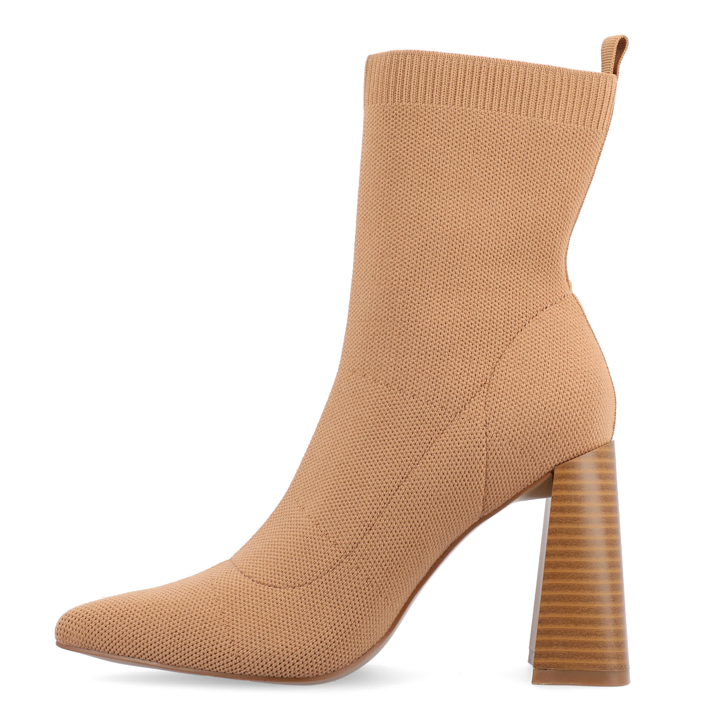 Statement looks call for the Noralinn women's bootie by Journee Collection. Featuring a knit fabric upper with a rear pull tab for easy entry, this stylish boot gives for a comfy fit. The Memory Foam insole cushions every step while the tapered heel offers more than enough height.