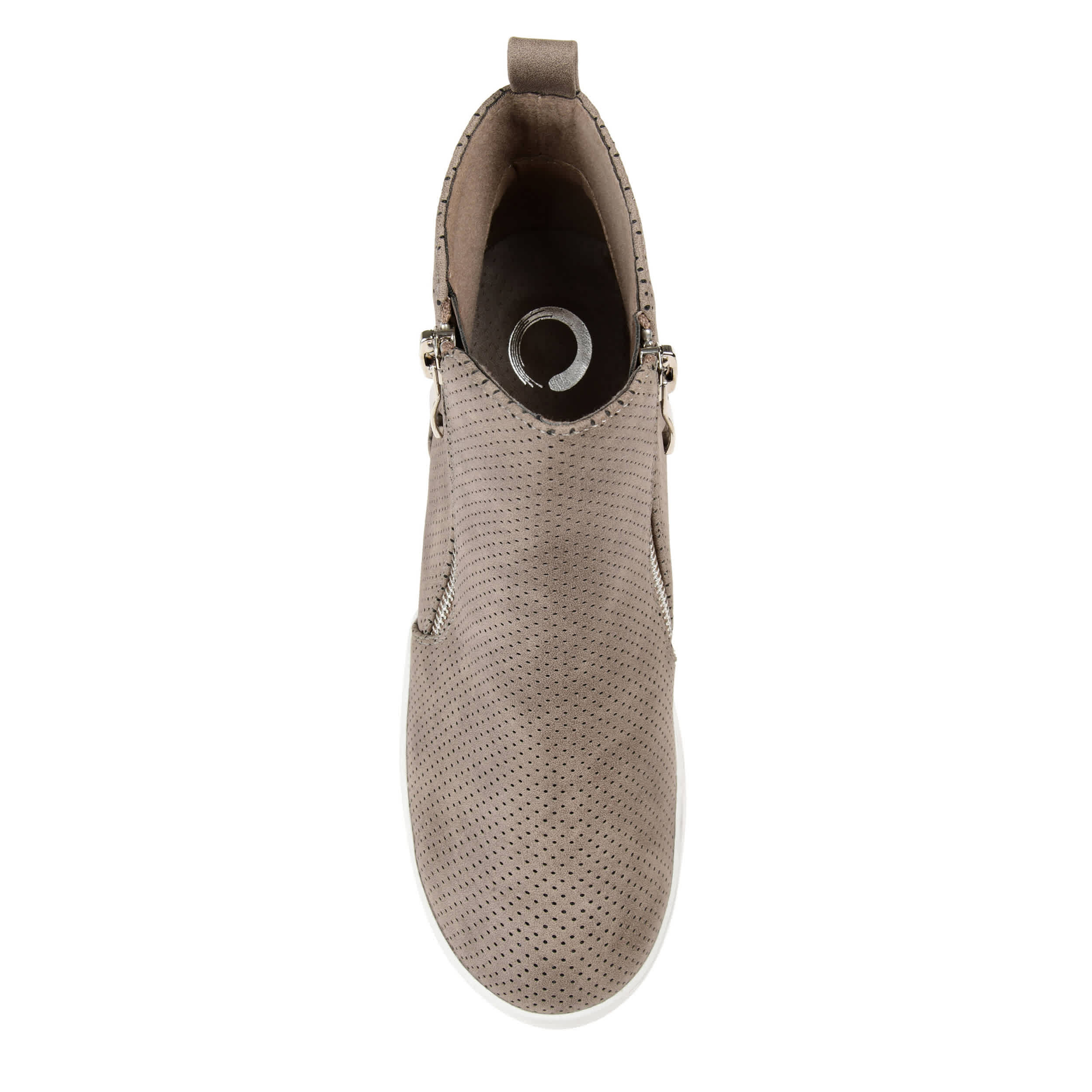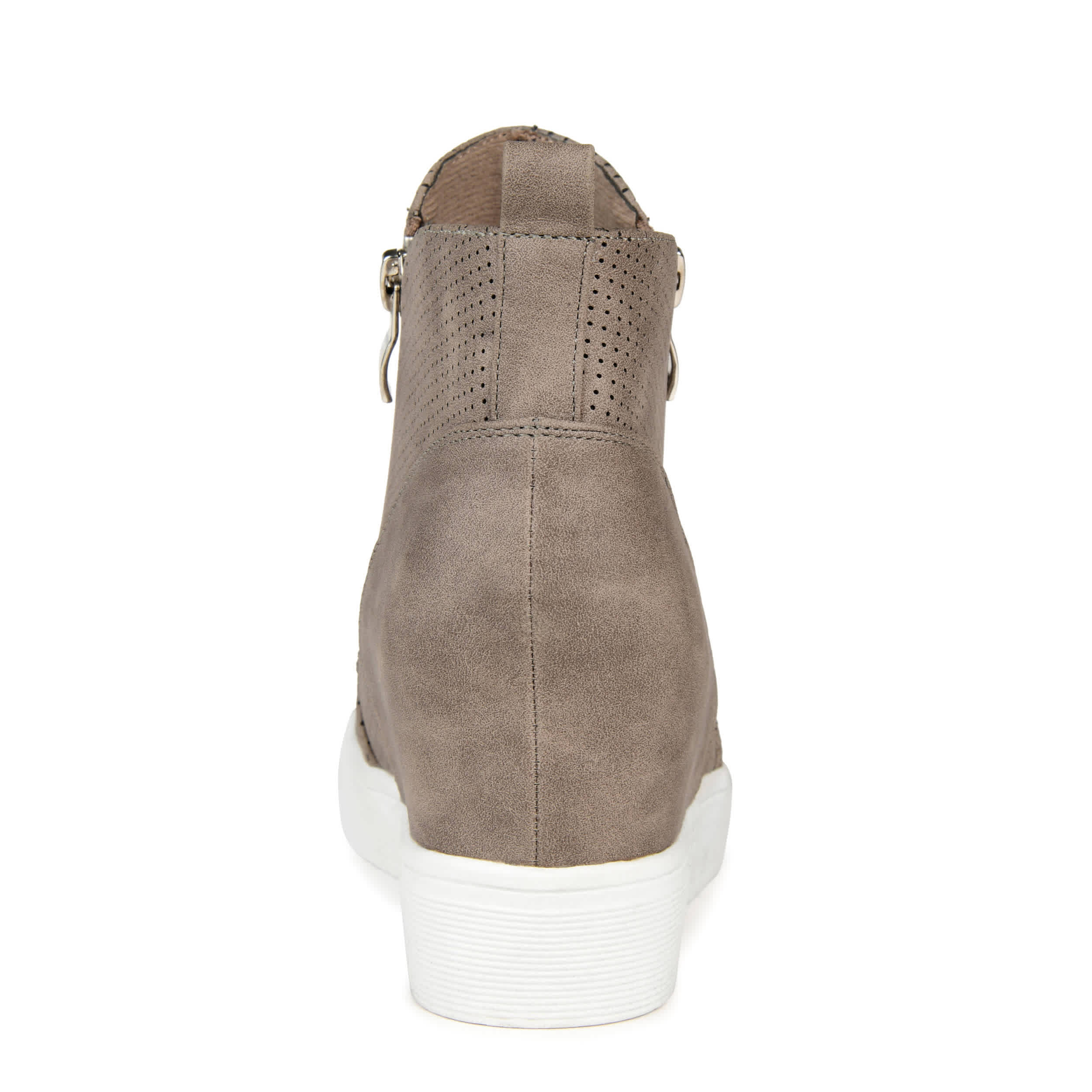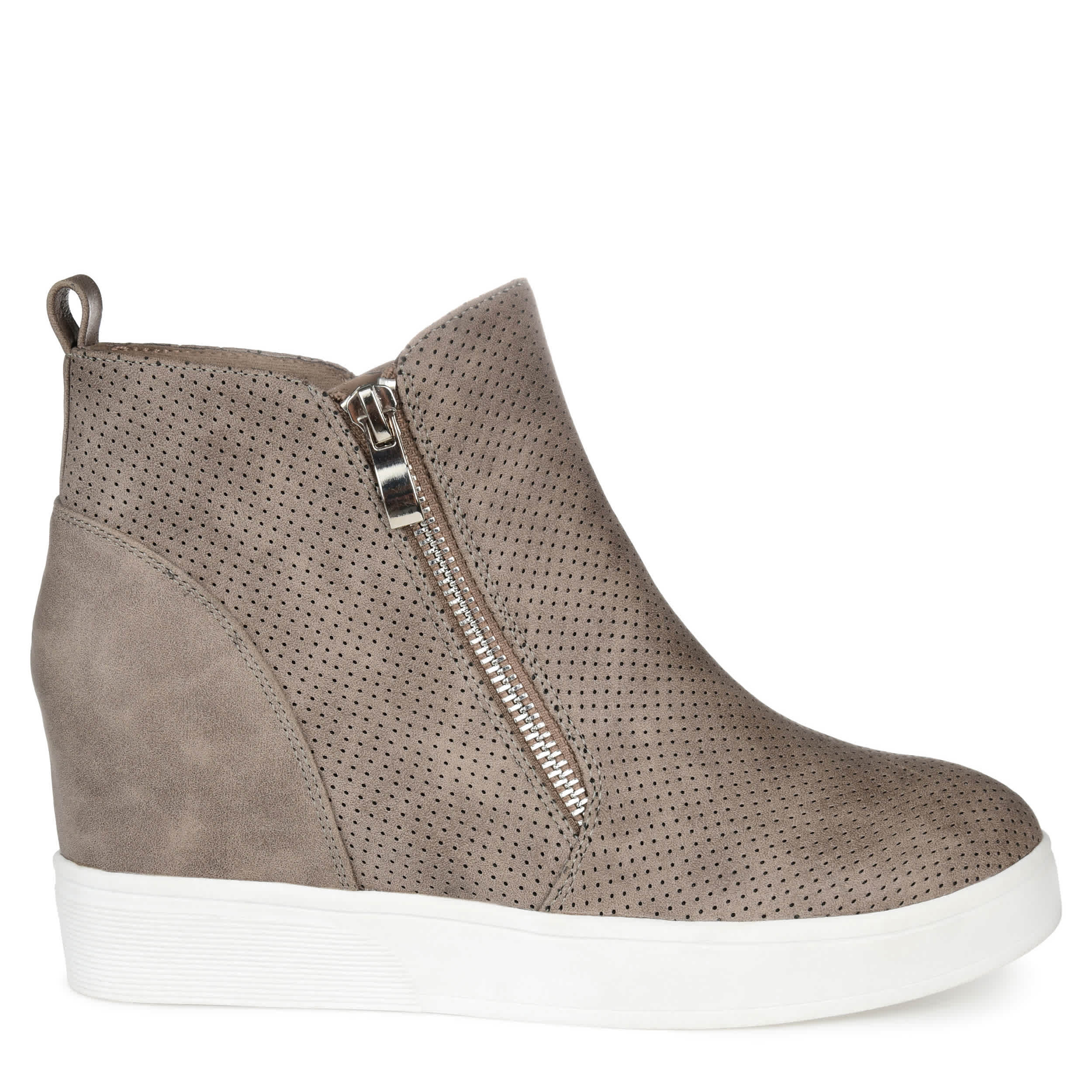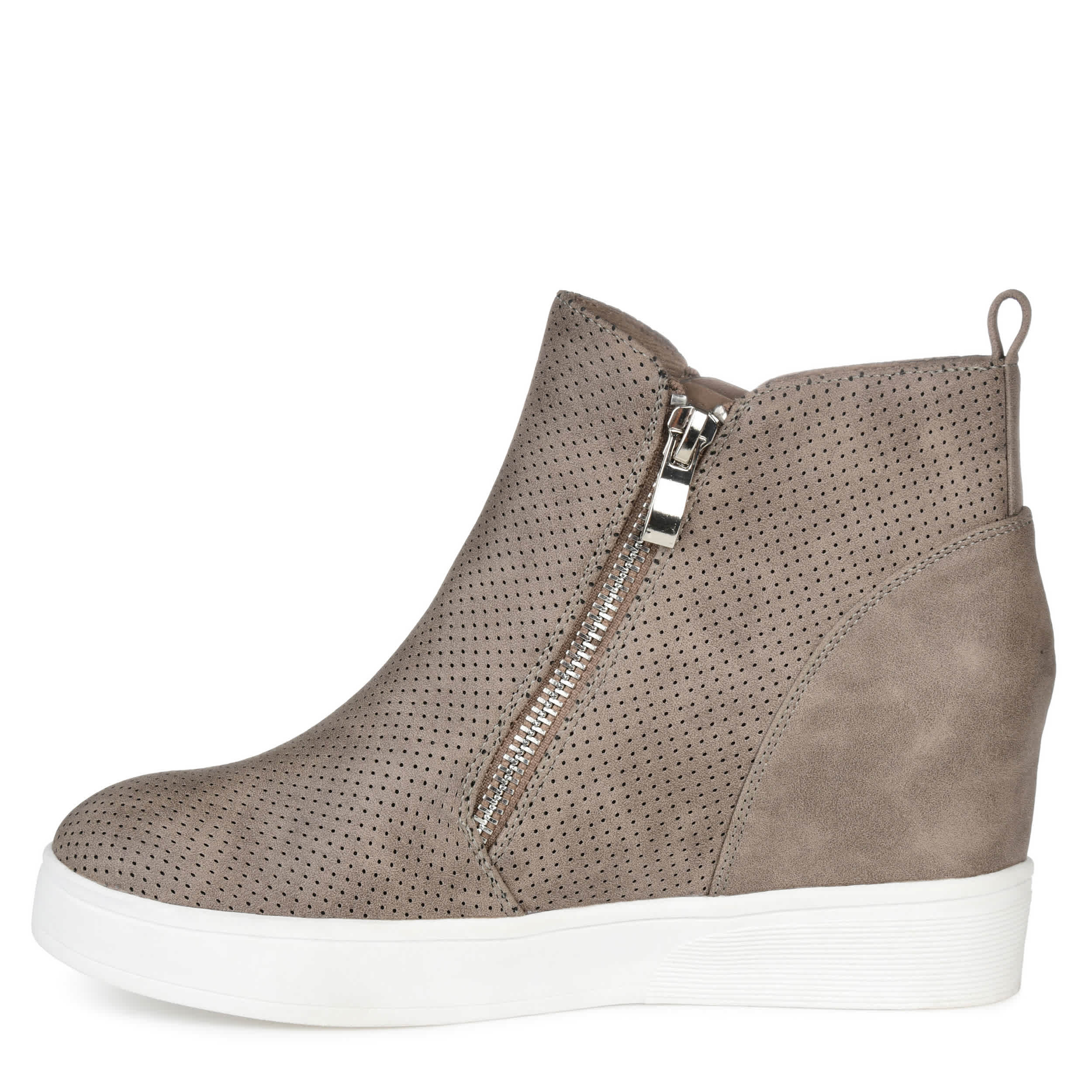Elevate your shoe game with the Pennelope women's wedge sneaker from Journee Collection. This sporty-chic style features a perforated faux leather upper with dual zipper closure for a secure fit and a cushioned footbed to soothe and support your feet. The platform outsole with a 1¼" hidden wedge heel adds a flattering lift, perfectly completing your look.