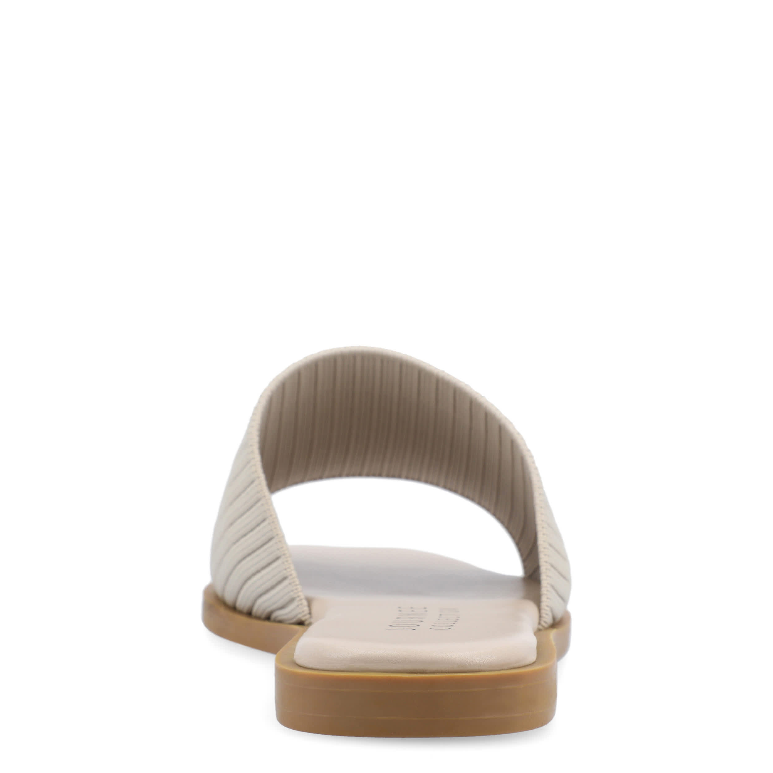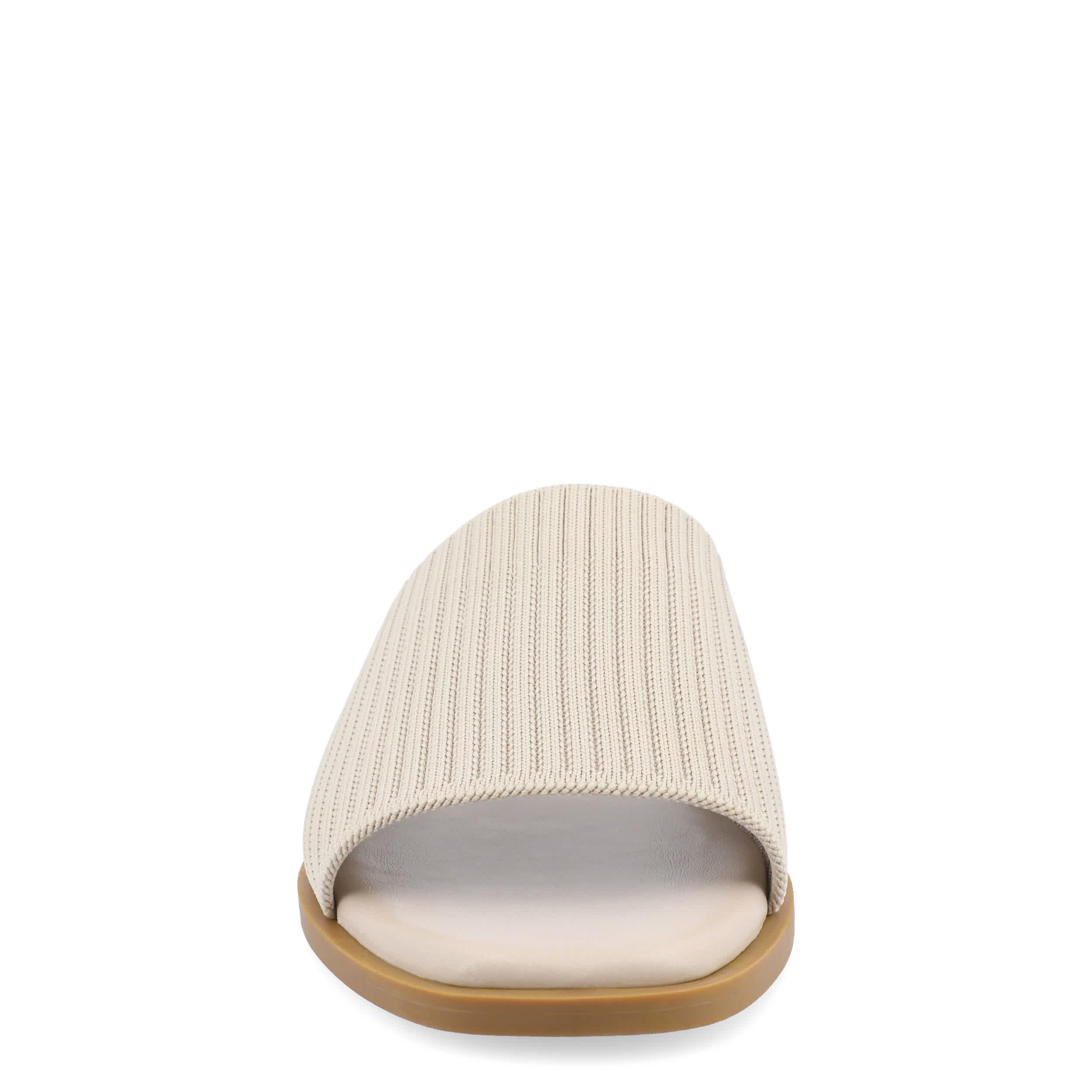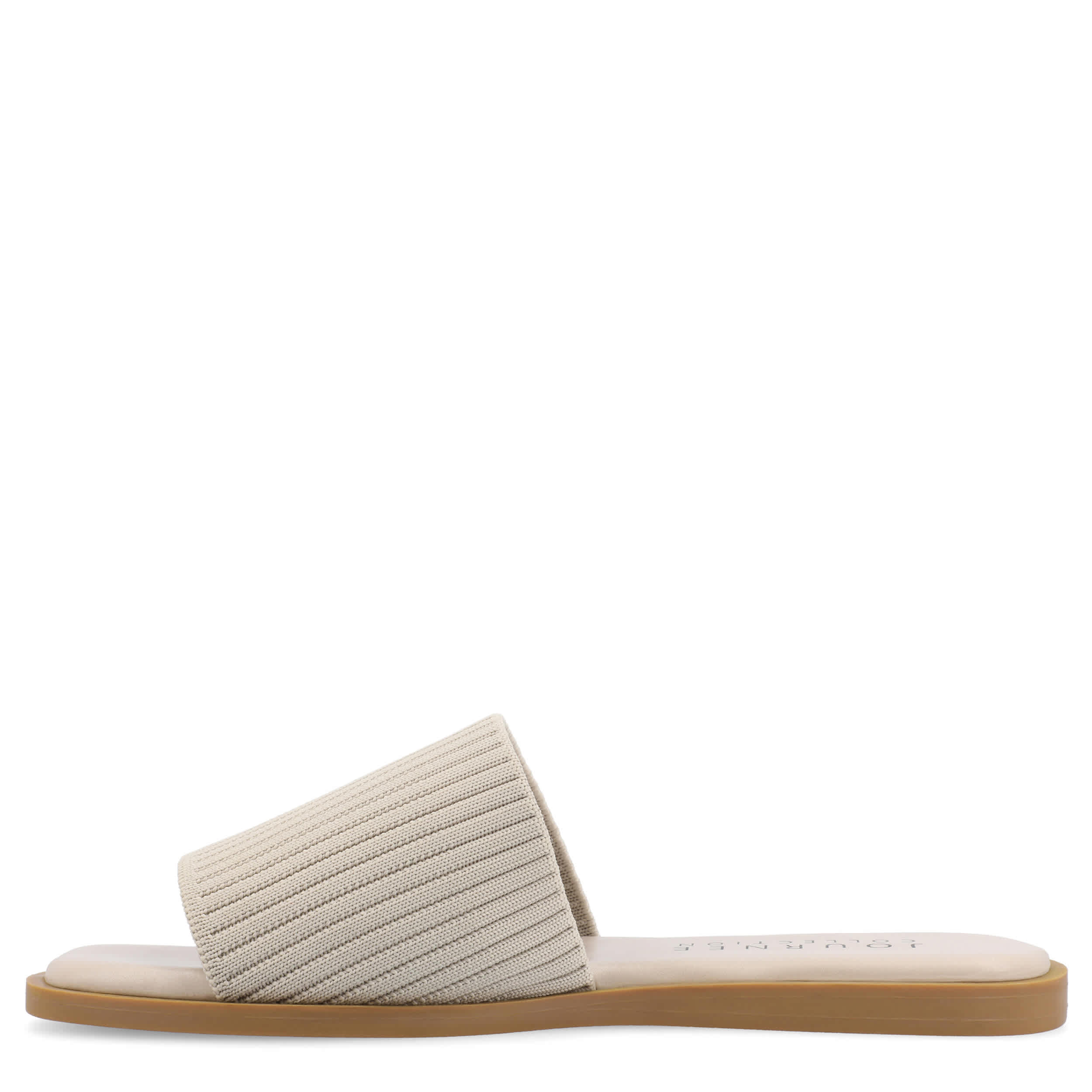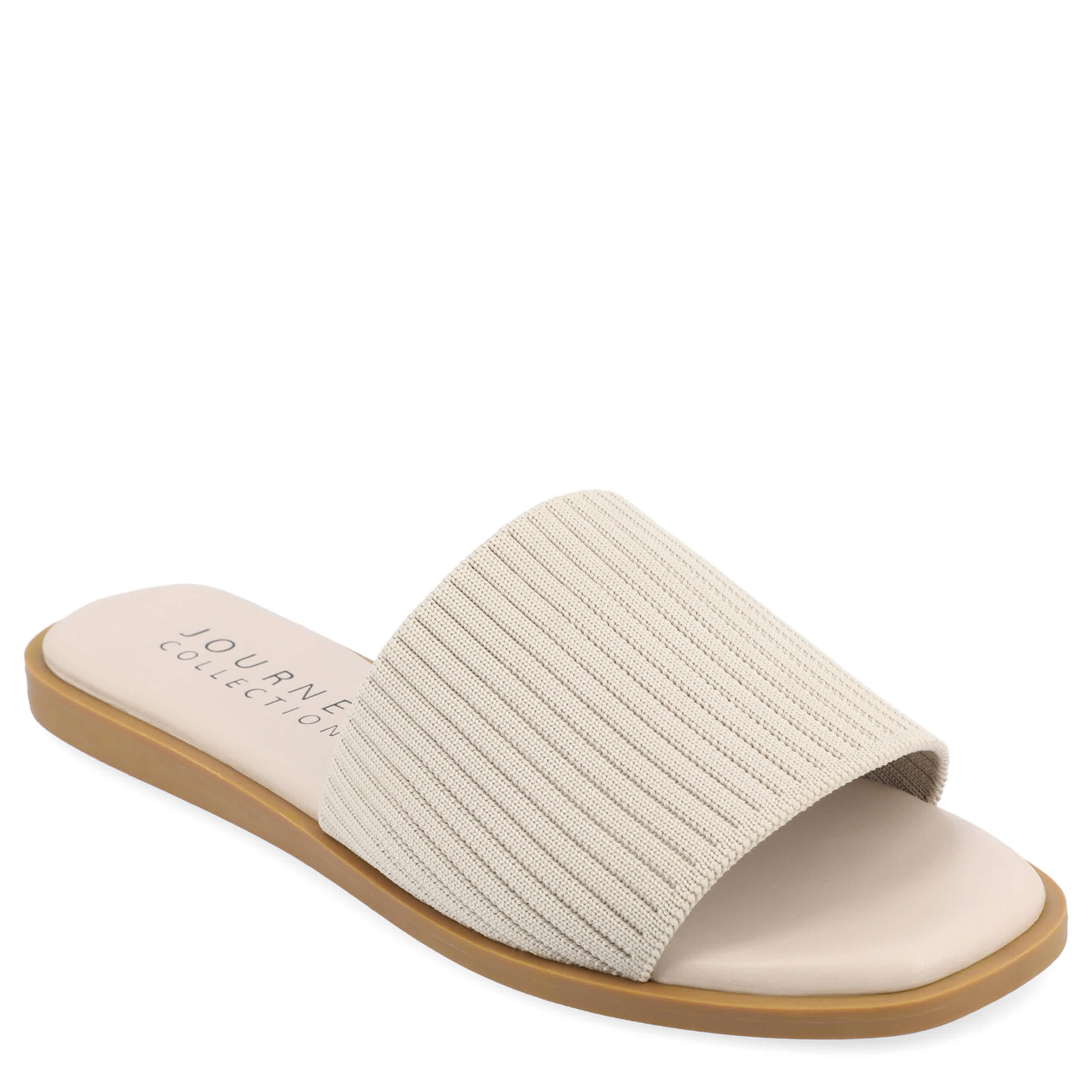 Lay back, but still look like you put in some effort with the Prisilla women's sandal from Journee Collection. Featuring a fabric upper with ribbed detailing for chic, minimalist style, this simple slide goes with everything in your closet. The 4 mm Tru Comfort Foamâ„¢ footbed cushions every step you take.