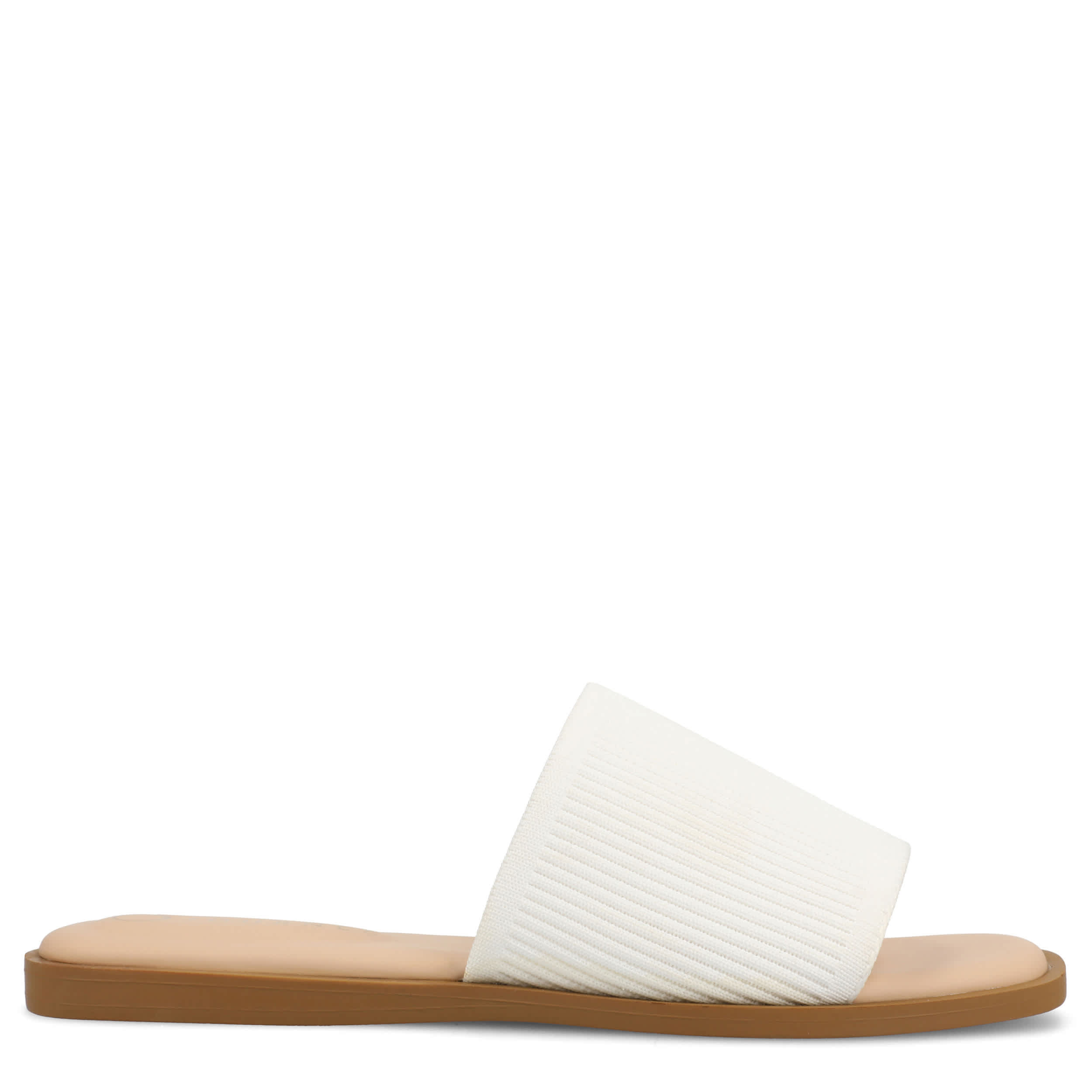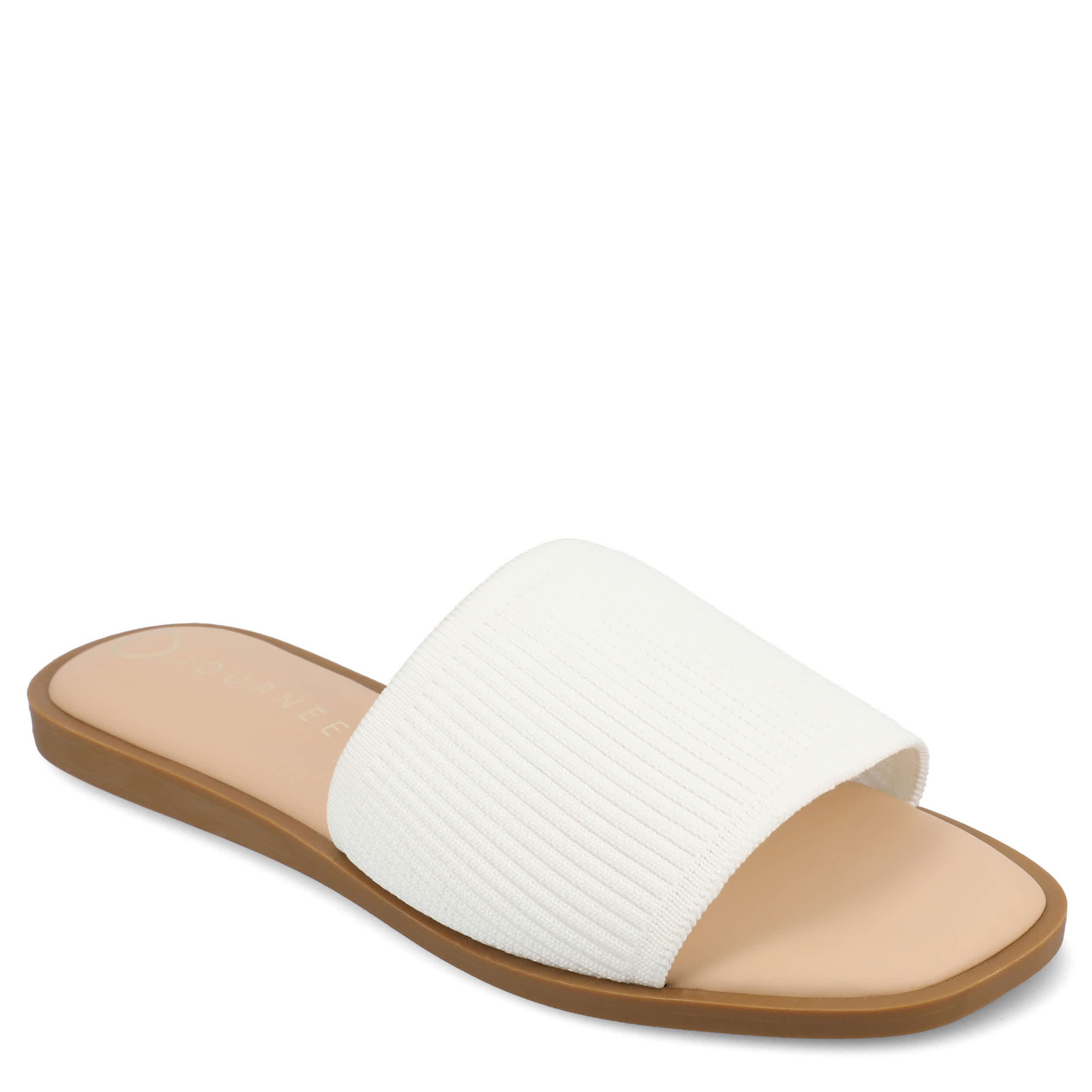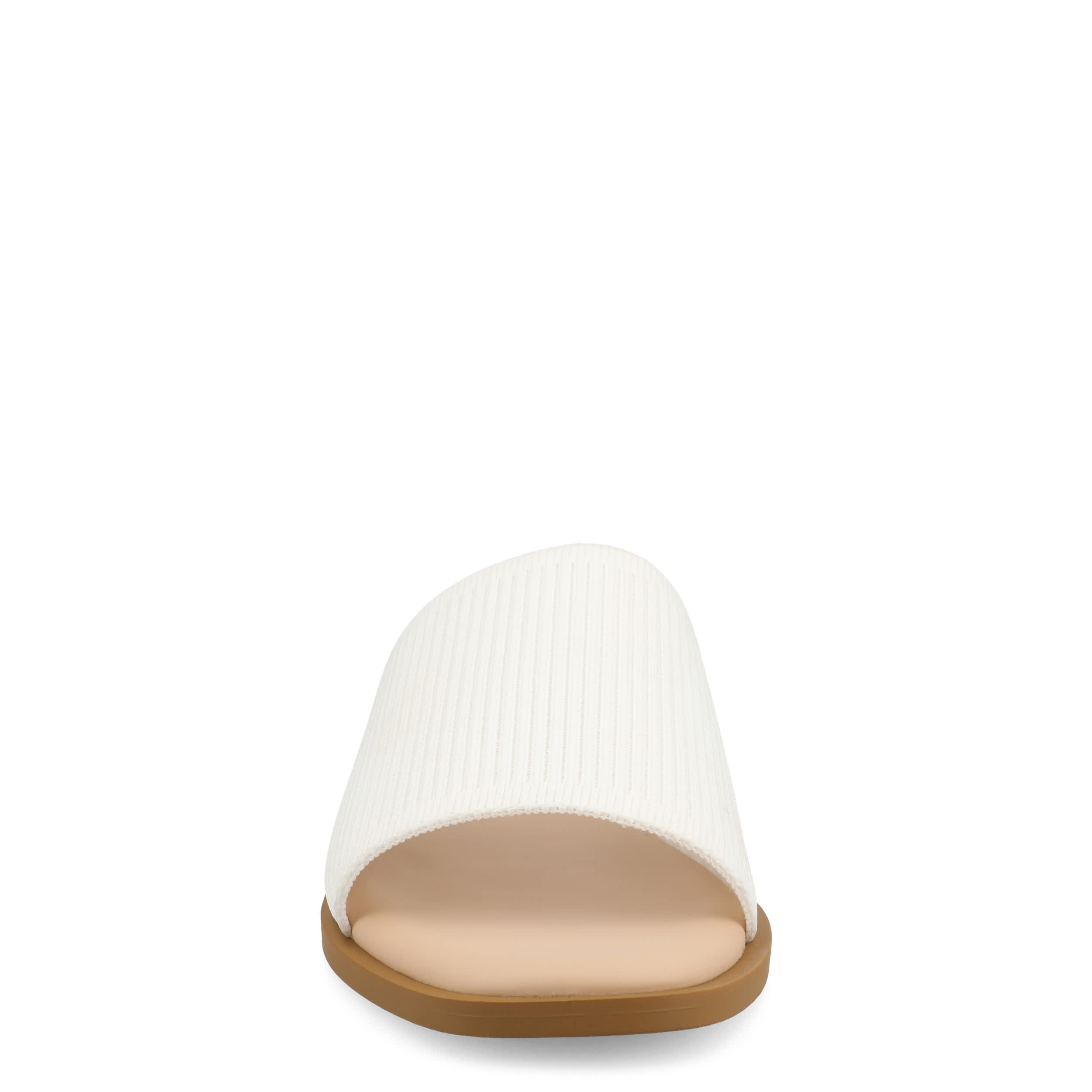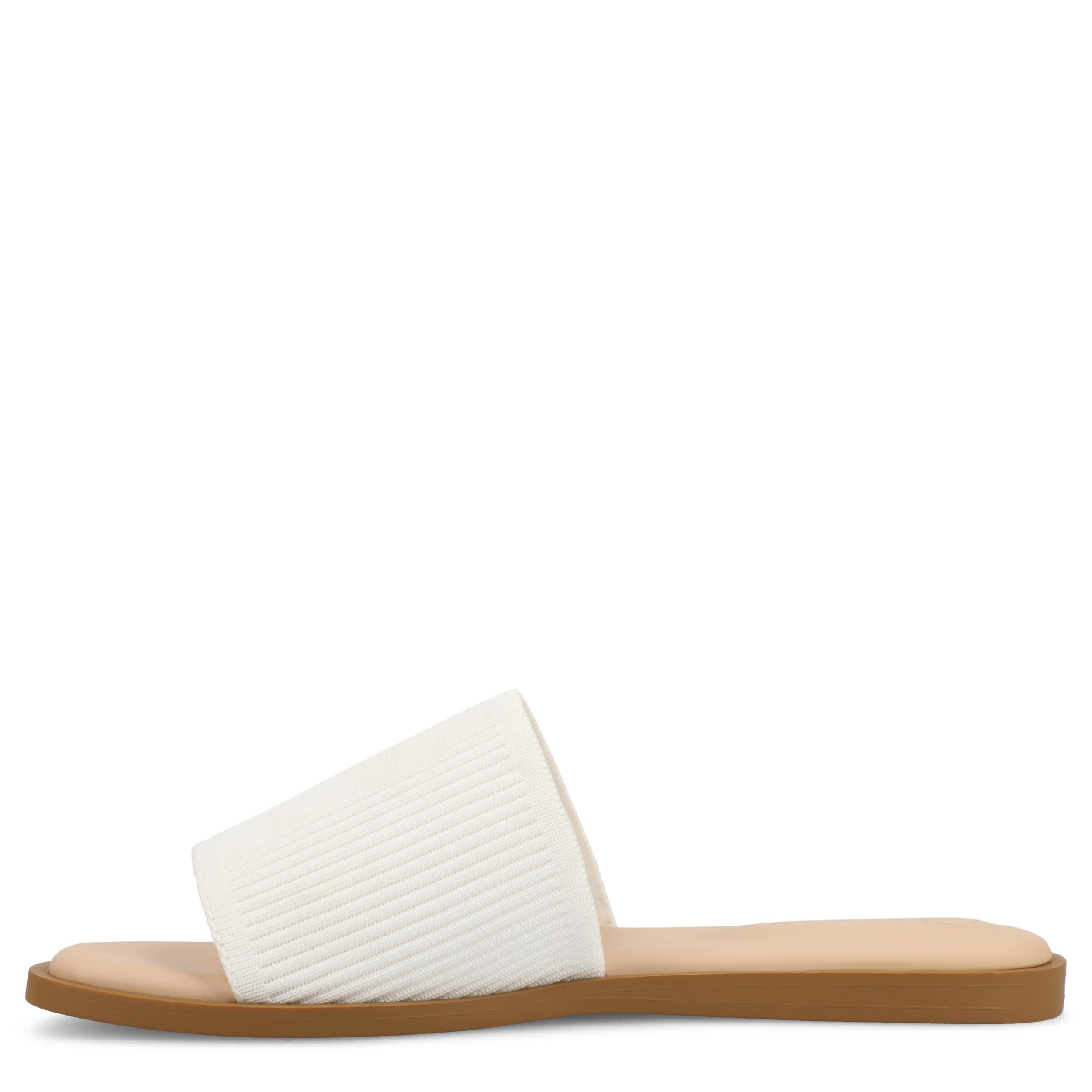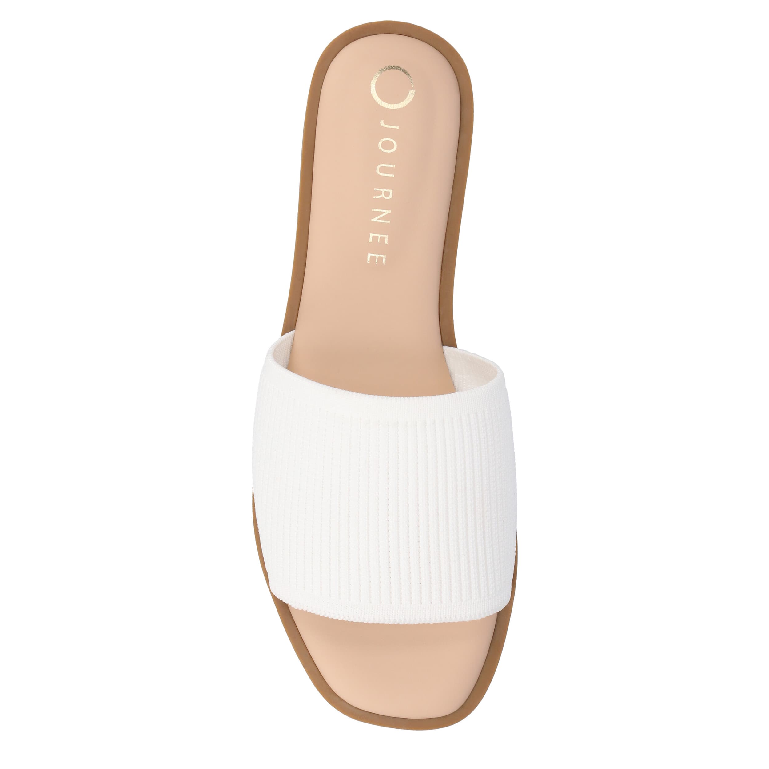 Minimalist and trendy with the Prisilla slide sandal from Journee Collection. Featuring a luxe ribbed knit upper, this single band slide helps you navigate summer with ease. The Tru Comfort Foamâ„¢ insole provides optimal cushioning, perfect for all-day wear.