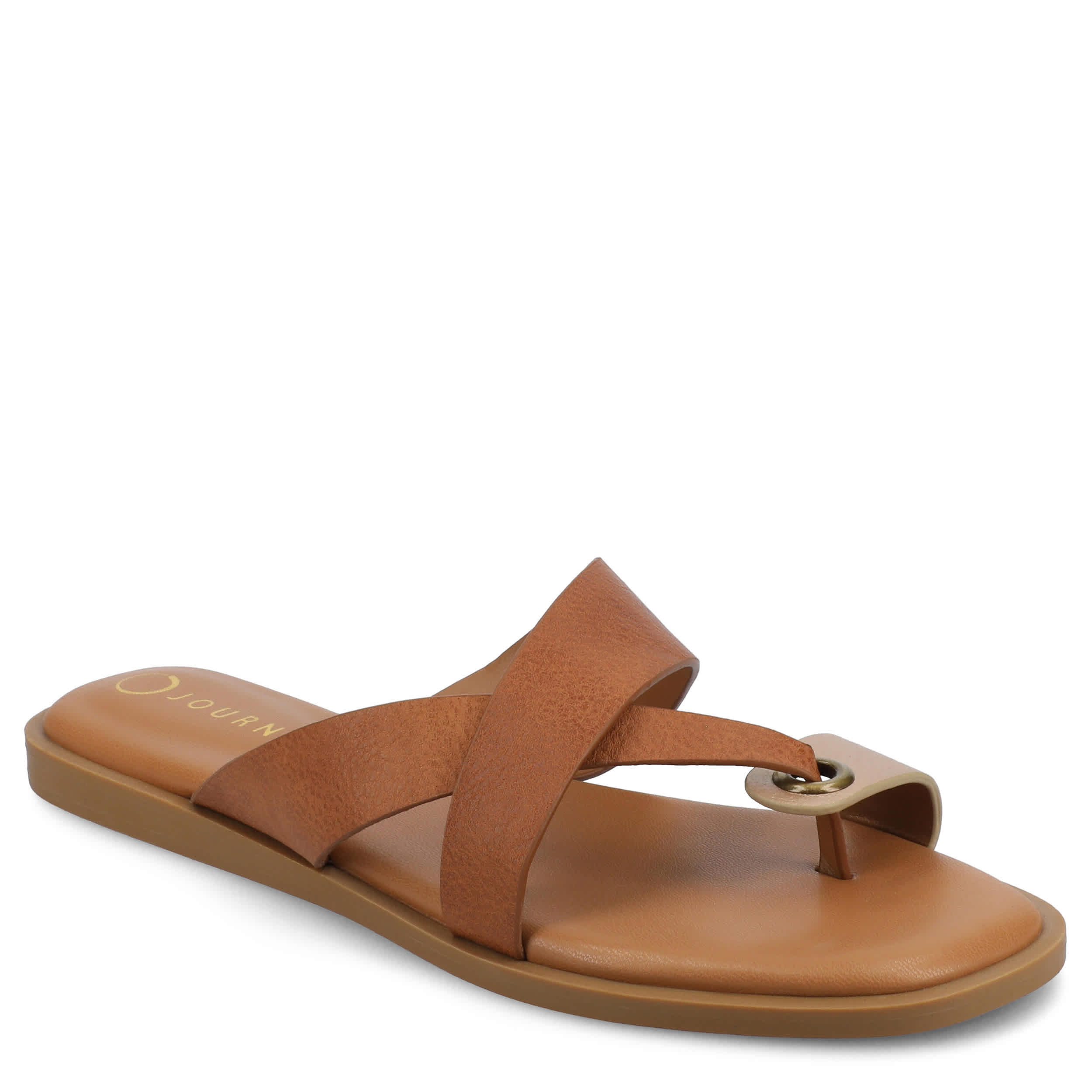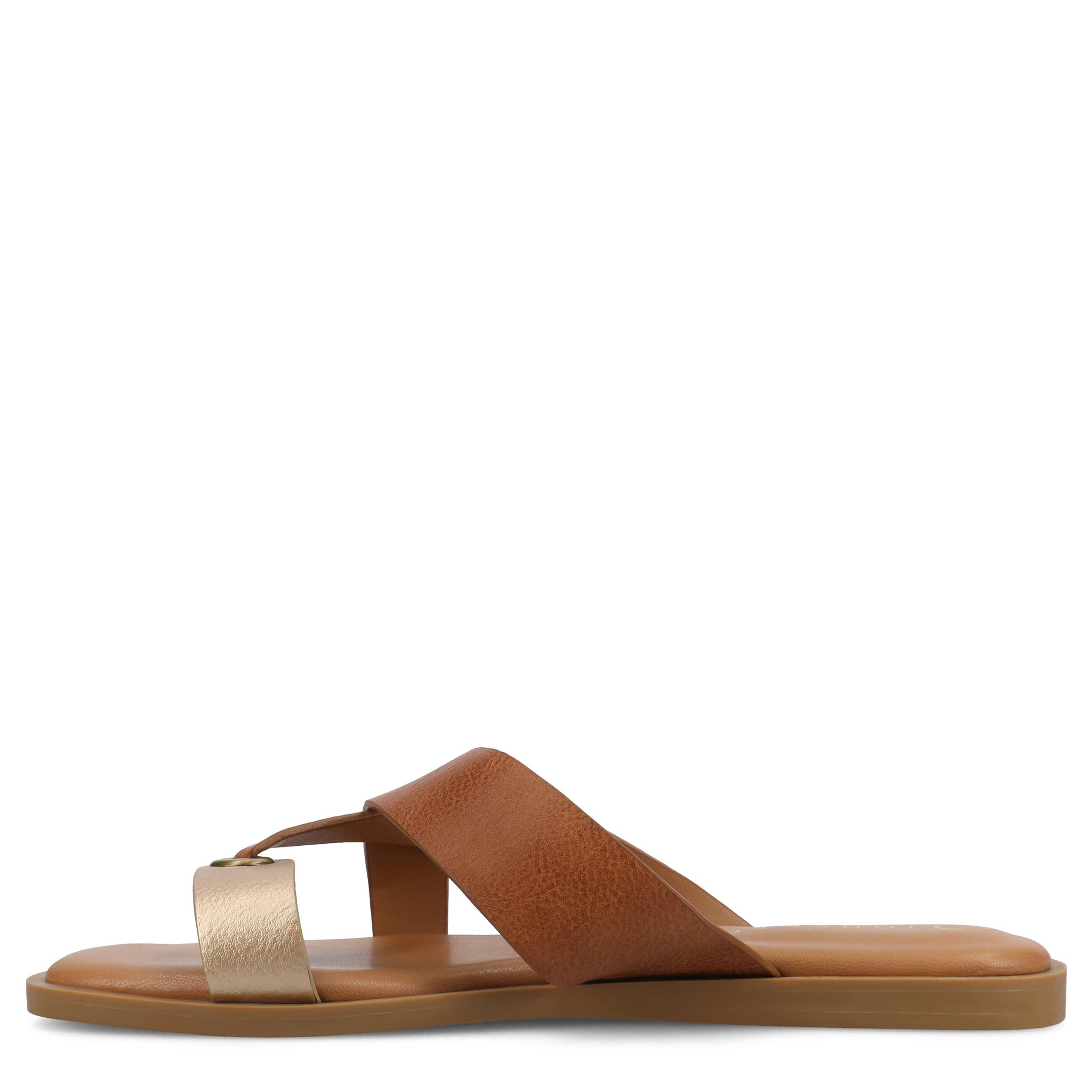 Fashion your own modern look with the Journee Collection Prizzie slide sandal. Featuring a sleek faux leather upper, this multi-strap slide is casually chic. Feel the support in the cushy footbed and sturdy sole.