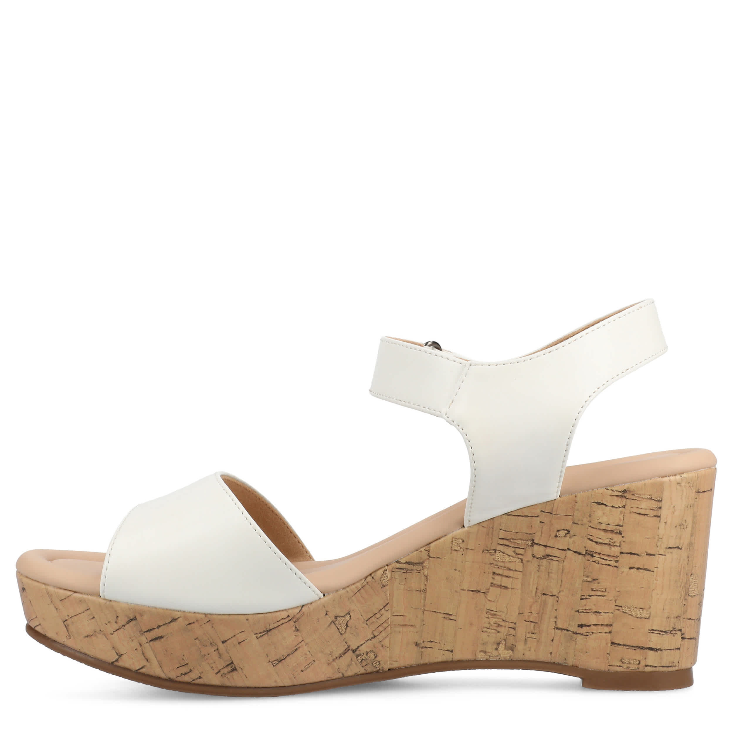 Modern style meets charm in the Journee Collection Ranae wedge sandal. Featuring a faux leather upper, this open-toed sandal gives a laid-back feel to your casual or dressy outfits. The insole offers premium comfort, while the cork wedge exudes summer class with a trendy lift.