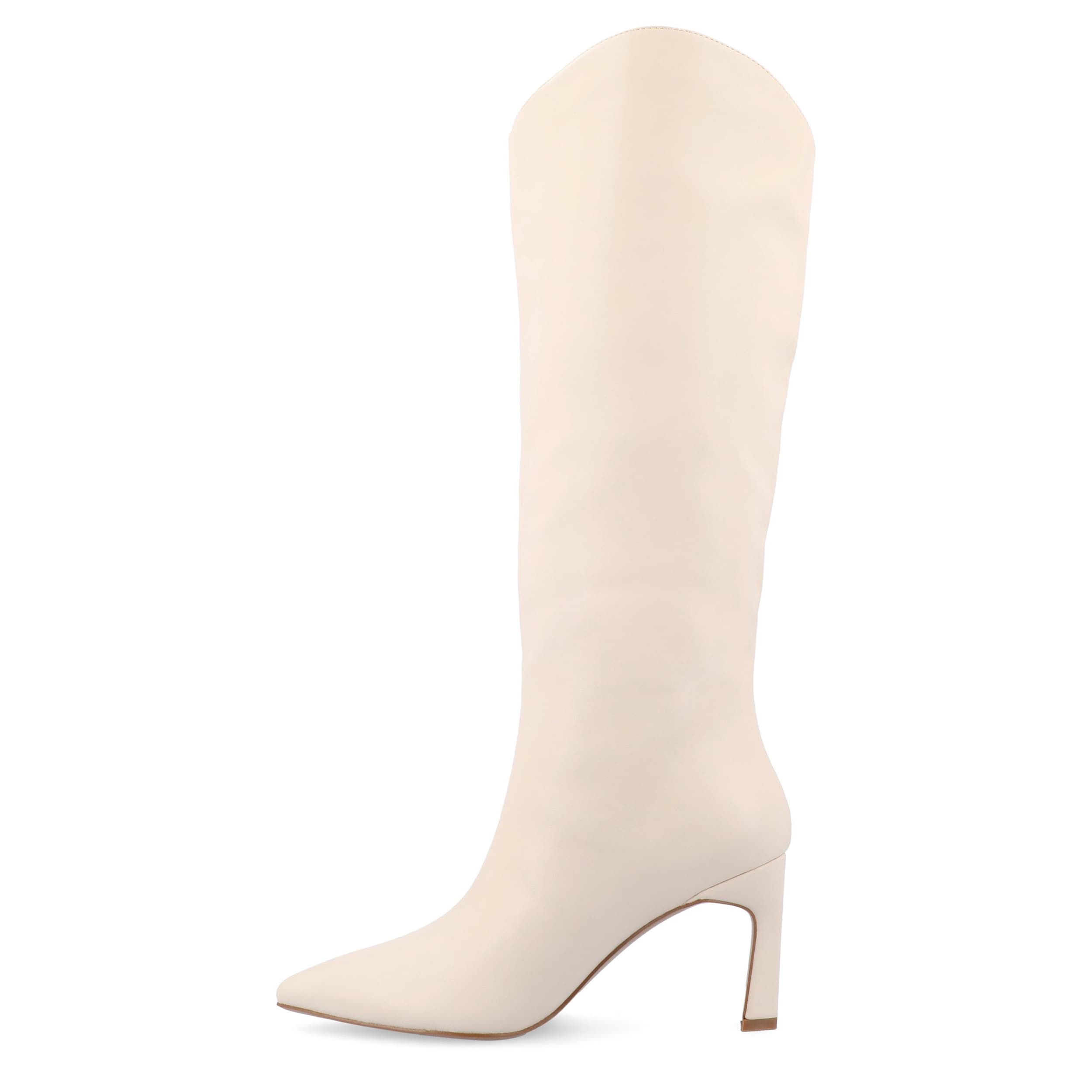 Stylish comfort with a touch of country girl swag: the Journee Collection Rehela Wide Calf boot. Featuring a faux leather upper with a center seam and wide-width footbed, this knee-high boot's pointed toe boosts your fashion game. The Tru Comfort Foamâ„¢ insole cushions every step, while the stiletto heel offers a sophisticated lift.