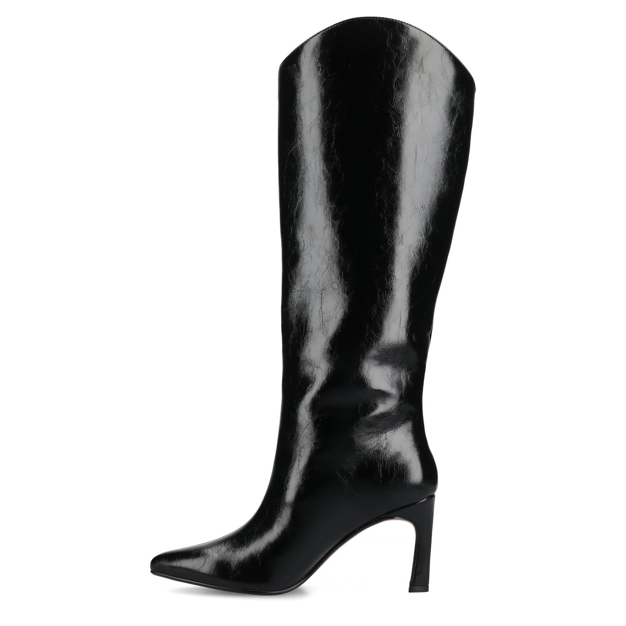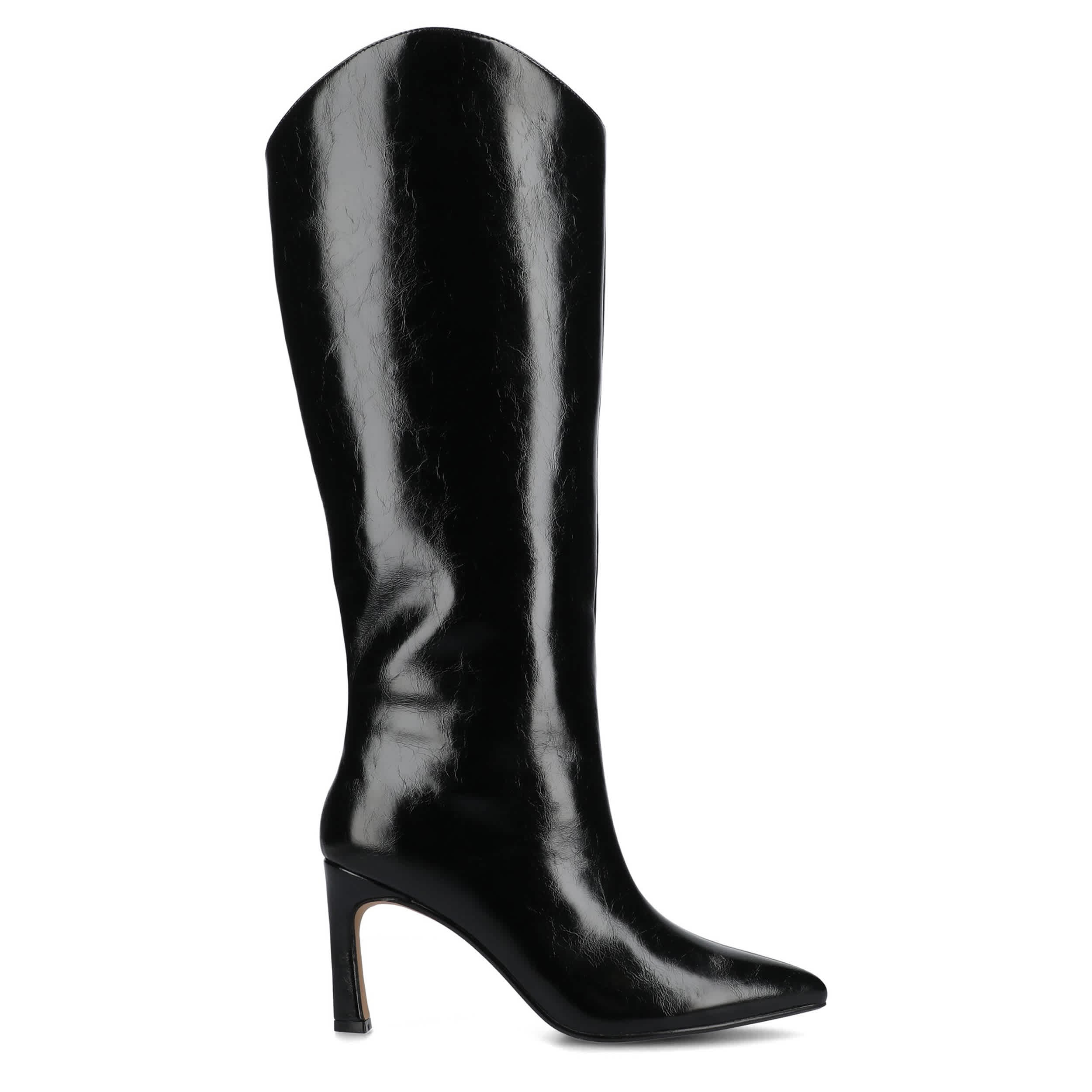 Stylish comfort with a touch of country girl swag: the Journee Collection Rehela Wide Calf boot. Featuring a vegan patent leather upper with a center seam and wide-width footbed, this knee-high boot's pointed toe boosts your fashion game. The Tru Comfort Foamâ„¢ insole cushions every step, while the stiletto heel offers a sophisticated lift.
