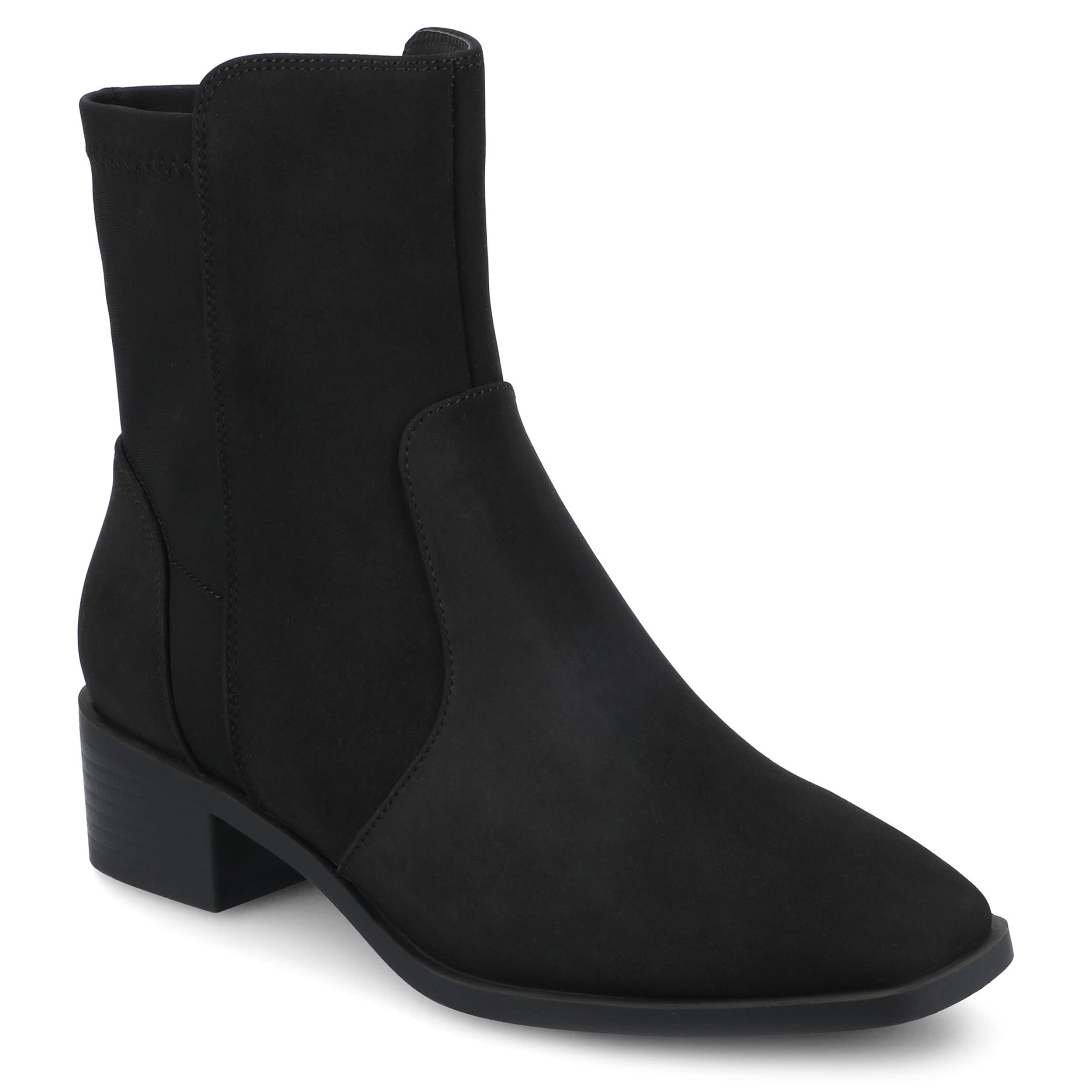 Charge your look with the chic Journee Collection Renna bootie. With a faux suede upper featuring a softly squared toe, this Chelsea boot is a great addition for fall. Move easy on the 4 mm Journee Comfort System insole and low heel.