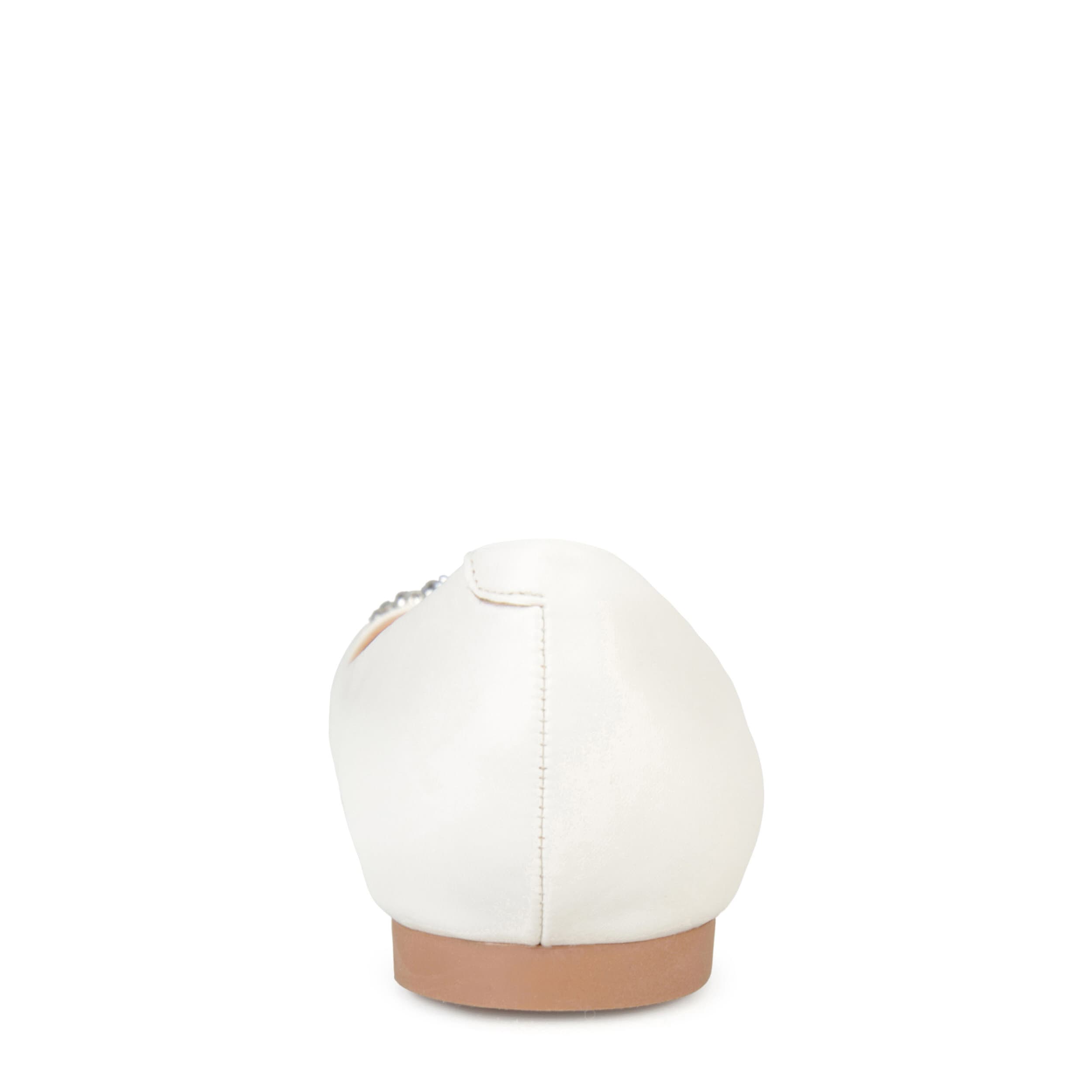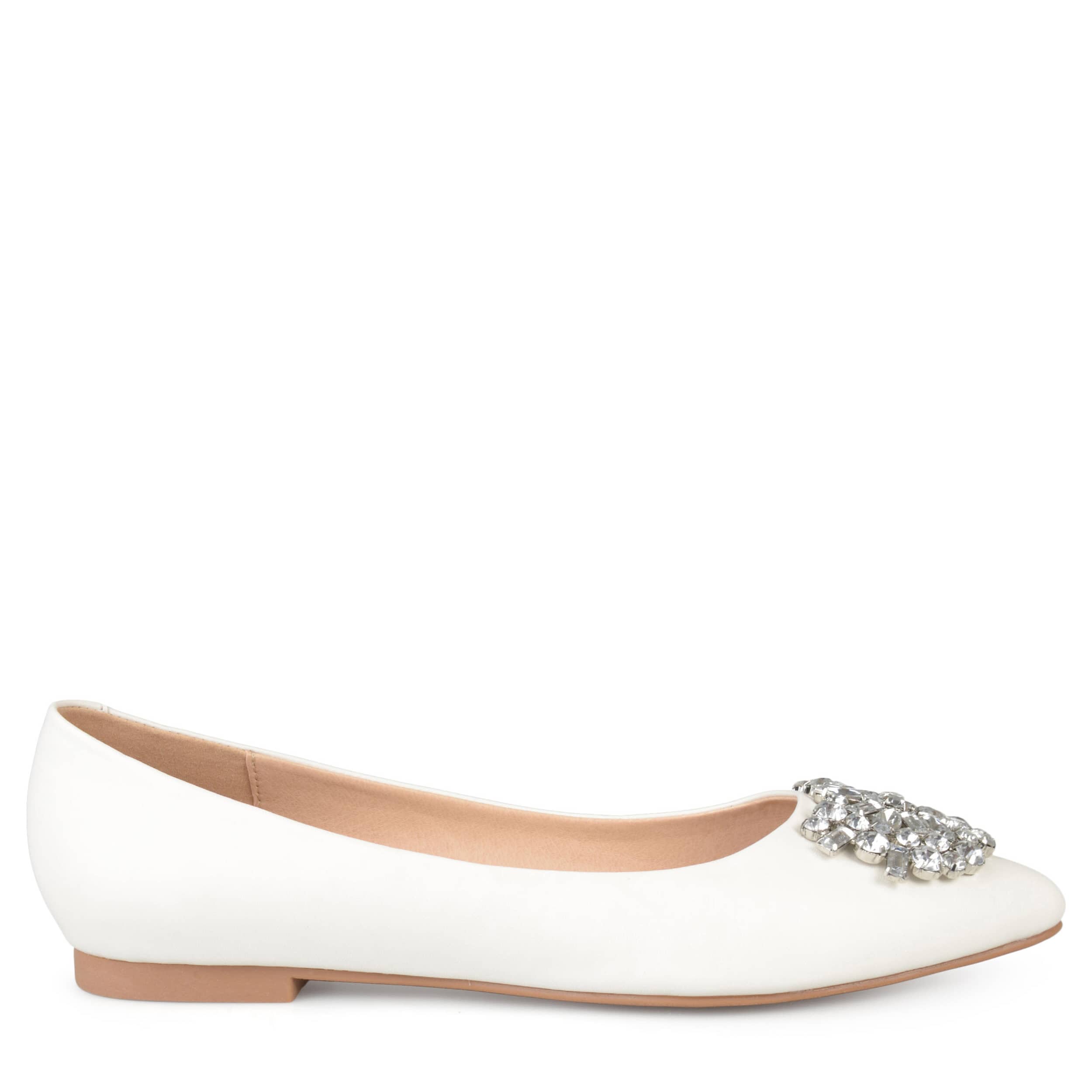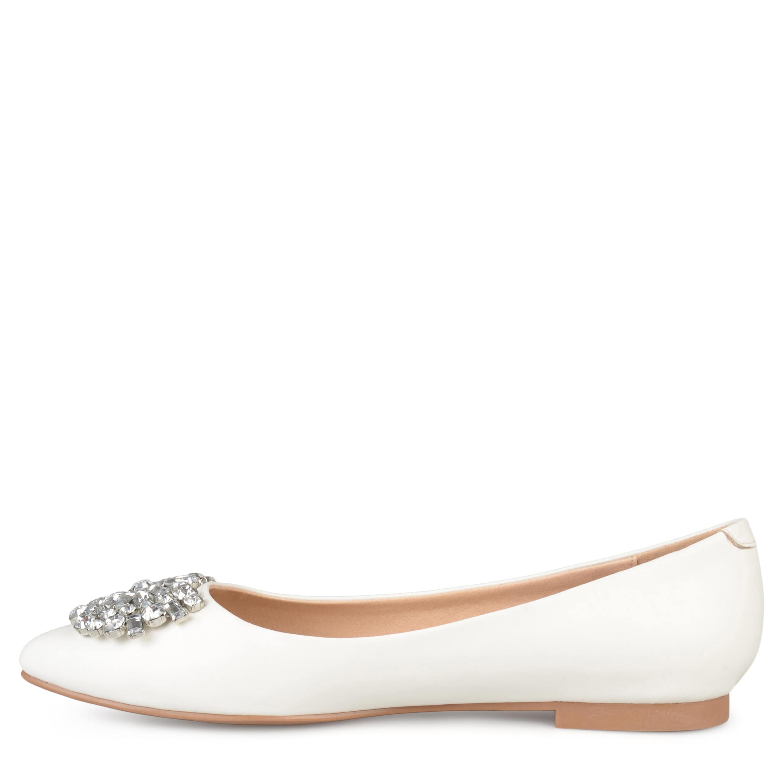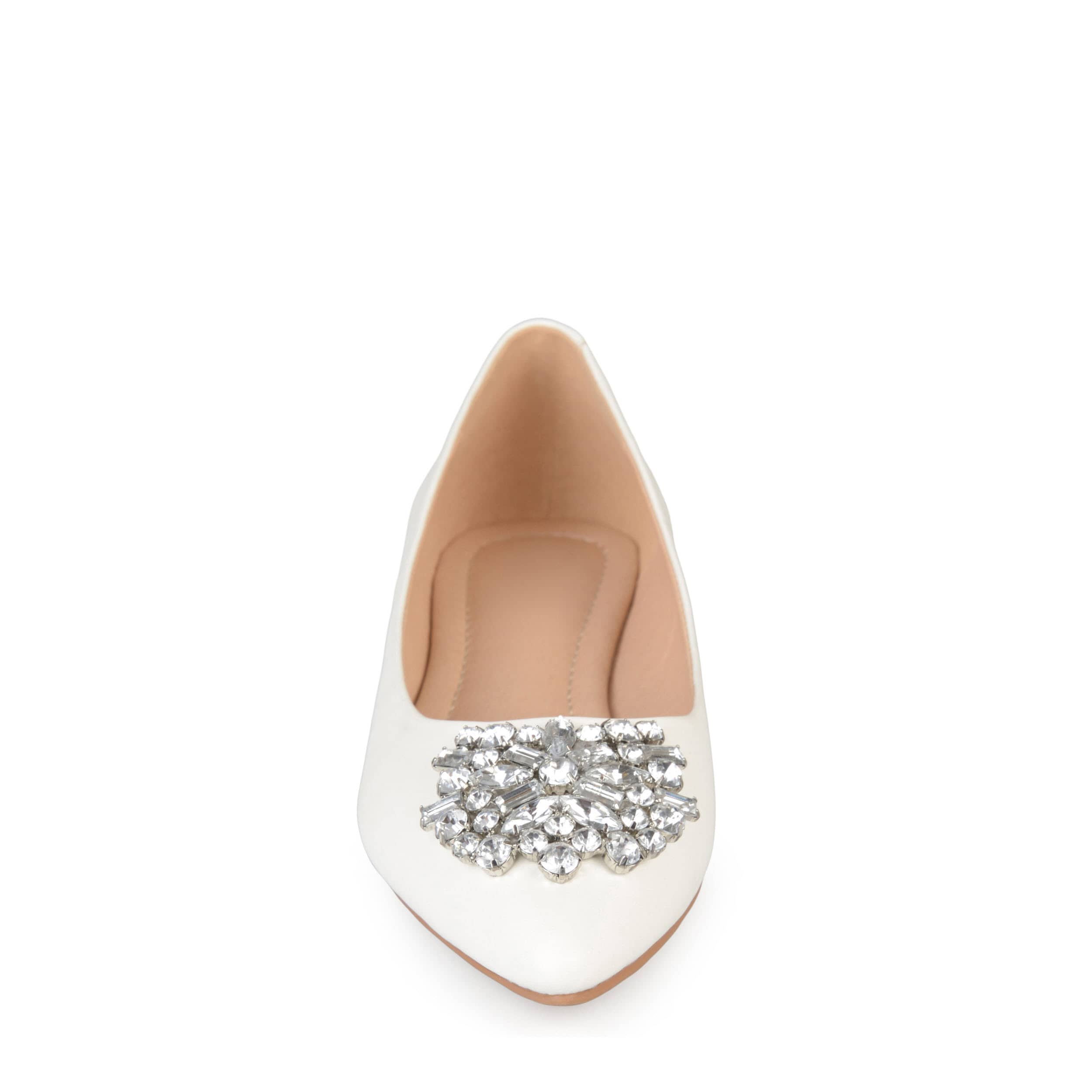 Dazzle and shine with this Renzo flat by Journee Collection. The synthetic upper has gorgeous brooch accent that will make any outfit pop. This flat is perfect for dressy events, the office or to just add some shimmer to a casual outfit.