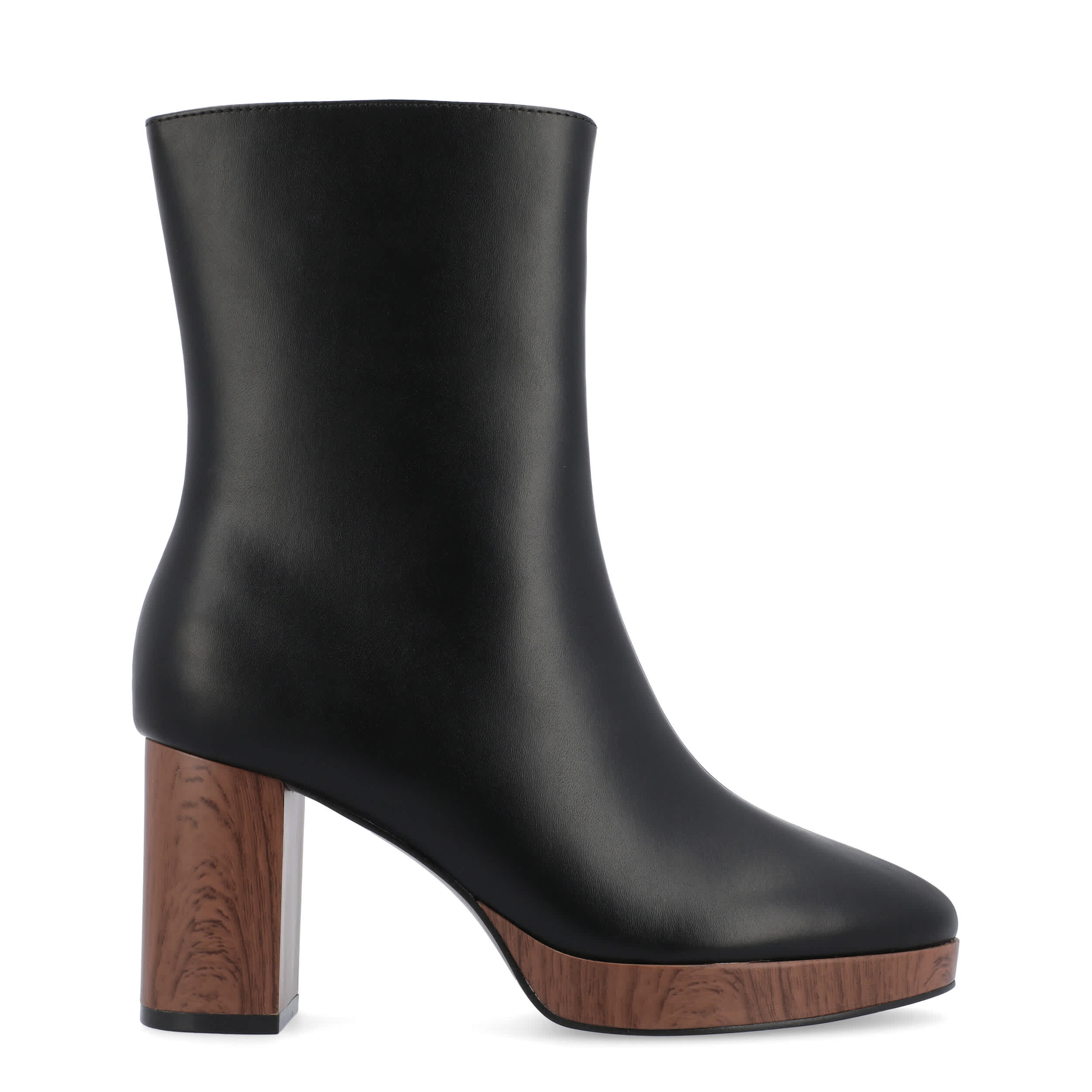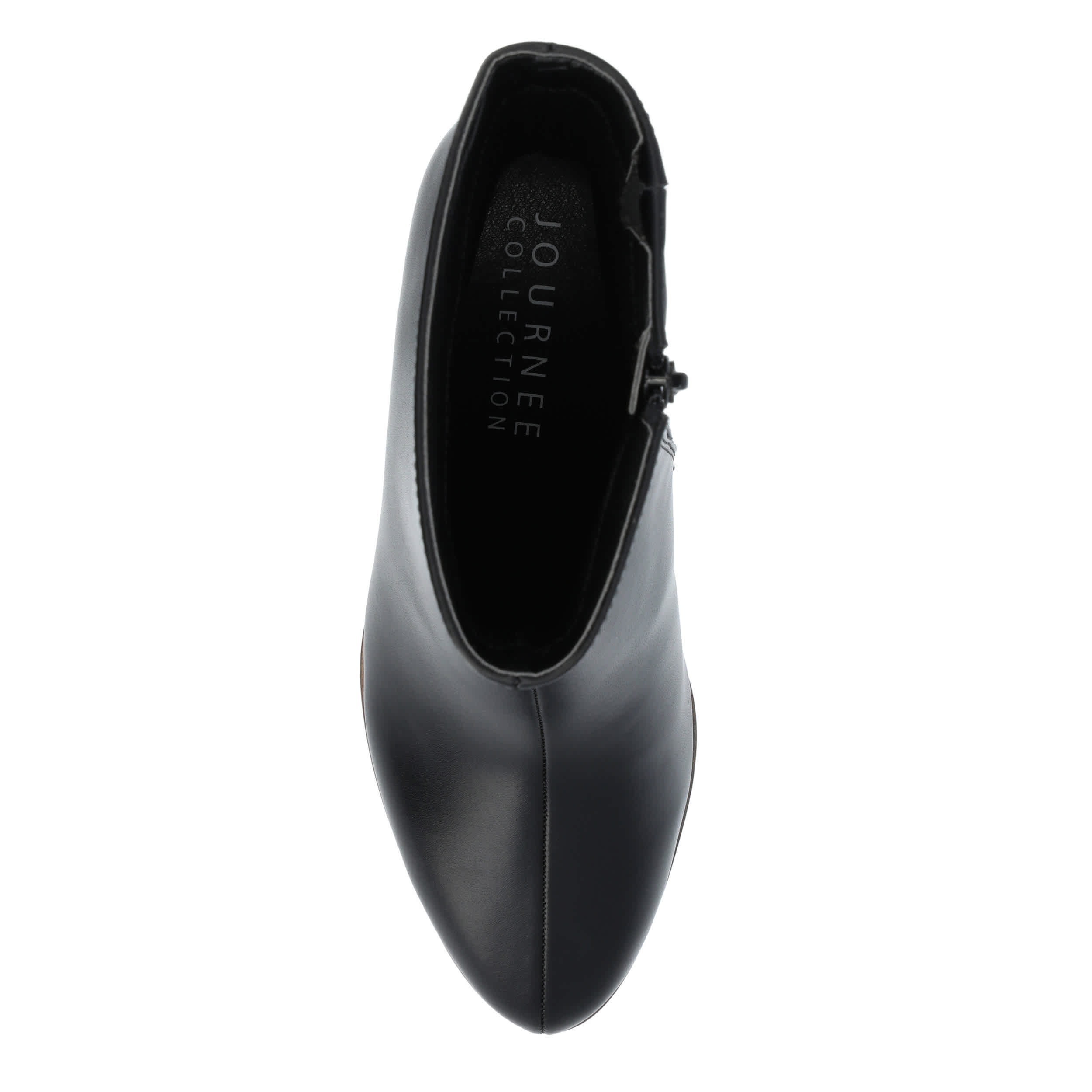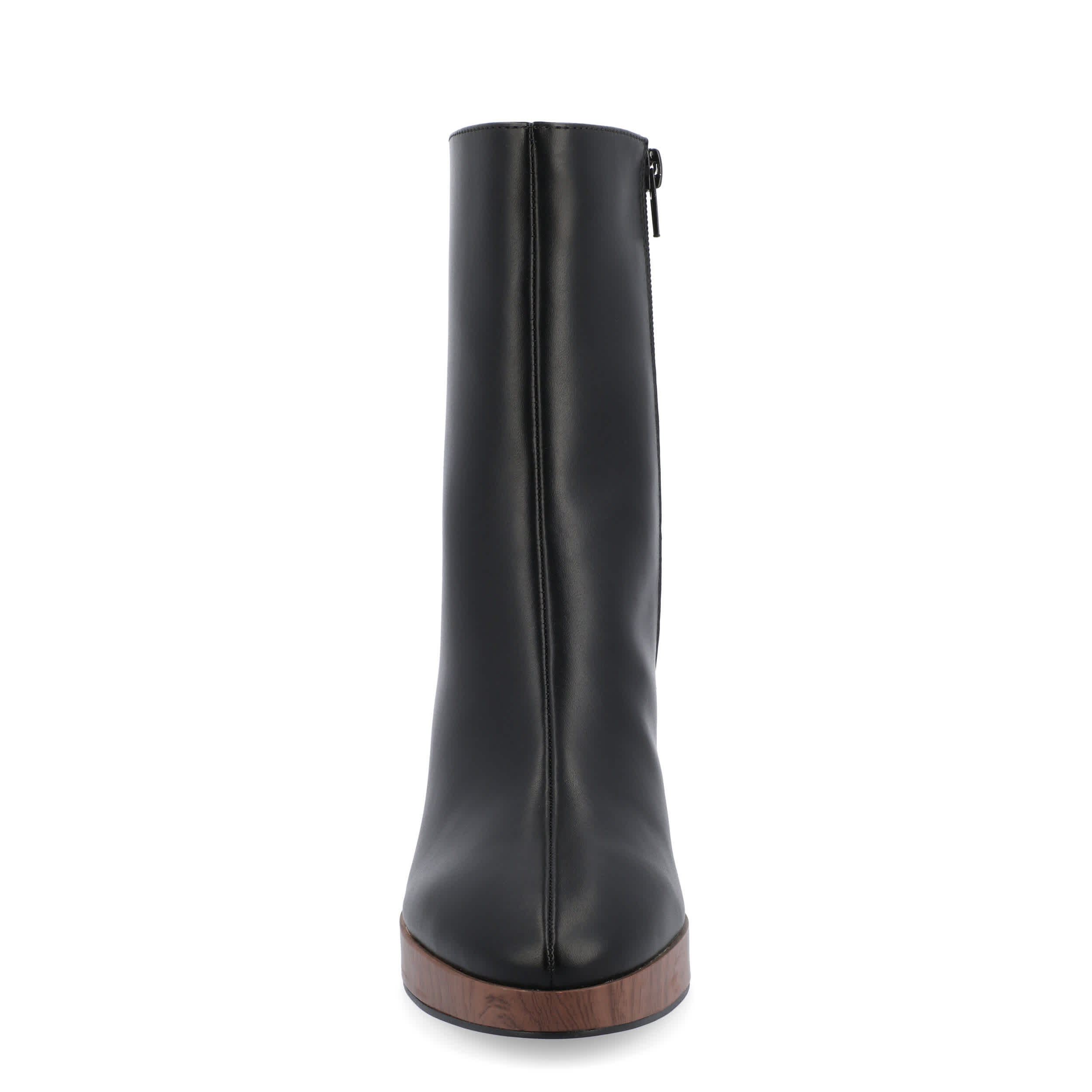 Smooth out your look in the Romer women's bootie by Journee Collection. With a vegan leather upper featuring an almond toe, this ankle boot has a center seam and faux wood accents for extra style. The Memory Foam insole cushions every step while the platform & block heel offer more than enough height.