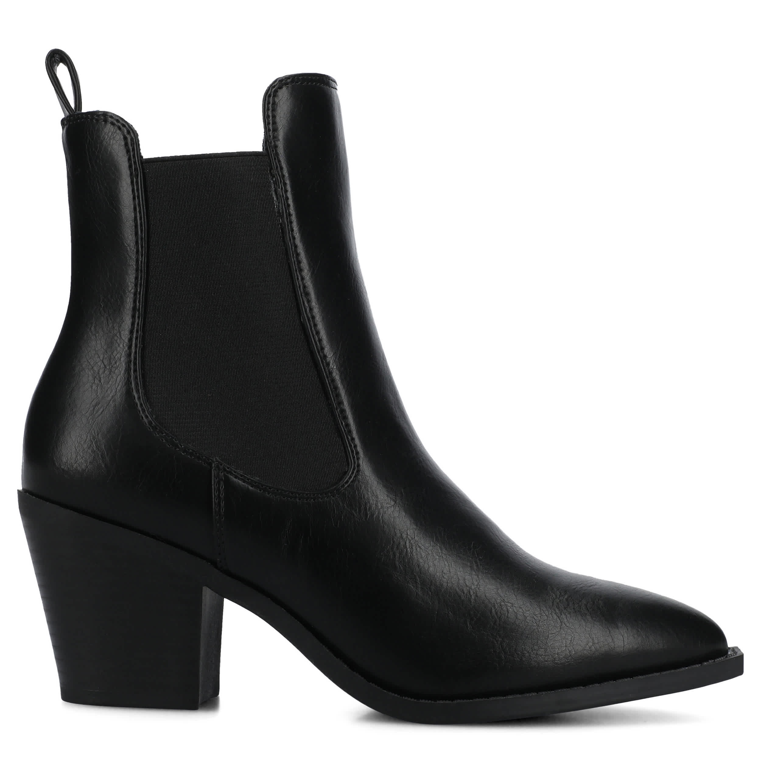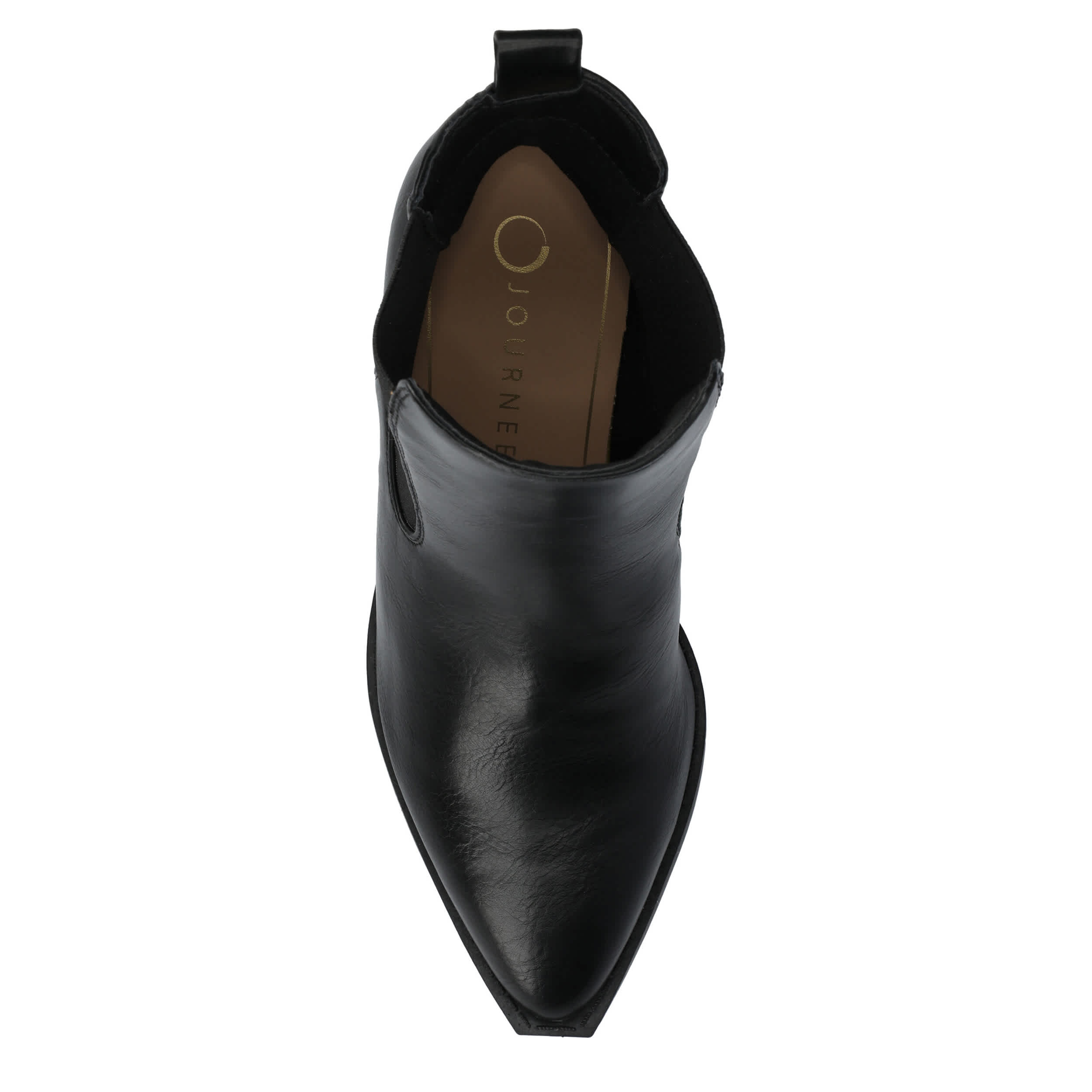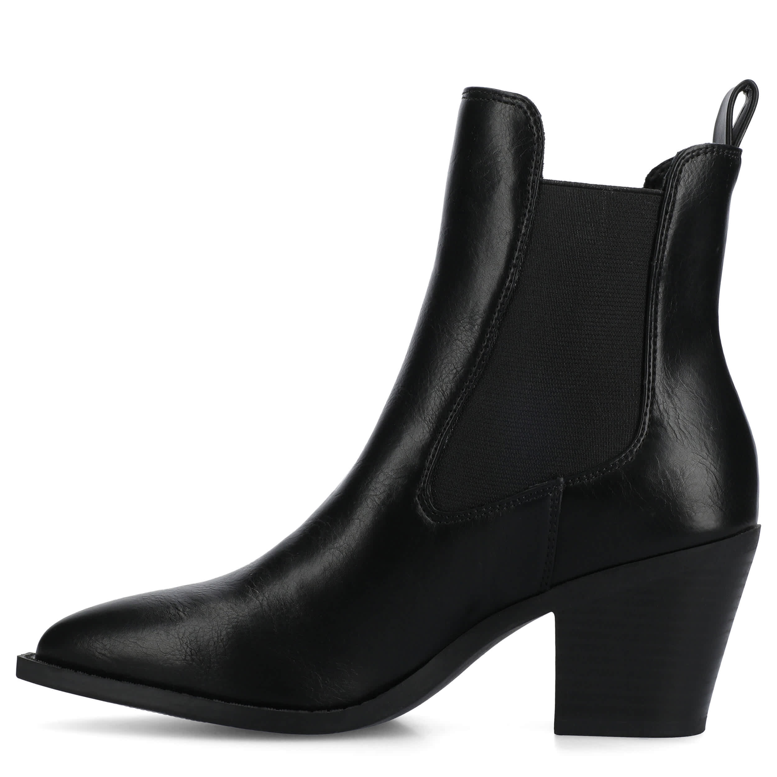 Cool your jets in the Rosemary Western Chelsea boot from Journee Collection. Featuring a faux leather upper with a snip toe, this Chelsea bootie is versatile. The Journee Comfort System comforts your steps, while the Cuban-styled heel gives a nice lift.