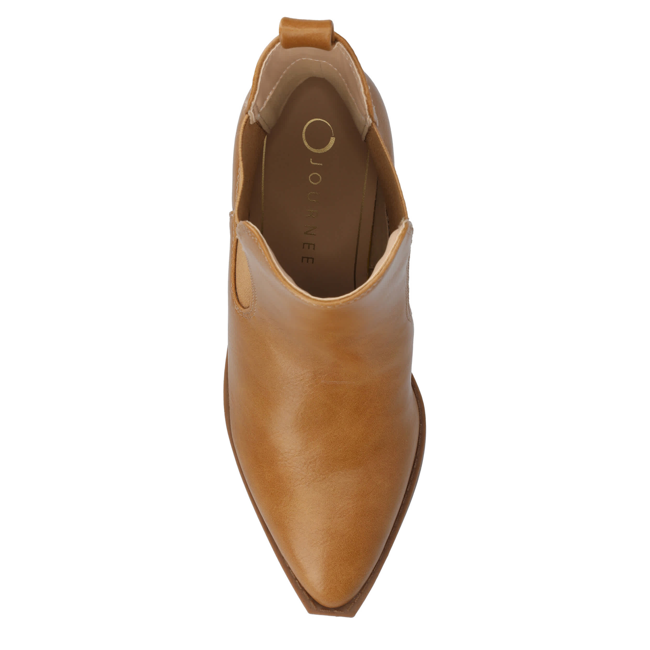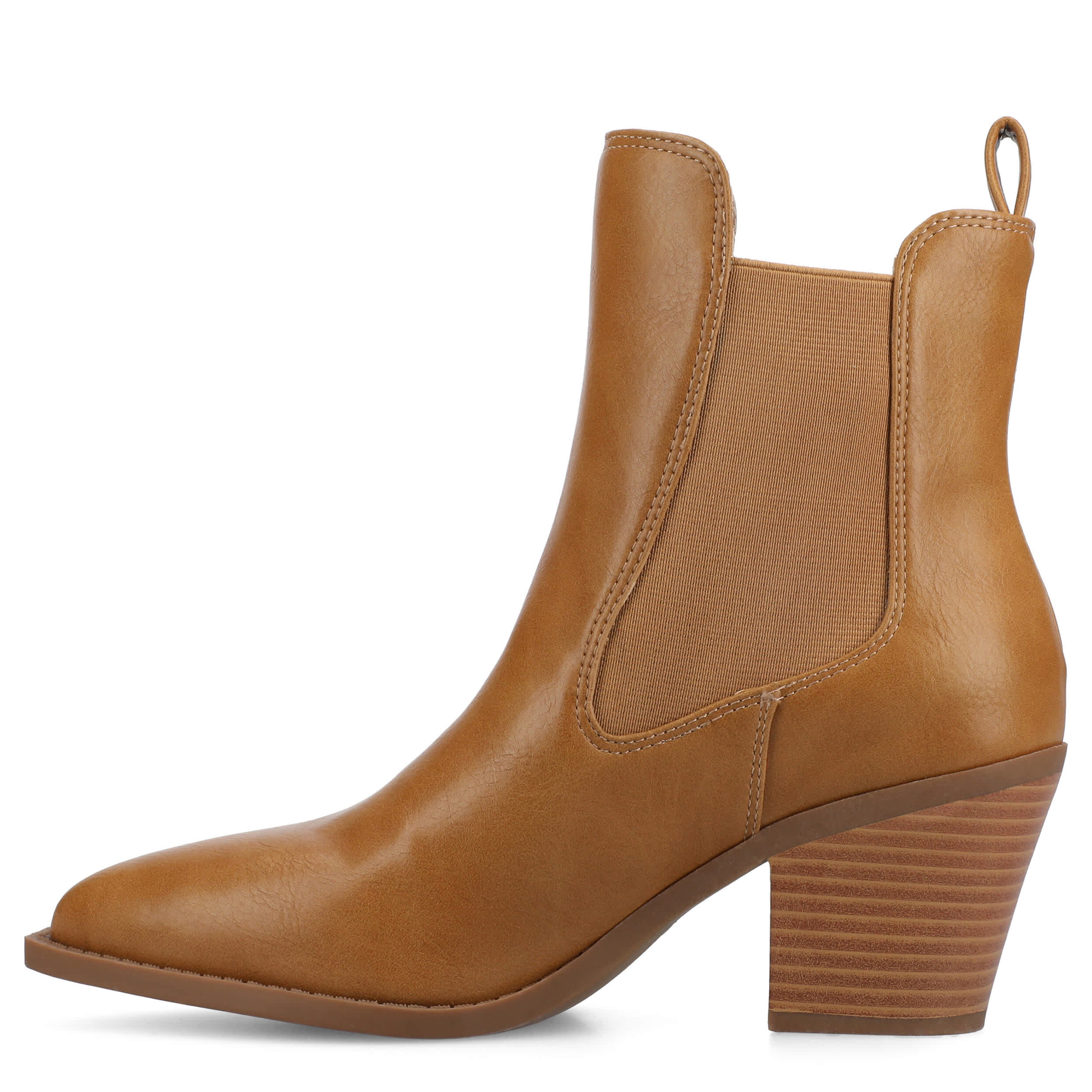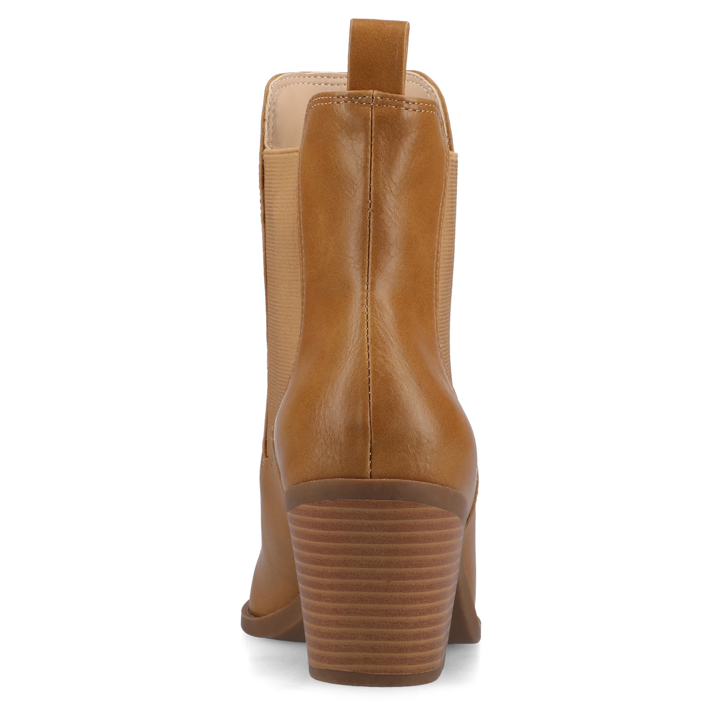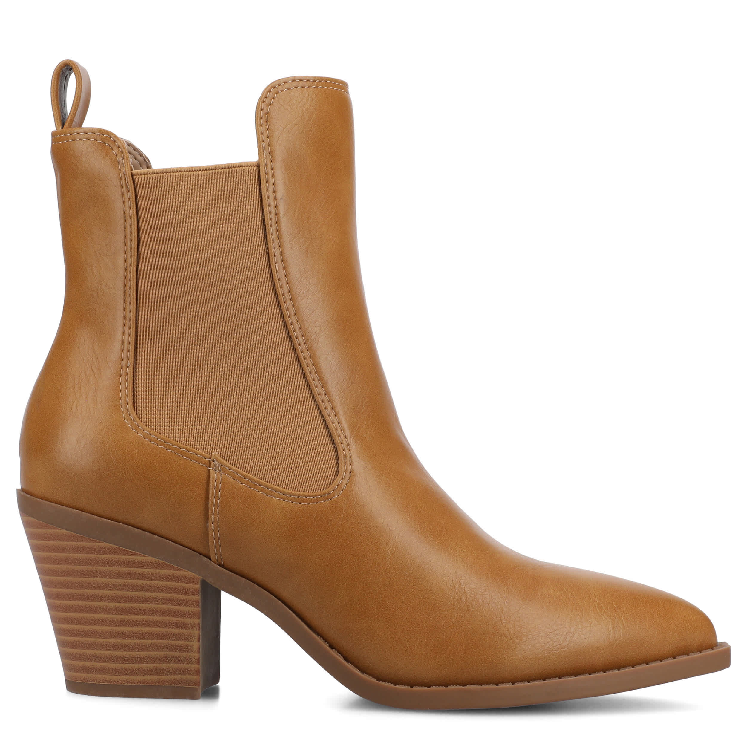 Cool your jets in the Rosemary Western Chelsea boot from Journee Collection. Featuring a faux leather upper with a snip toe, this Chelsea bootie is versatile. The Journee Comfort System comforts your steps, while the Cuban-styled heel gives a nice lift.