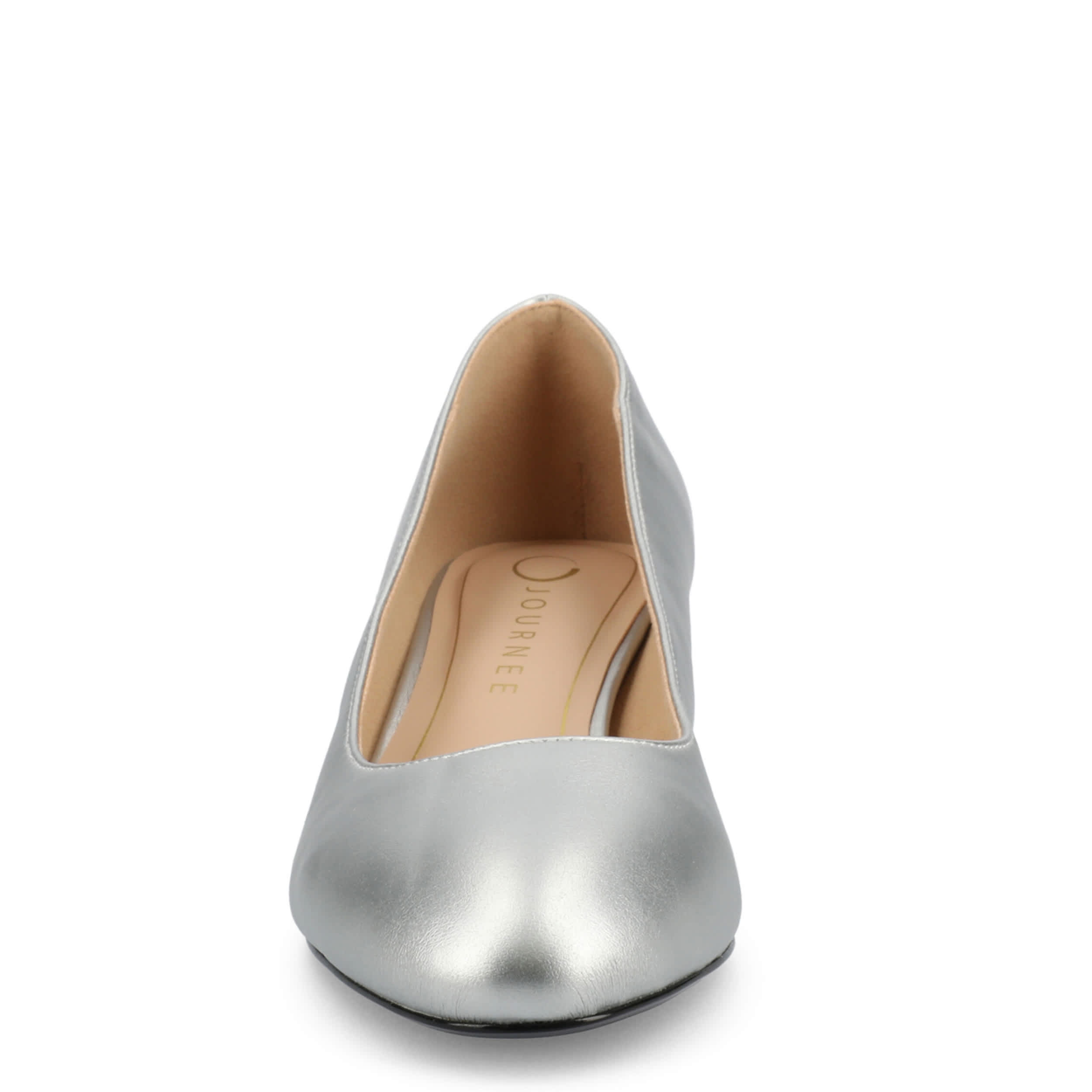 Show off your modern style in the Saar II pump from Journee Collection. Made with a faux leather upper, this round-toe shoe adds a sophisticated finish. The insole soothes your foot, while the low heel offers just enough lift.