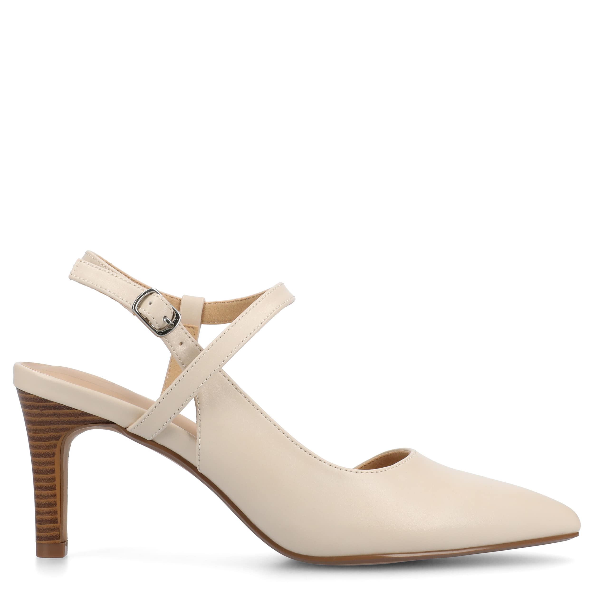 Feel confident from head to toe in the Scipio pump from Journee Collection. Made with faux leather, this crossover shoe has a sleek pointed toe that exudes charm and sophistication. The insole comforts, while the flattering heel offers a luxe lift.