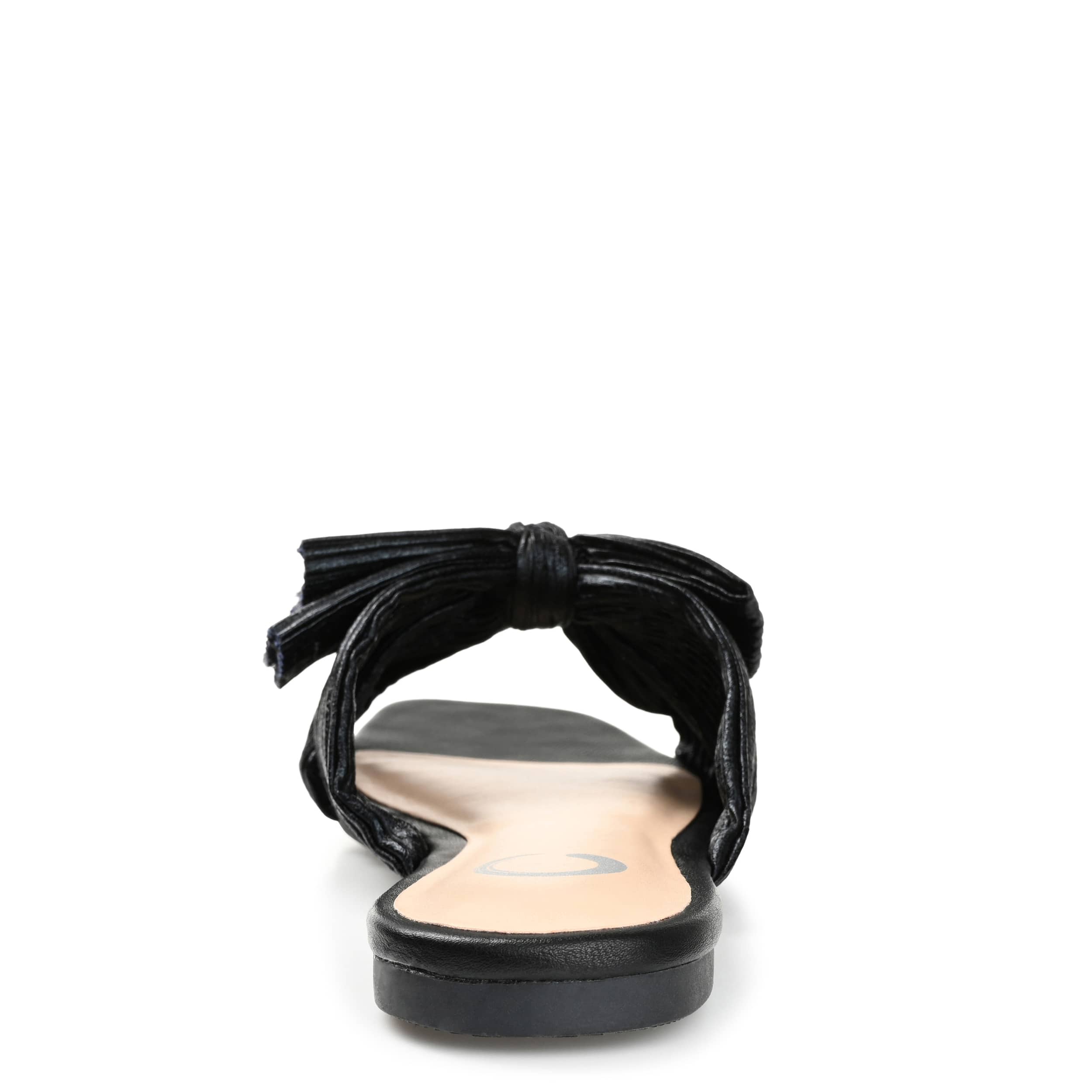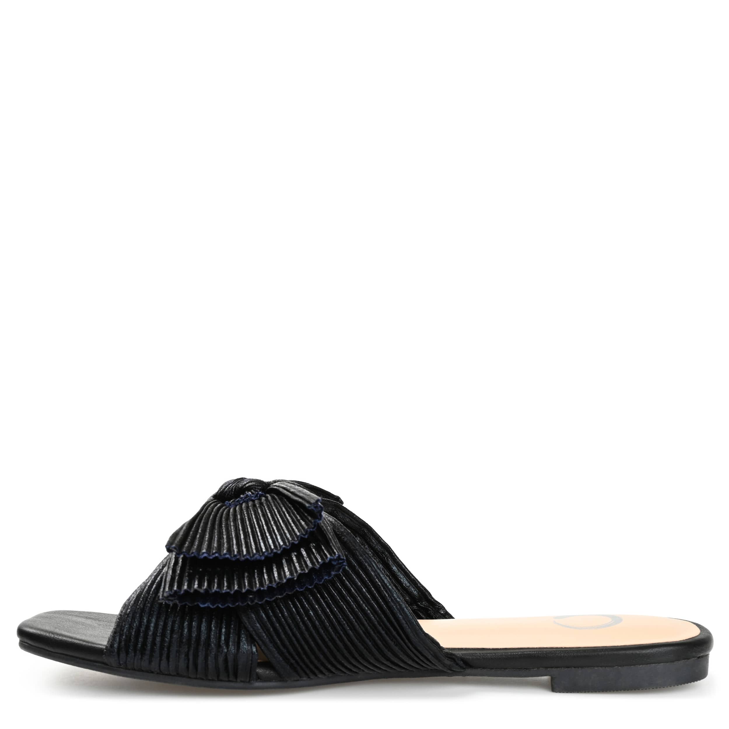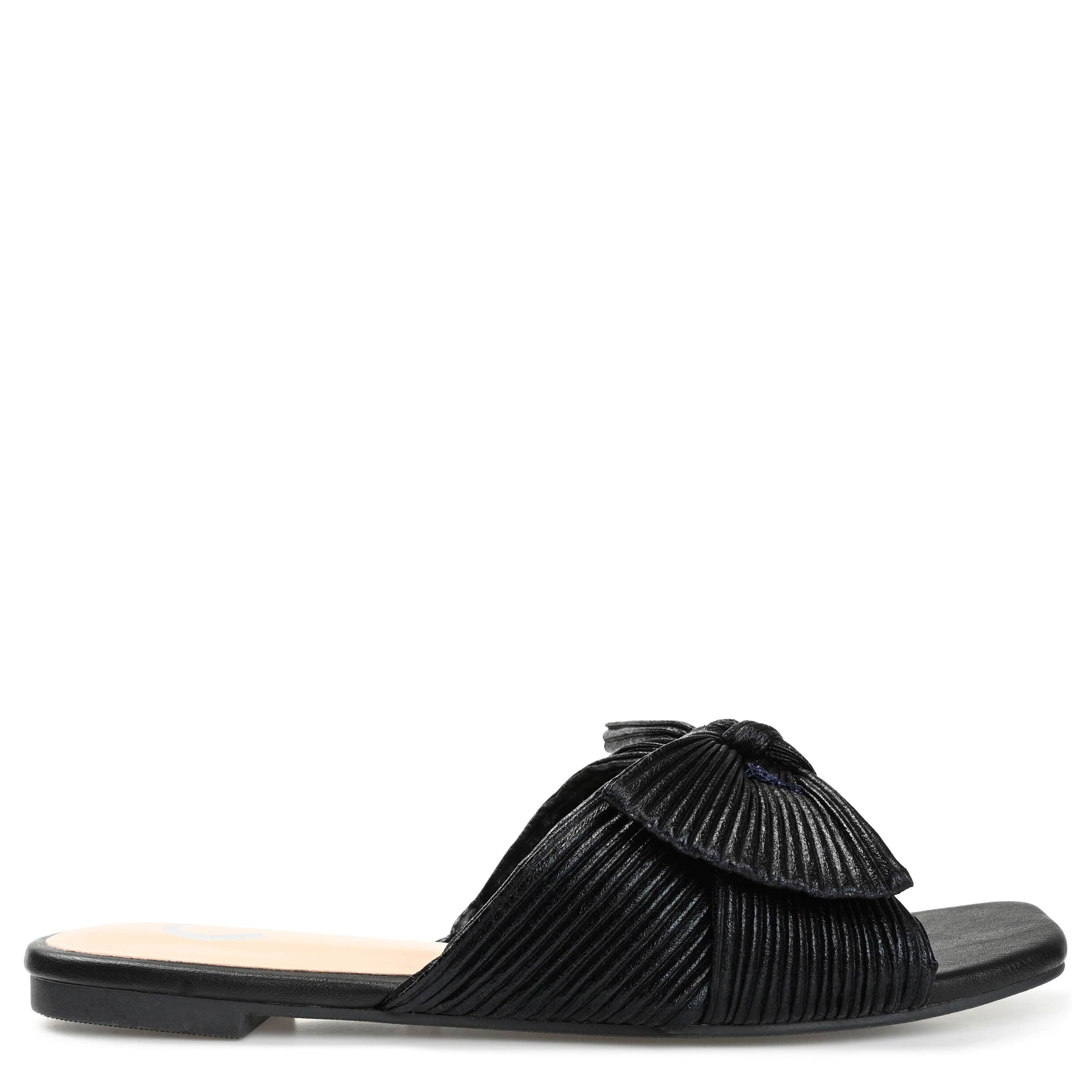 Say hello to comfort and style with the Journee Collection Serlina slide sandal. Featuring a chic faux leather upper with a pleated design, this square-toed sandal highlights any summer outfit with ease. The Tru Comfort Foamâ„¢ insole cushions your steps, while the sturdy outsole gives durability.