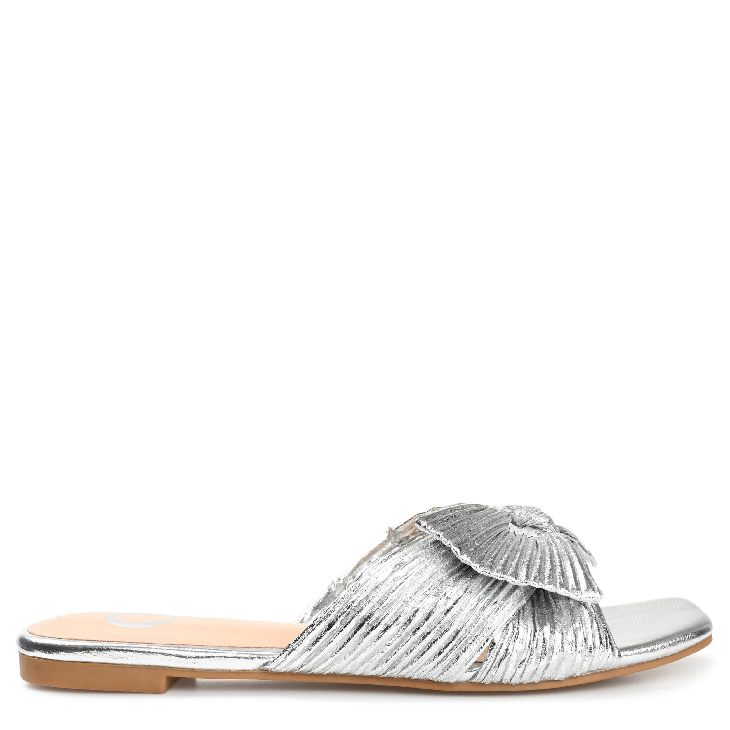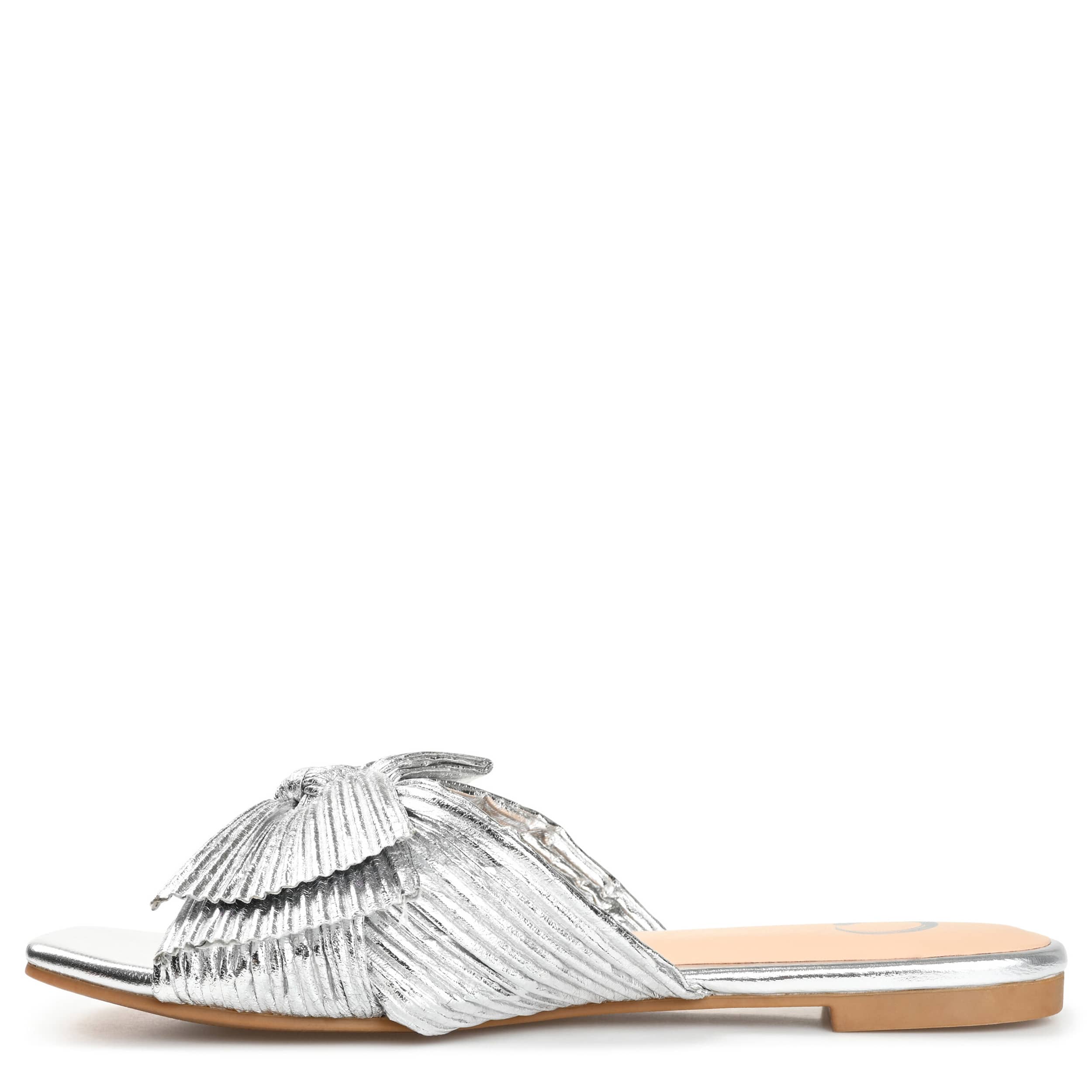 Say hello to comfort and style with the Journee Collection Serlina slide sandal. Featuring a chic metallic upper with a pleated design, this square-toed sandal highlights any summer outfit with ease. The Tru Comfort Foamâ„¢ insole cushions your steps, while the sturdy outsole gives durability.