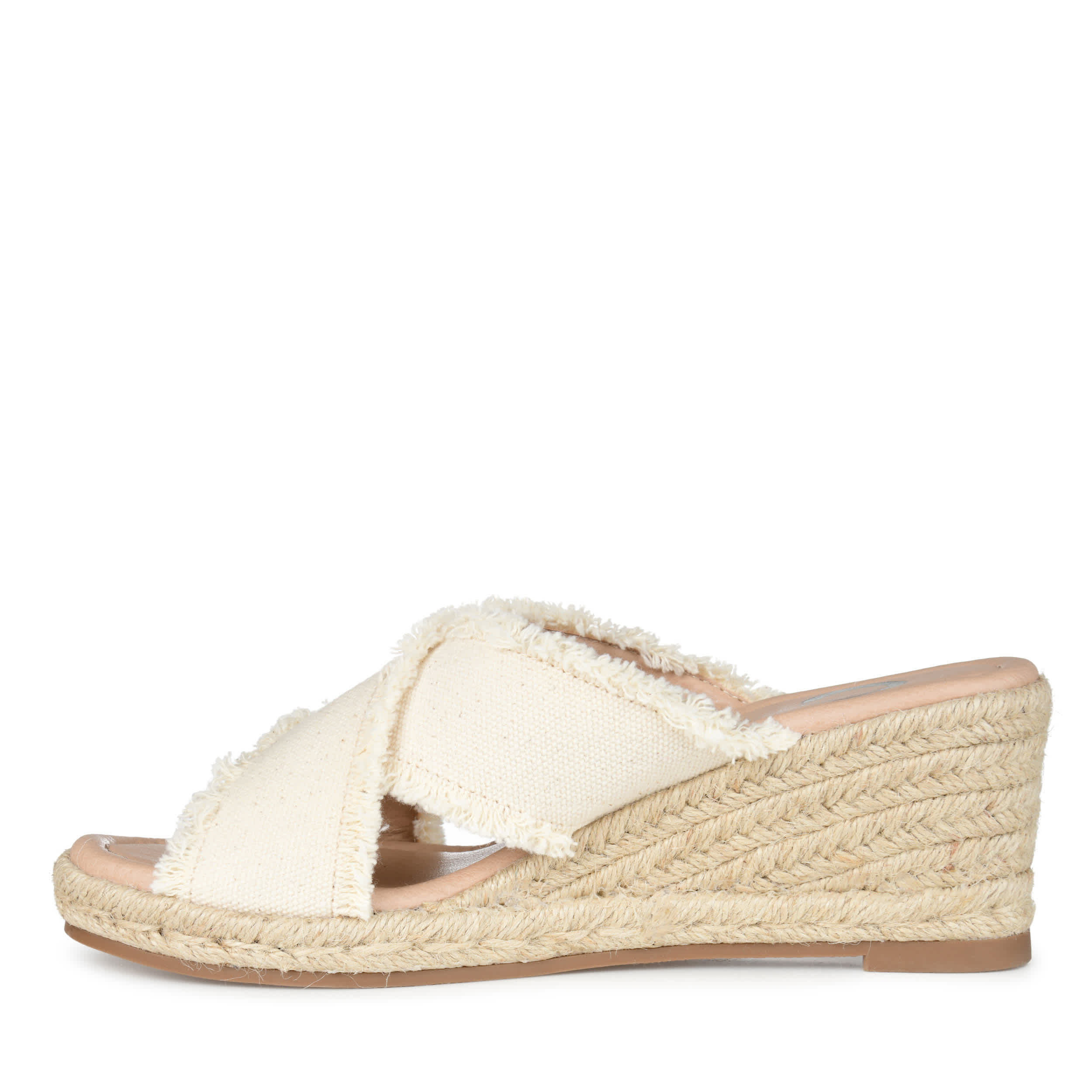 Stroll the sweet days of summer in Journee Collection's Shanni women's wedge sandal. Its carefree espadrille-style wedge and frayed canvas crisscross straps add a relaxed touch to your casual clothes. The slip-on style with padded footbed keep you comfy as you take on the day.