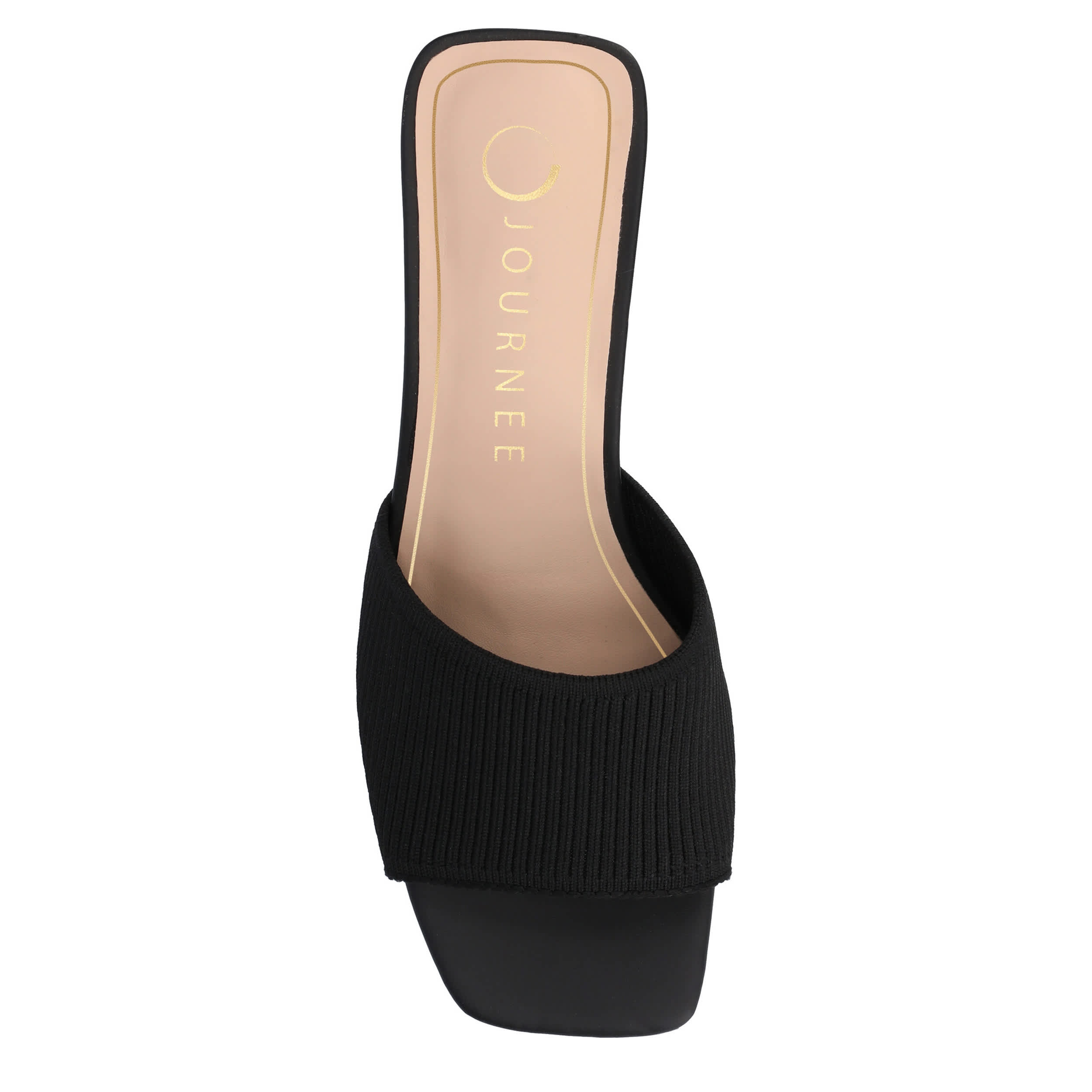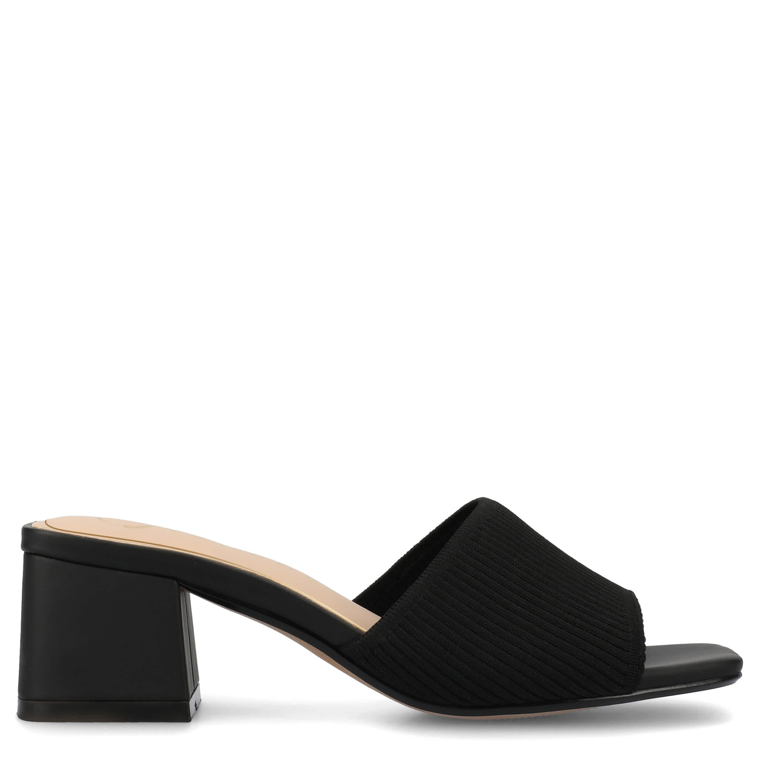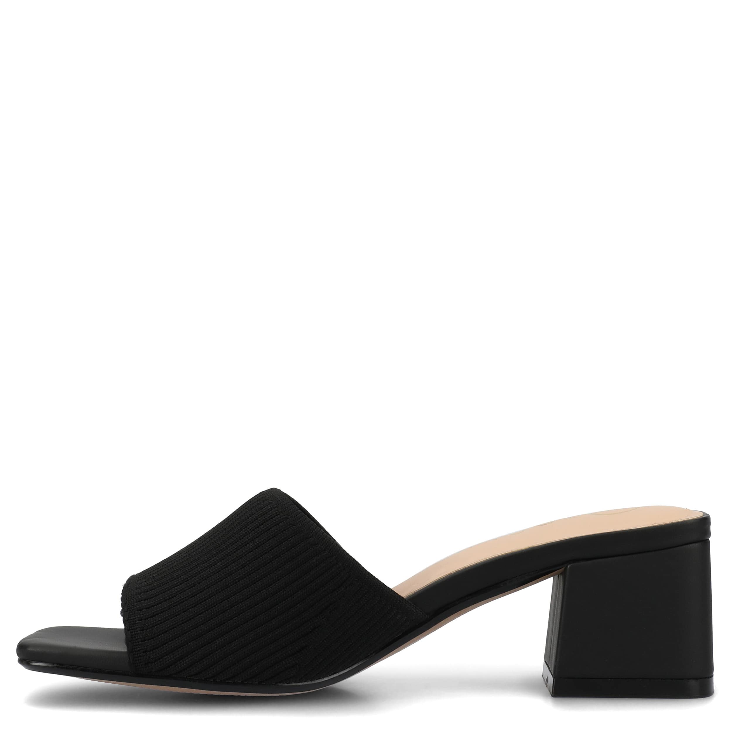 Chic modern style is easy in the Shilin sandal from Journee Collection. Featuring a stretch knit & faux leather upper, this sandale has a trendy silhouette with its simple band design. The footbed comforts, while the covered heel offers stability.